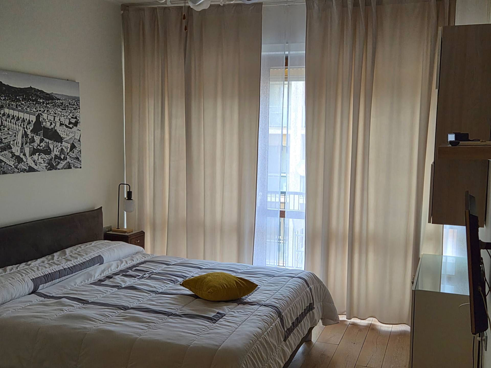 L'appartamento, molto luminoso, dotato di tutti i confort, fra cui TV, climatizzatore, lampadario con ventole a soffitto, pareti insonorizzate ed infissi con vetrocamera.