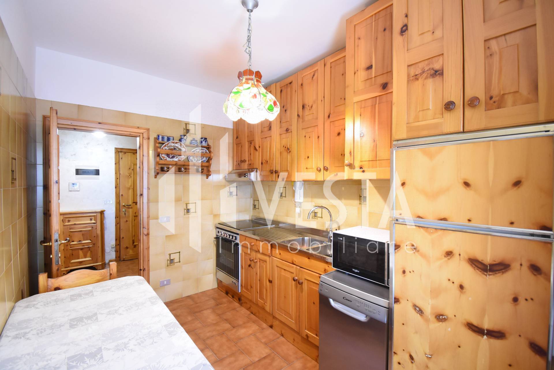 ----> GUARDA IL VIRTUAL TOUR L'appartamento ubicato in posizione strategica nel centro di Bormio, si presenta ben curato e luminoso ed cosi suddiviso; tramite ingresso, accediamo nella zona giorno rifinita in parquet di colore chiaro arredata in classico stile di montagna calda e accogliente con zona pranzo con sfogo su un grande terrazzo comunicante con la cucina abitabile anch'essa arredata nello stesso stile e fornita di lavastoviglie, forno, frigorifero e piano induzione, tramite disimpegno arredato con armadiatura su misura accediamo alla zona notte, dove abbiamo una camera matrimoniale ed una seconda camera con sfogo sul terrazzo con due letti singoli, arredate e rifinite in parquet di colore chiaro ed un bagno completo di doccia e lavatrice.