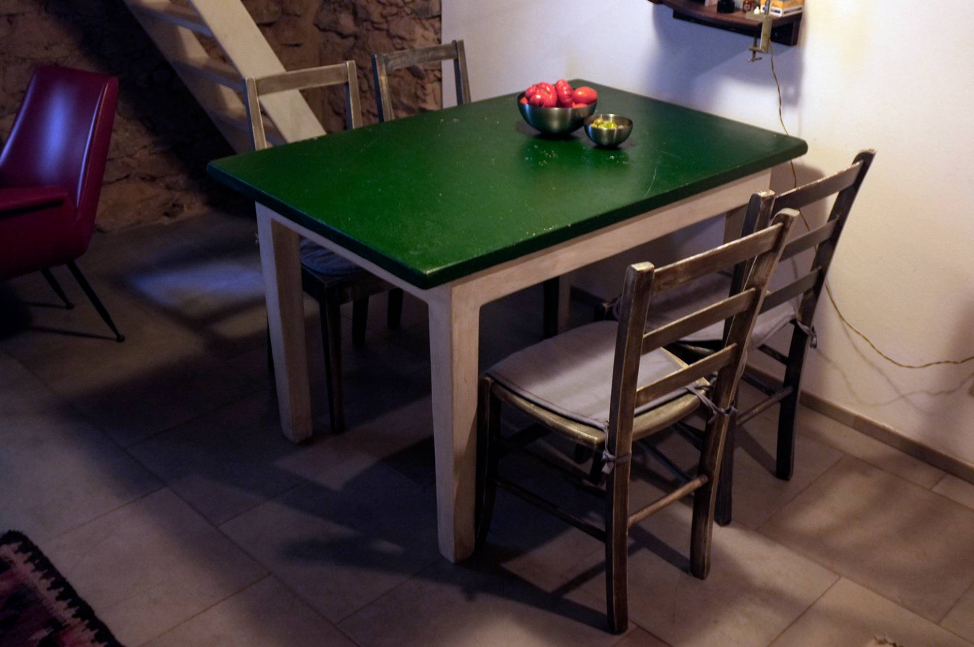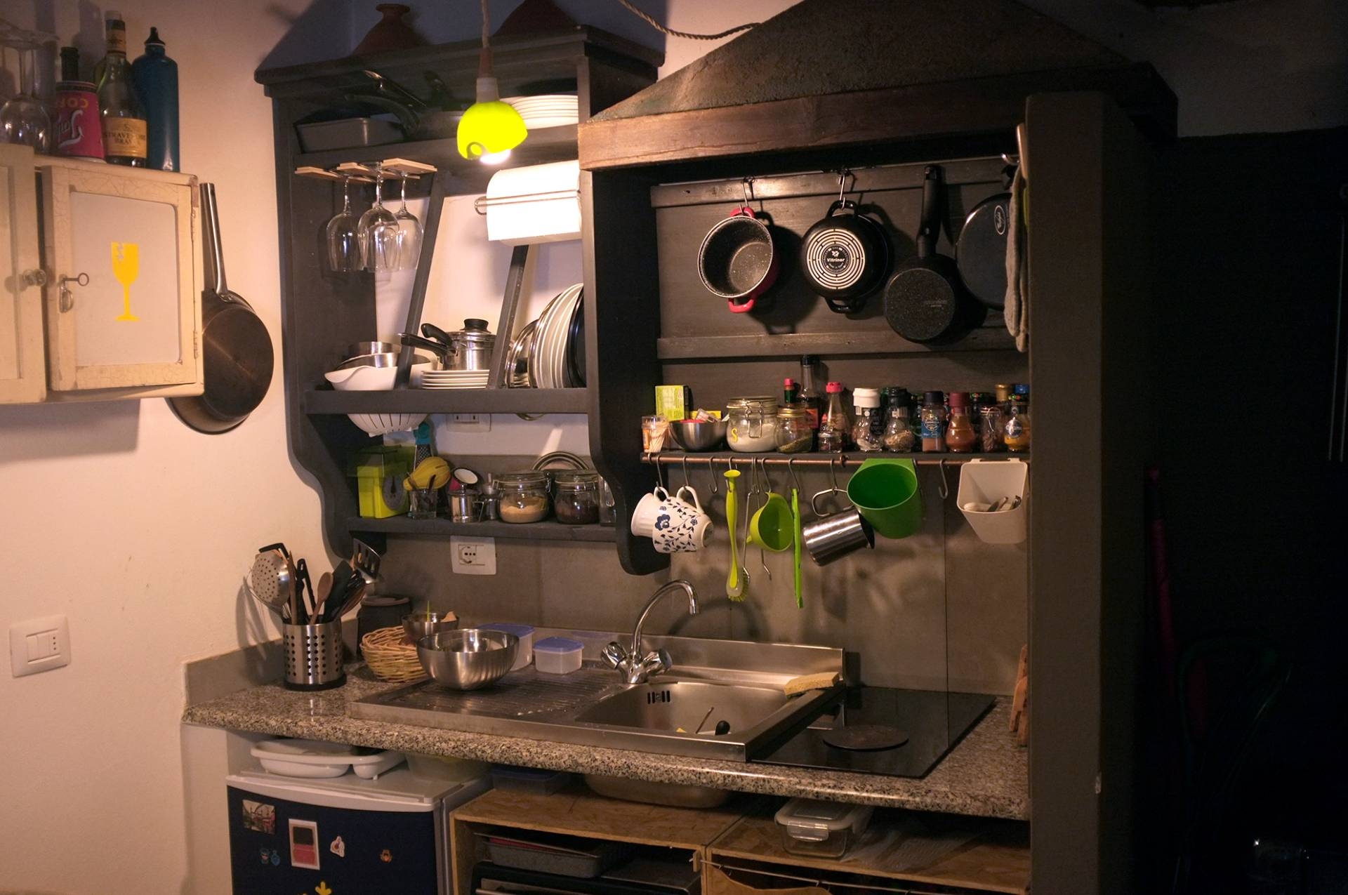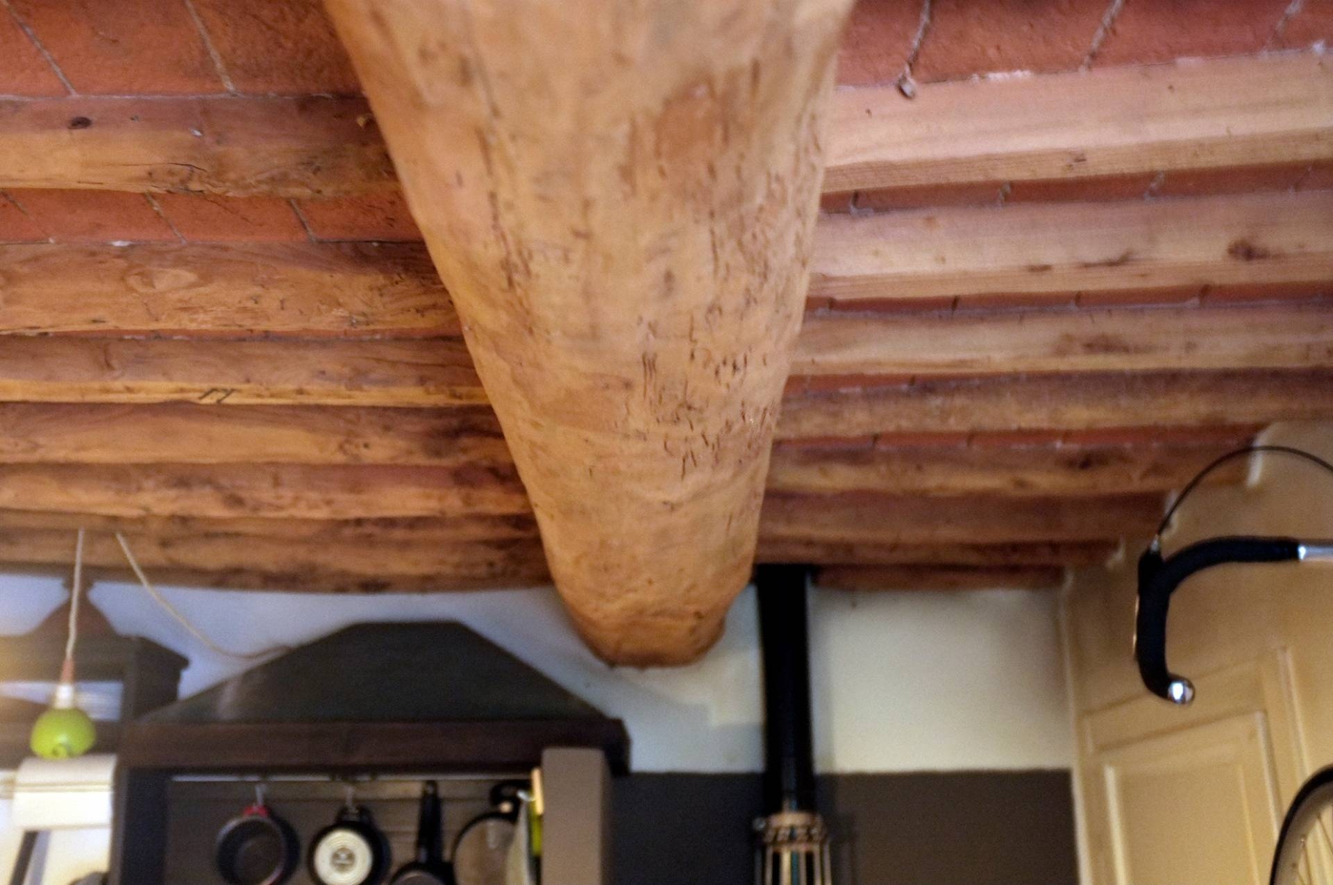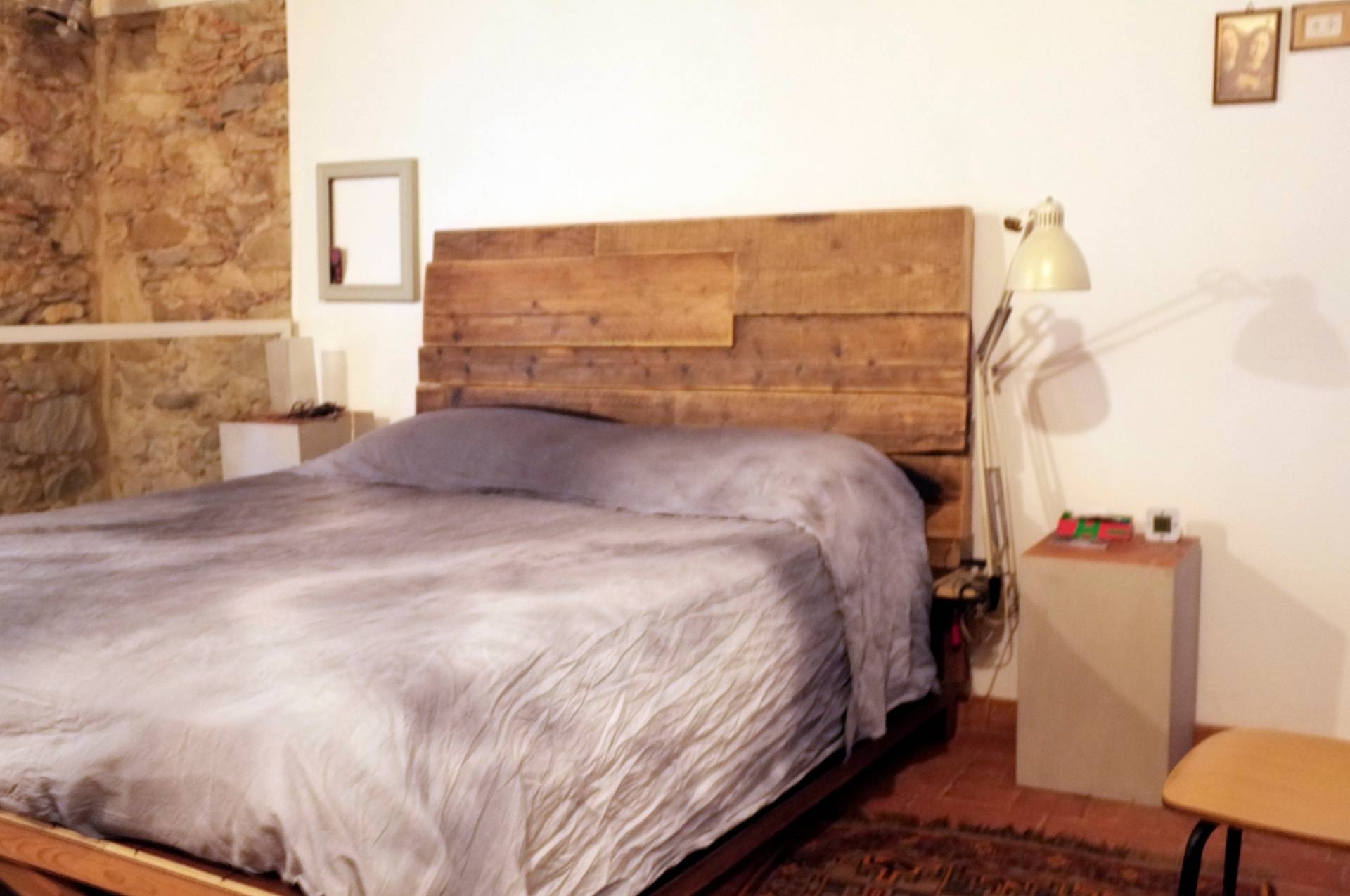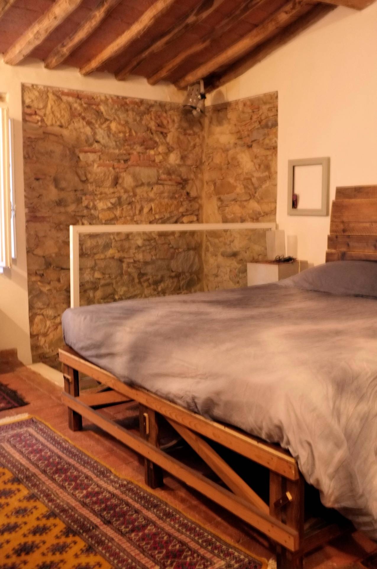 Struttura in stile rustico con muri in pietra e soffitti con le travi, con stufa a legna che scalda l'intero appartamento dove ci si pu cucinare e piastra a induzione, scaldabagno elettrico.