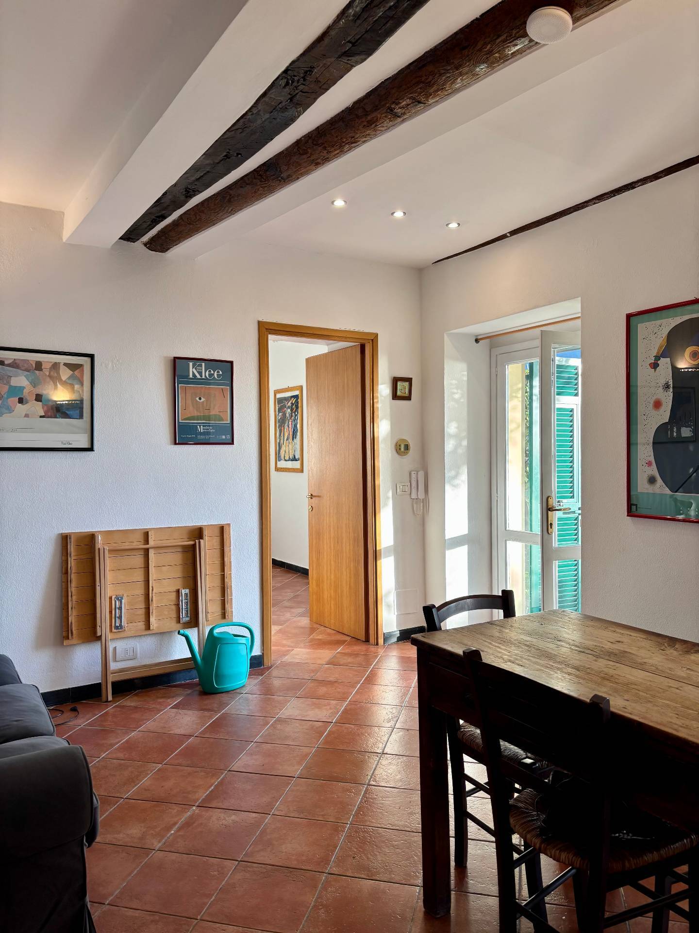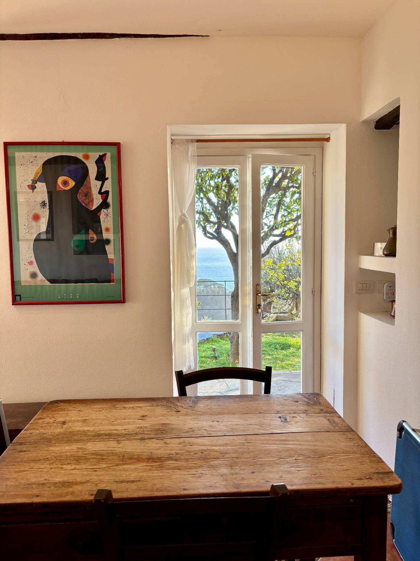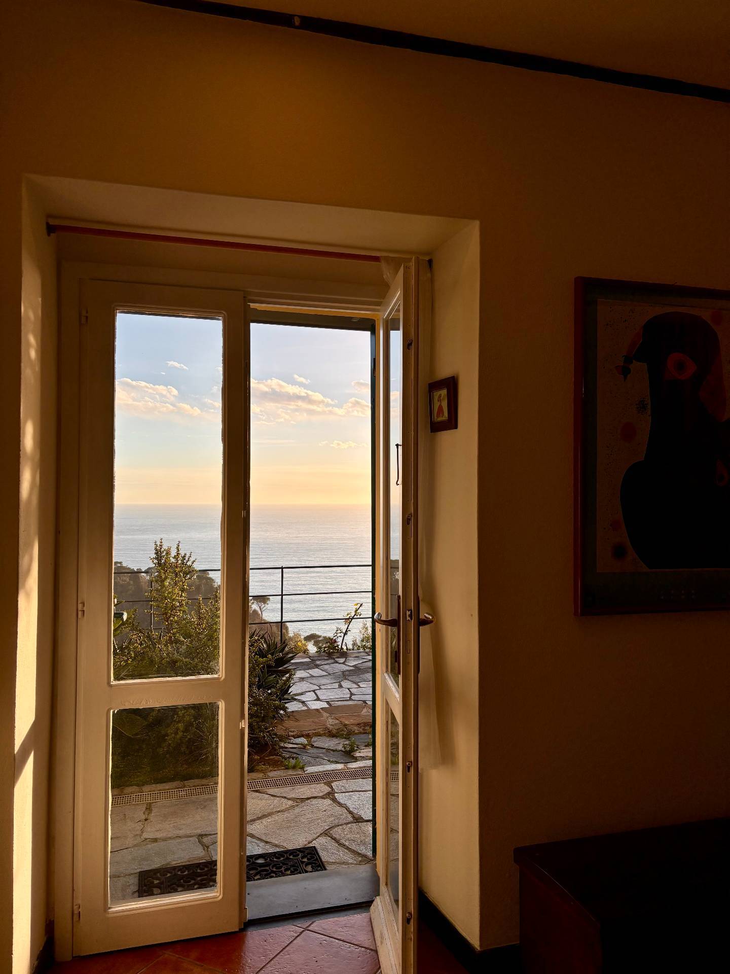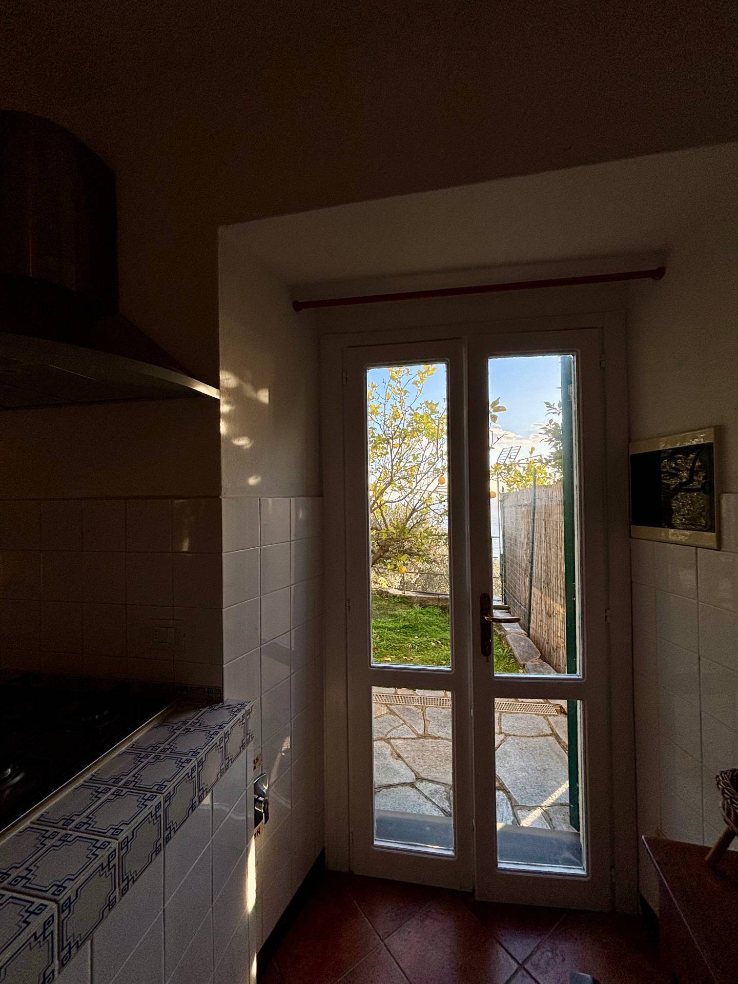 Ingresso nel soggiorno con porta finestra che affaccia nel giardino di pertinenza da dove si gode una vista unica, spaziosa camera con armadi a muro, cucina semi abitabile con rifiniture originali e lavabo in marmo - classico genovese - bagno, ampio e con grossa doccia.