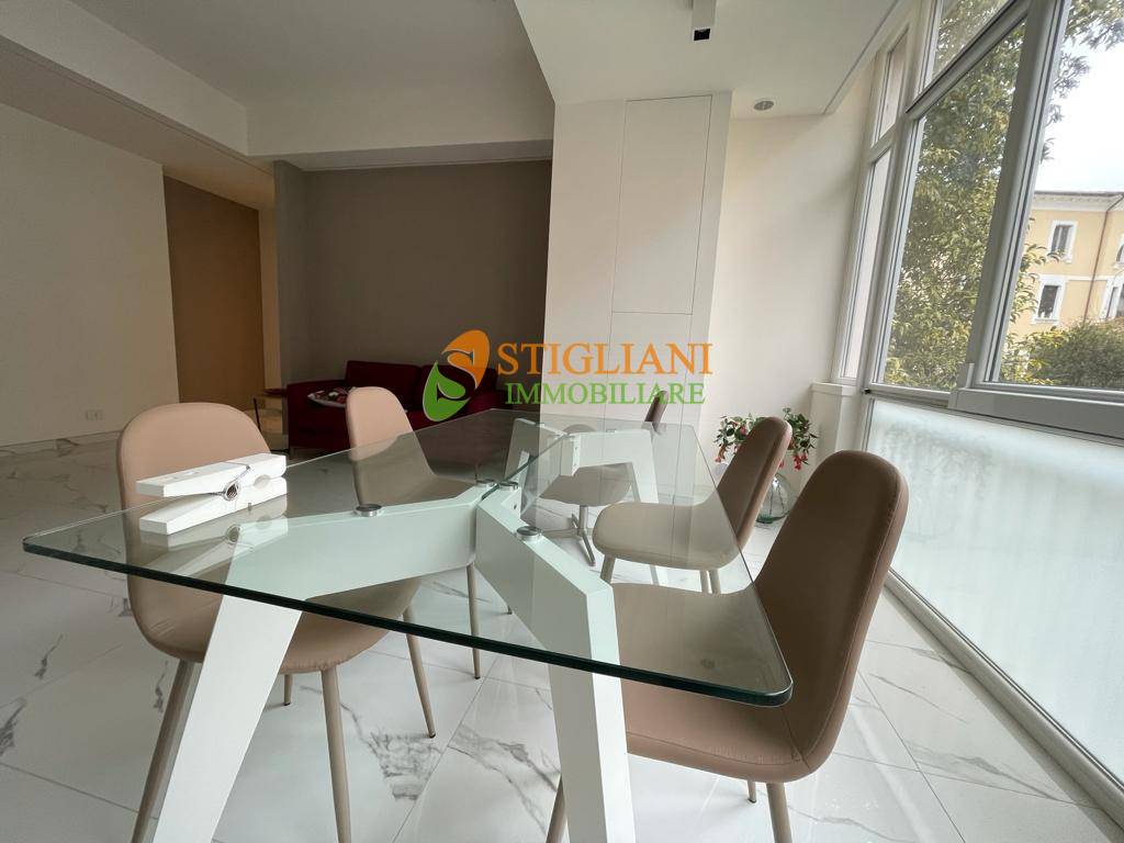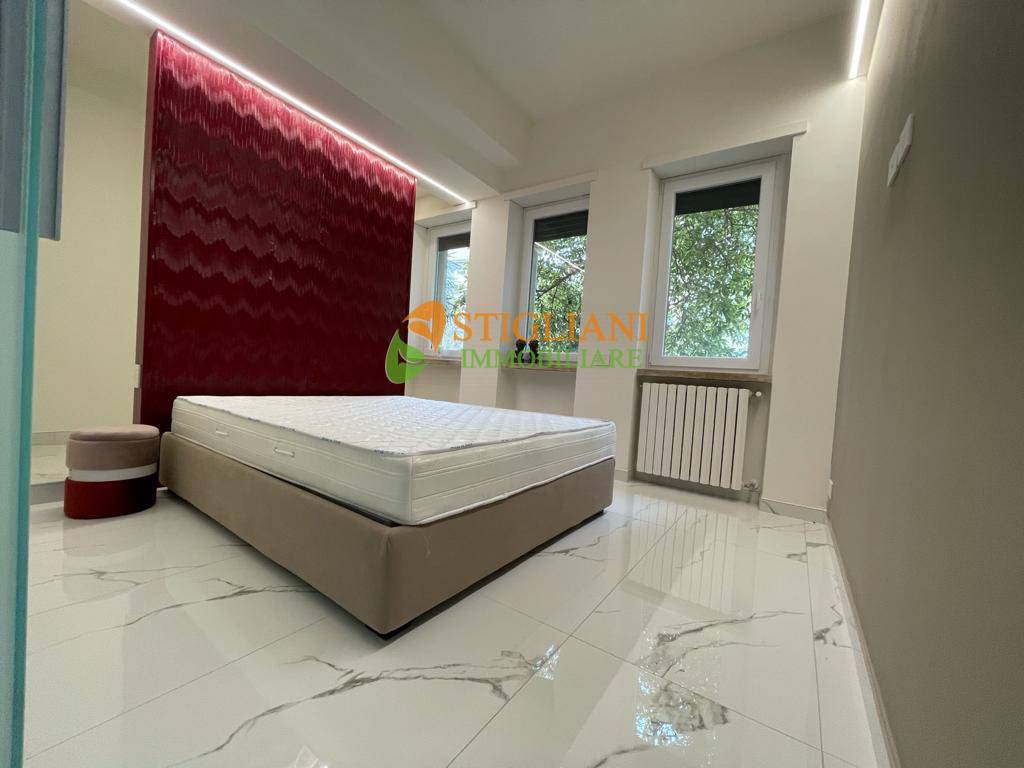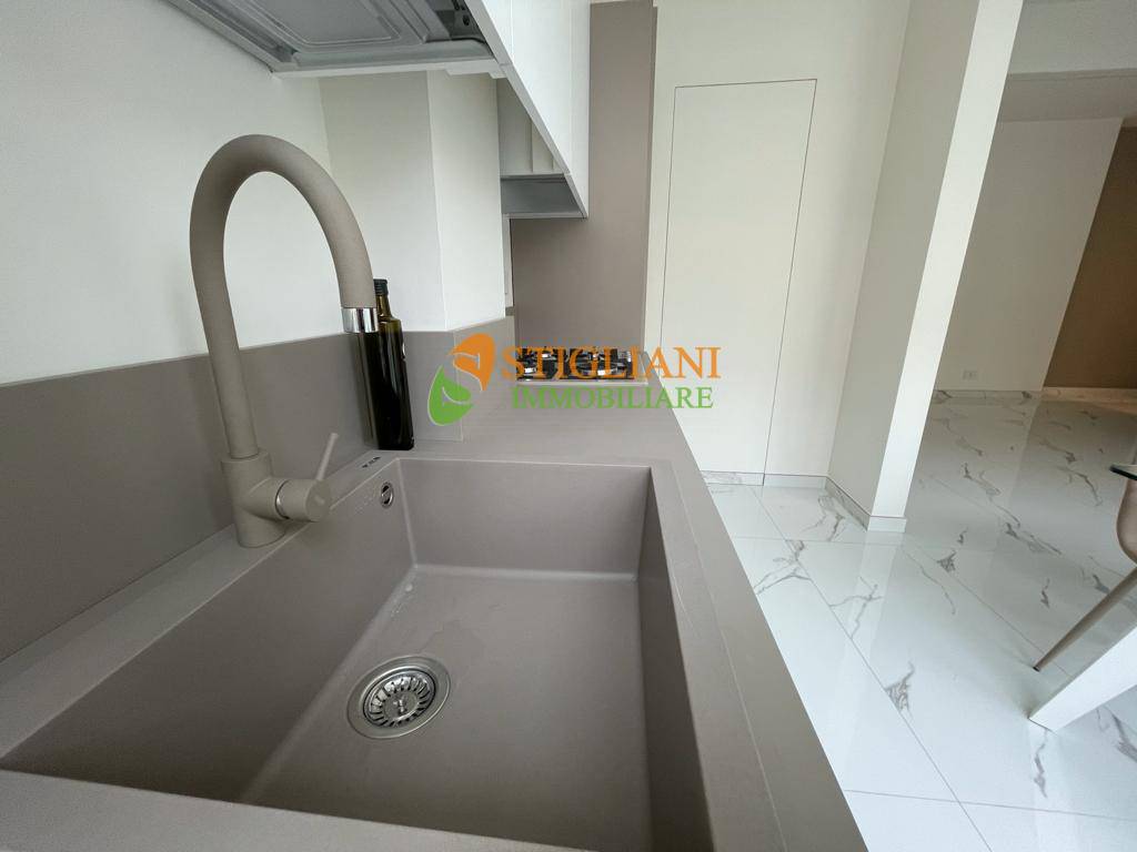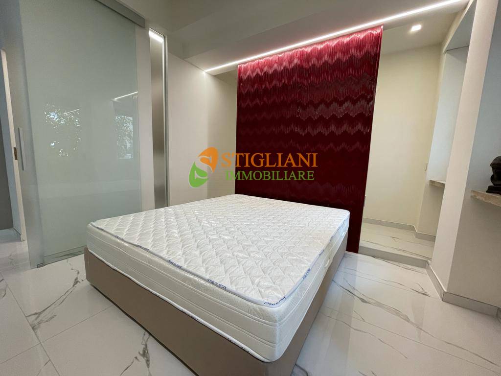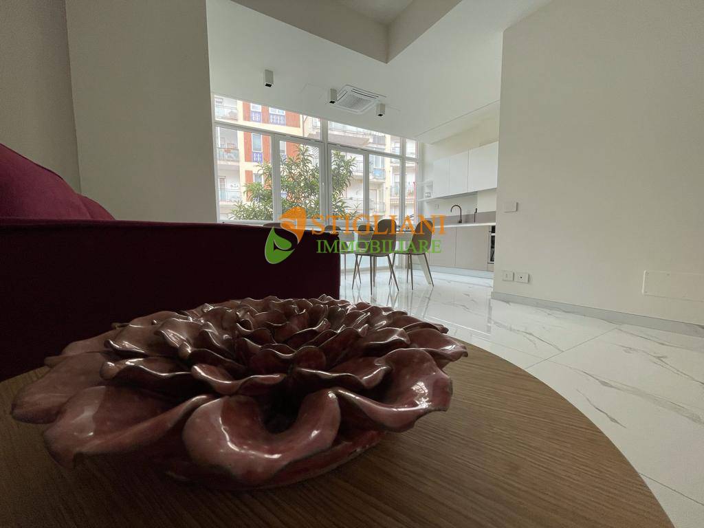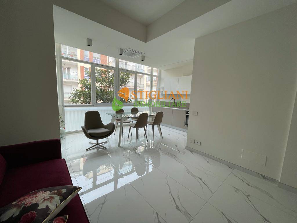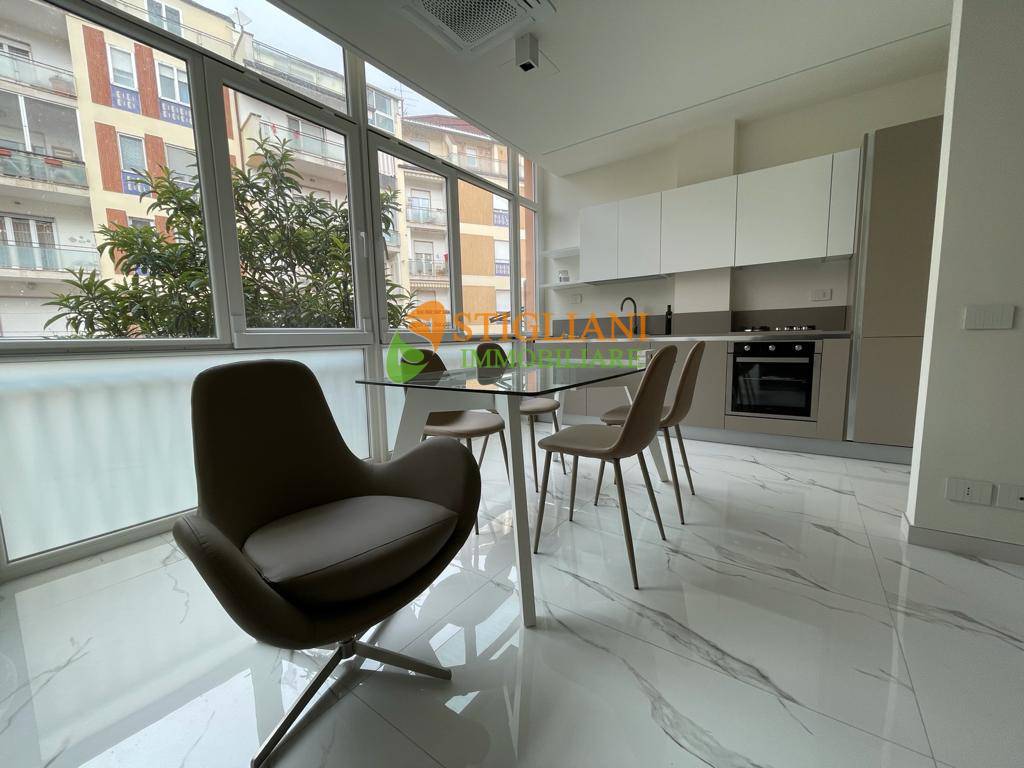 In viale Principe di Piemonte, appartamento completamente ristrutturato e finemente arredato, posto al piano primo e composto da open space con cucina completa con vetrata, camera matrimoniale, bagno con cromoterapia e lavanderia.