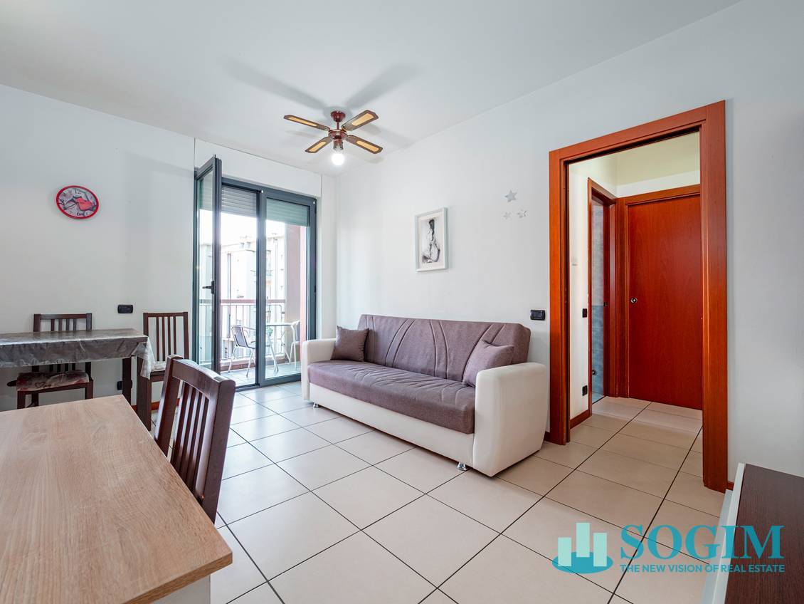 L'appartamento si sviluppa su una superficie di 55 mq ed composto dall'ingresso che si apre sull' ampio soggiorno con affaccio ad un gradevole balcone e sulla luminosa cucina a vista completamente attrezzata.
