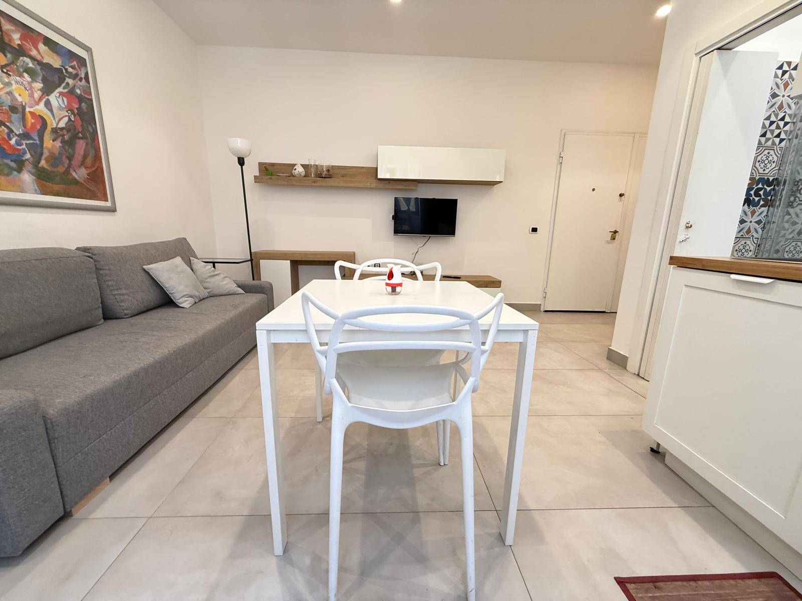 Limmobile completamente arredato con gusto moderno ed composto da un luminoso salone con angolo cottura, una comoda camera da letto matrimoniale e un bagno con doccia.