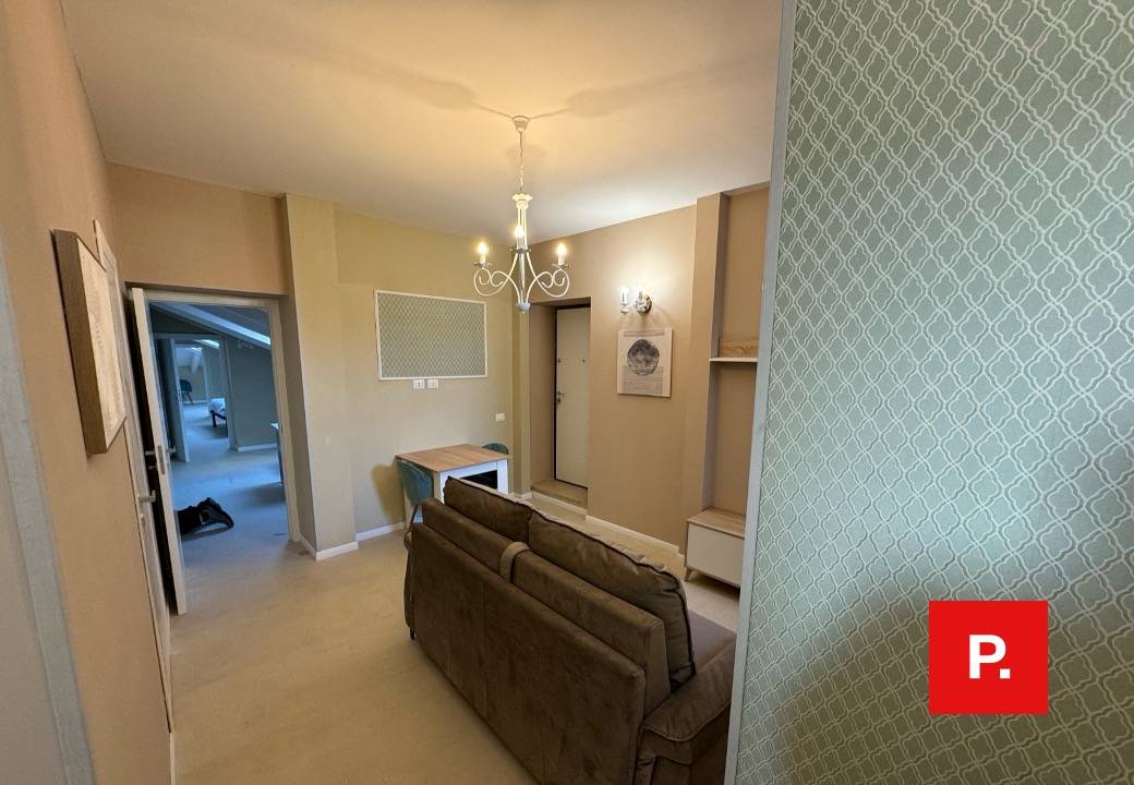 L'appartamento si estende su una superficie totale di 80 metri quadrati, che comprende un ampio soggiorno, una cucina abitabile, una spaziosa camera da letto, uno studio e un bagno completo di tutti i servizi.