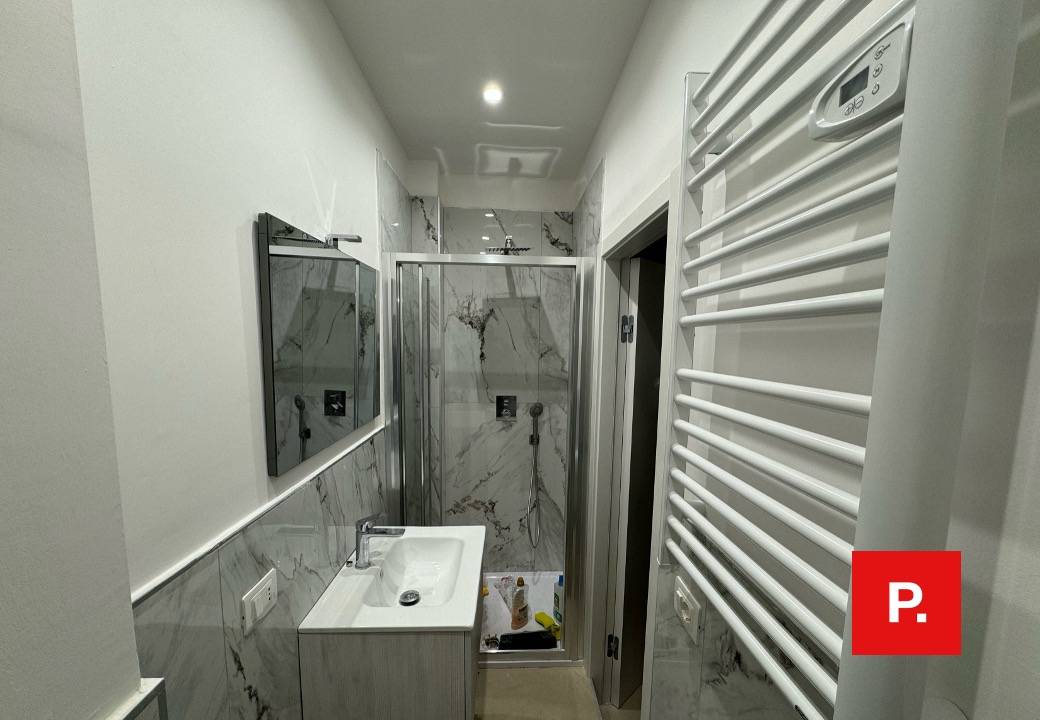 Il bagno dotato di una moderna doccia e di tutti i servizi necessari.