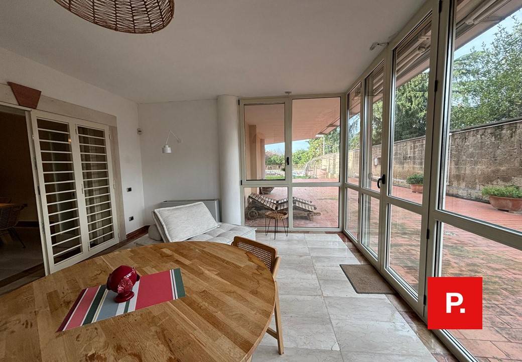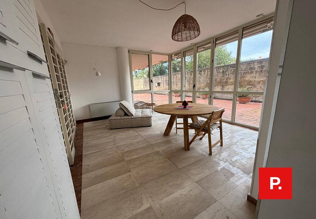 L'appartamento ha un giardino di 100 mq e un terrazzo che lo circonda e dotato di una zona verandata fornita di cucina.