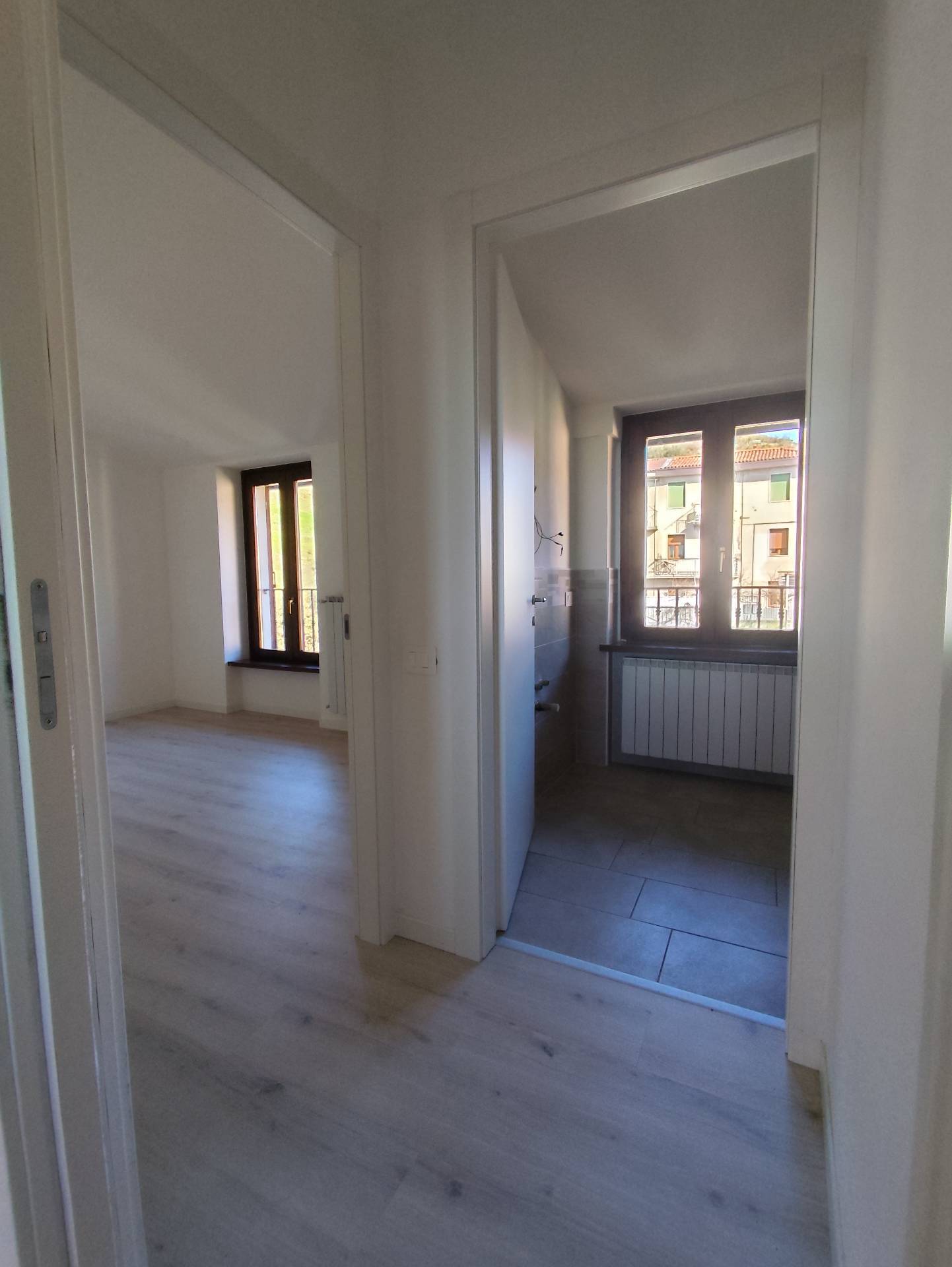 Un disimpegno funzionale conduce alla spaziosa camera matrimoniale ed al Bagno dotato di un ampio e confortevole box doccia.