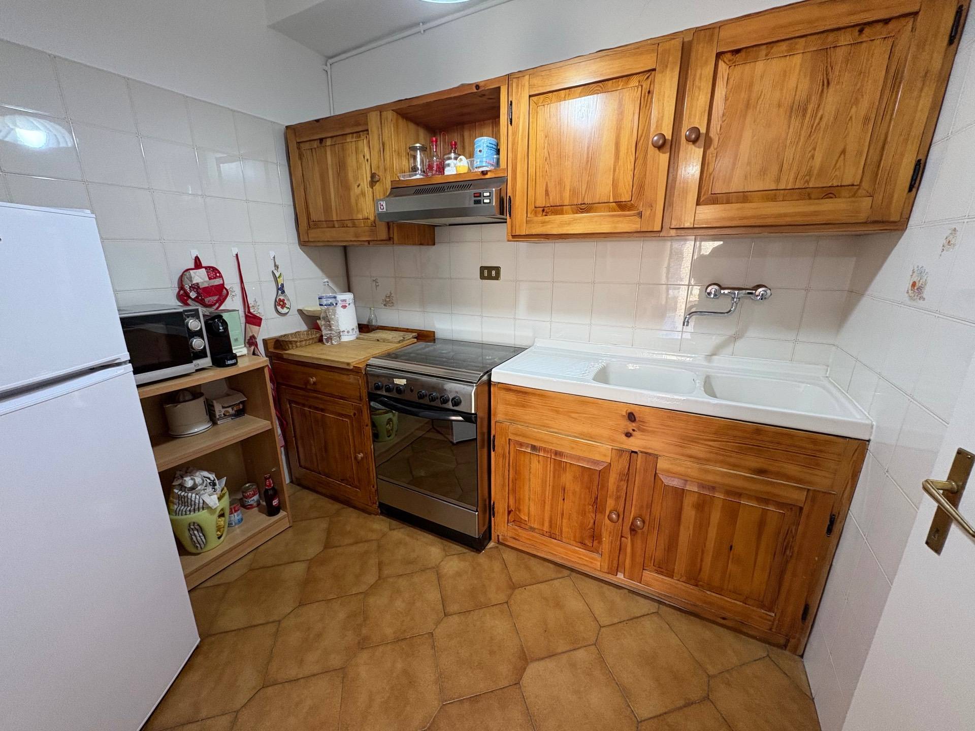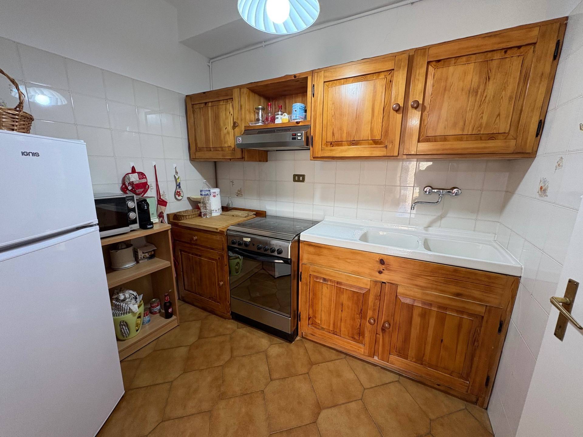 Lingresso conduce a un ampio soggiorno, con cucina a vista e divano letto, un pratico ripostiglio con lavatrice aggiunge funzionalit agli ambienti.
