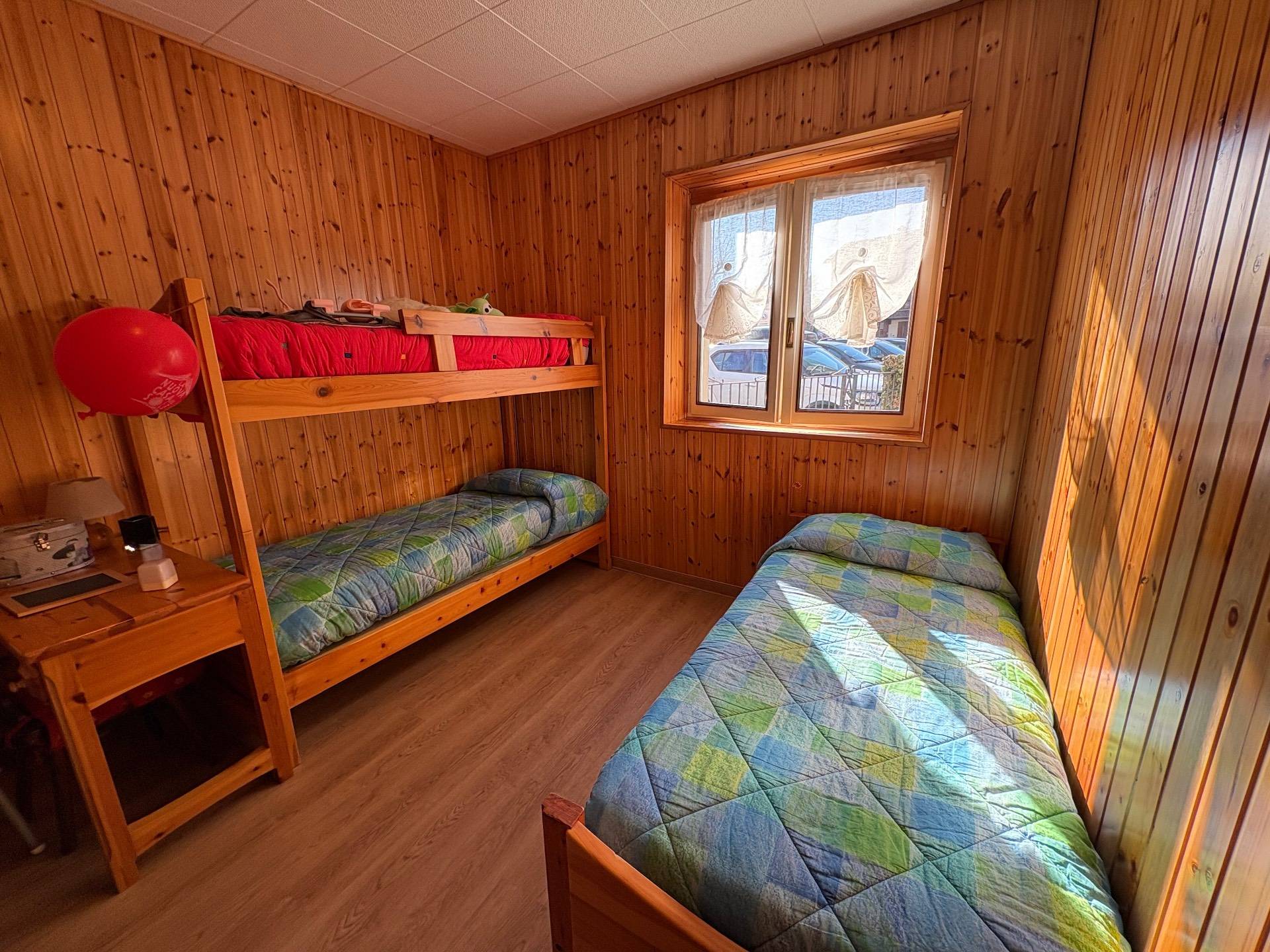 La zona notte composta da una camera matrimoniale, una cameretta con tre posti letto (letto a castello e letto singolo) e da un bagno finestrato con doccia.