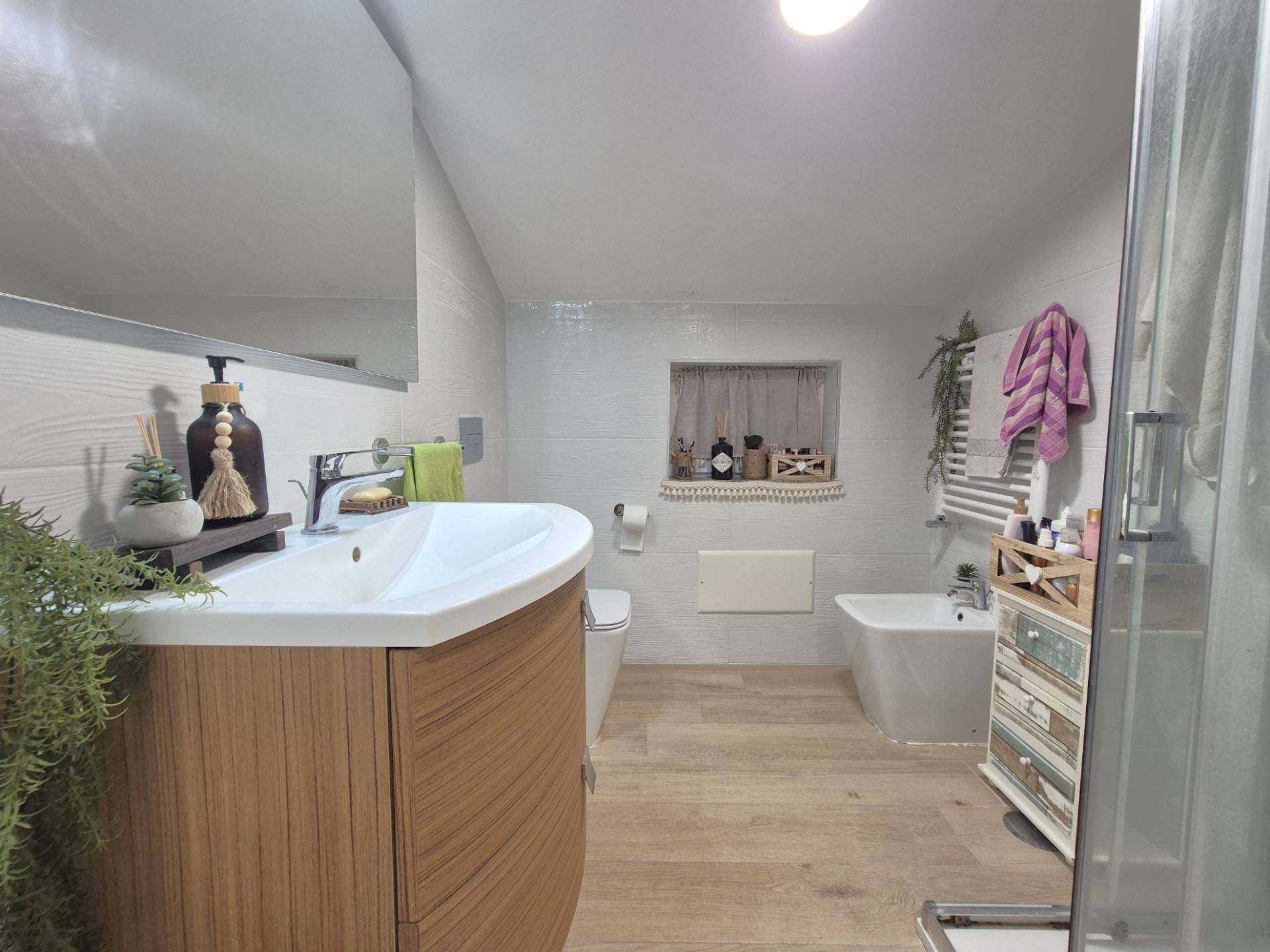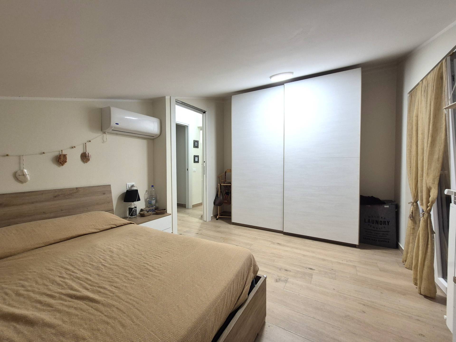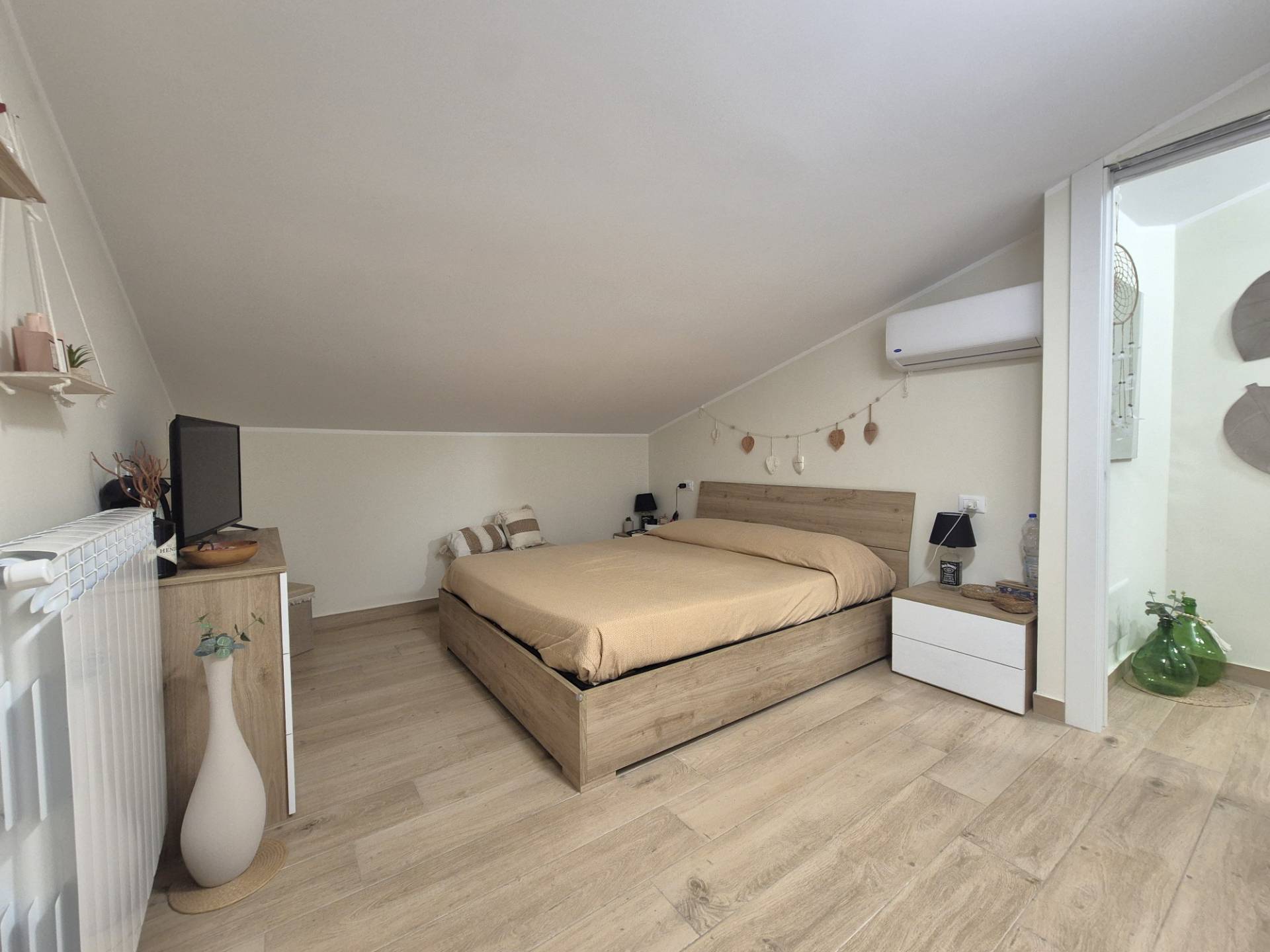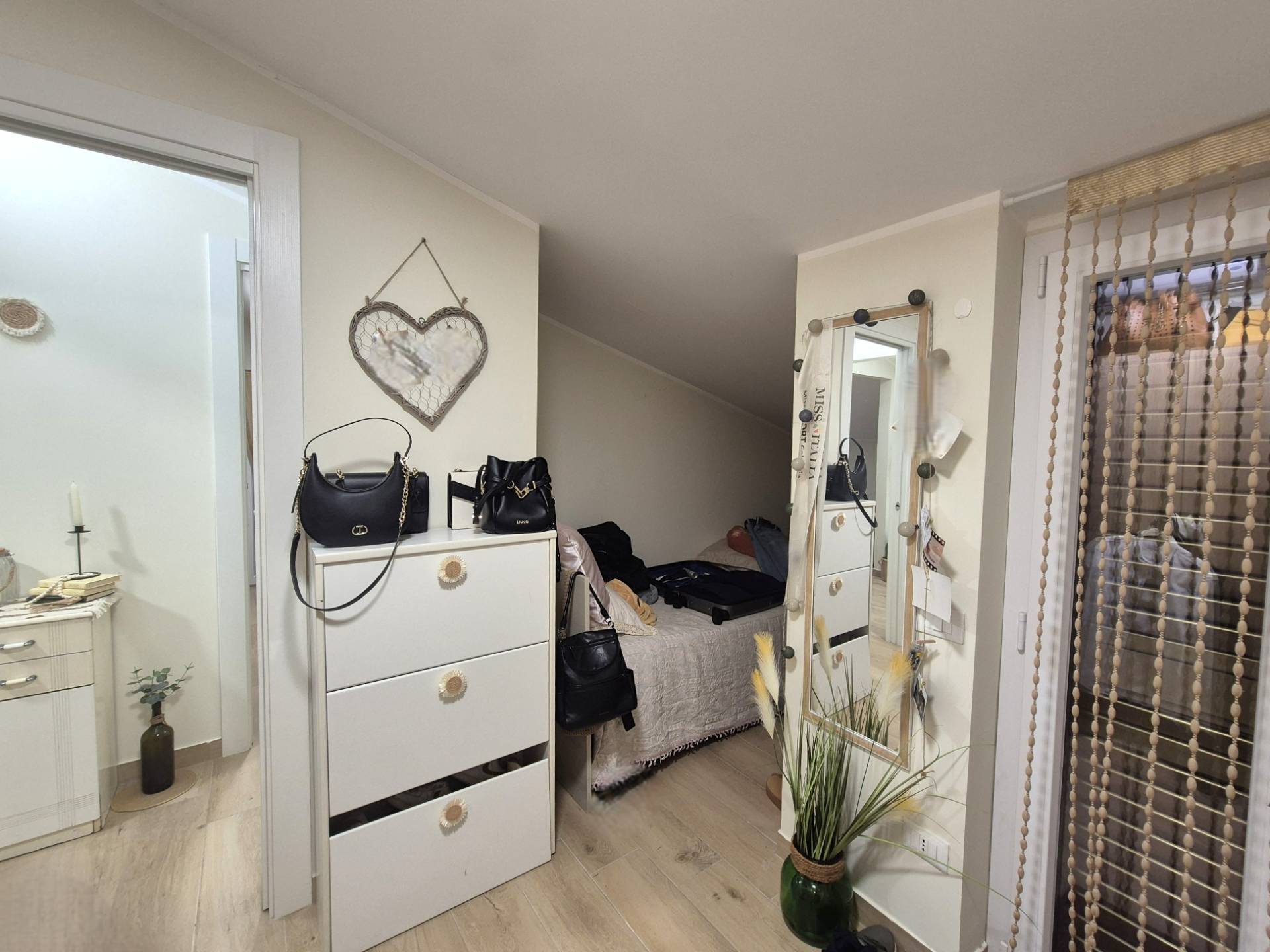 A Catanzaro Lido su viale Crotone, nelle immediate vicinanze della Chiesa Sacro Cuore, attico mansardato e arredato a nuovo posto al secondo e ultimo piano in piccola palazzina privata, composto da : ingresso su soggiorno living con angolo cottura, due camere da letto, bagno con box doccia, due terrazzi e posto auto in corte condominiale.
