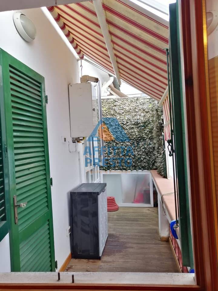 Arredato con lavatrice situata in bagno, box doccia, cucina attrezzata con frigorifero e forno, TV, divano letto due posti, letto matrimoniale(con apertura per riporre oggetti sotto il letto) mobile, comodini e com. Balcone attrezzato con tenda parasole e rete anti piccione.