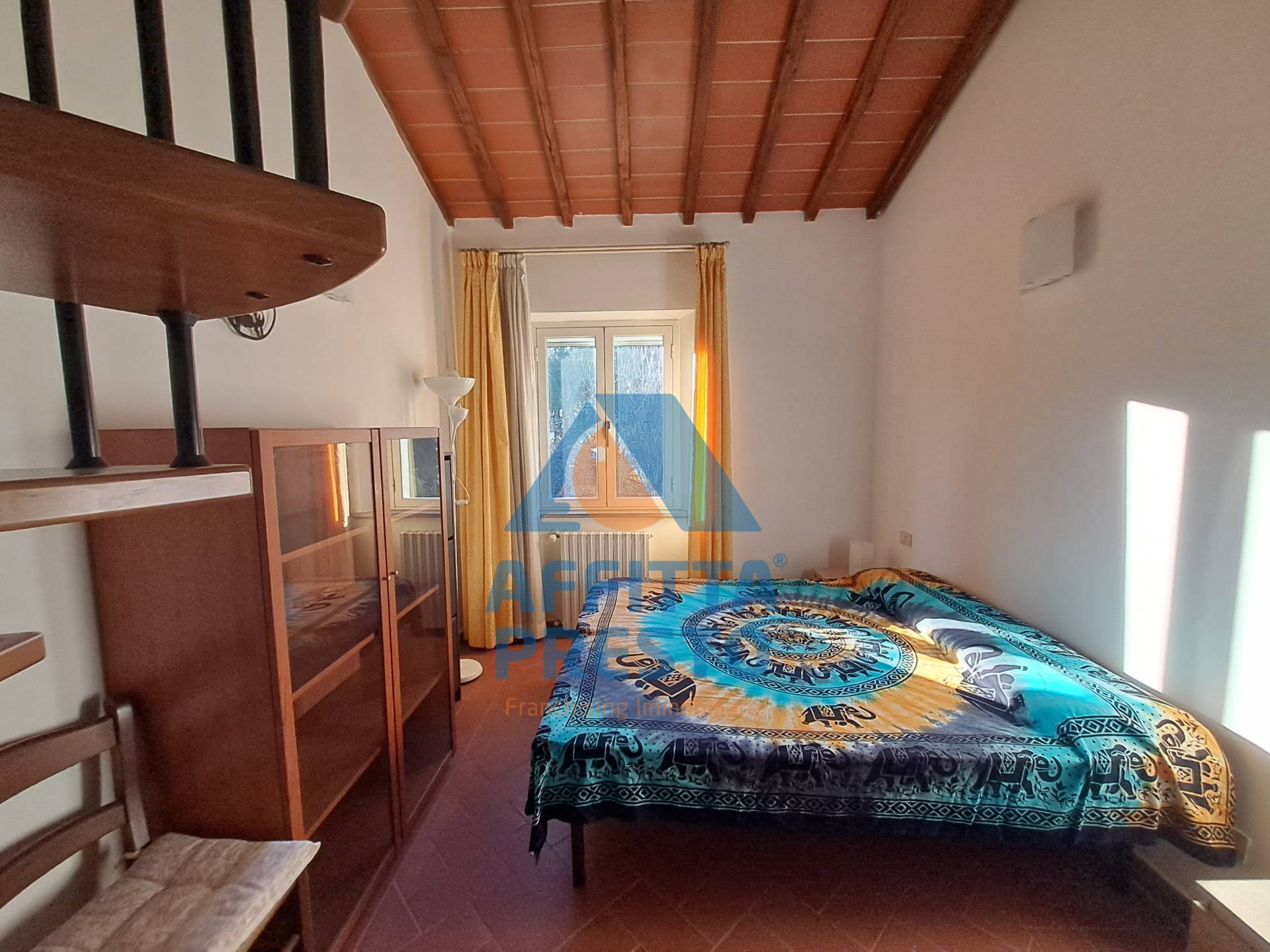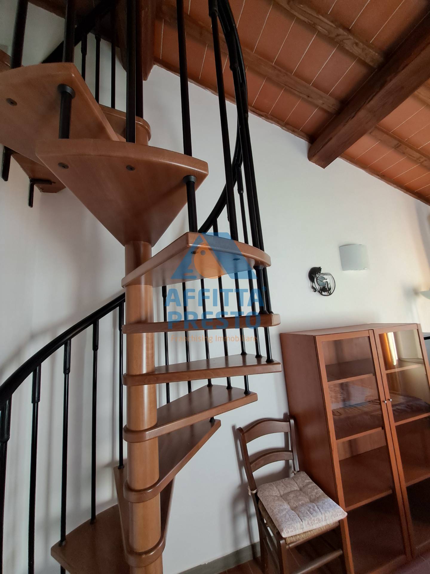 L' appartamento e' composto da cucina soggiorno completa di lavastoviglie e lavatrice, disimpegno con grande armadio, bagno con doccia finestrato, camera matrimoniale con scala a chiocciola con accesso a sottotetto.