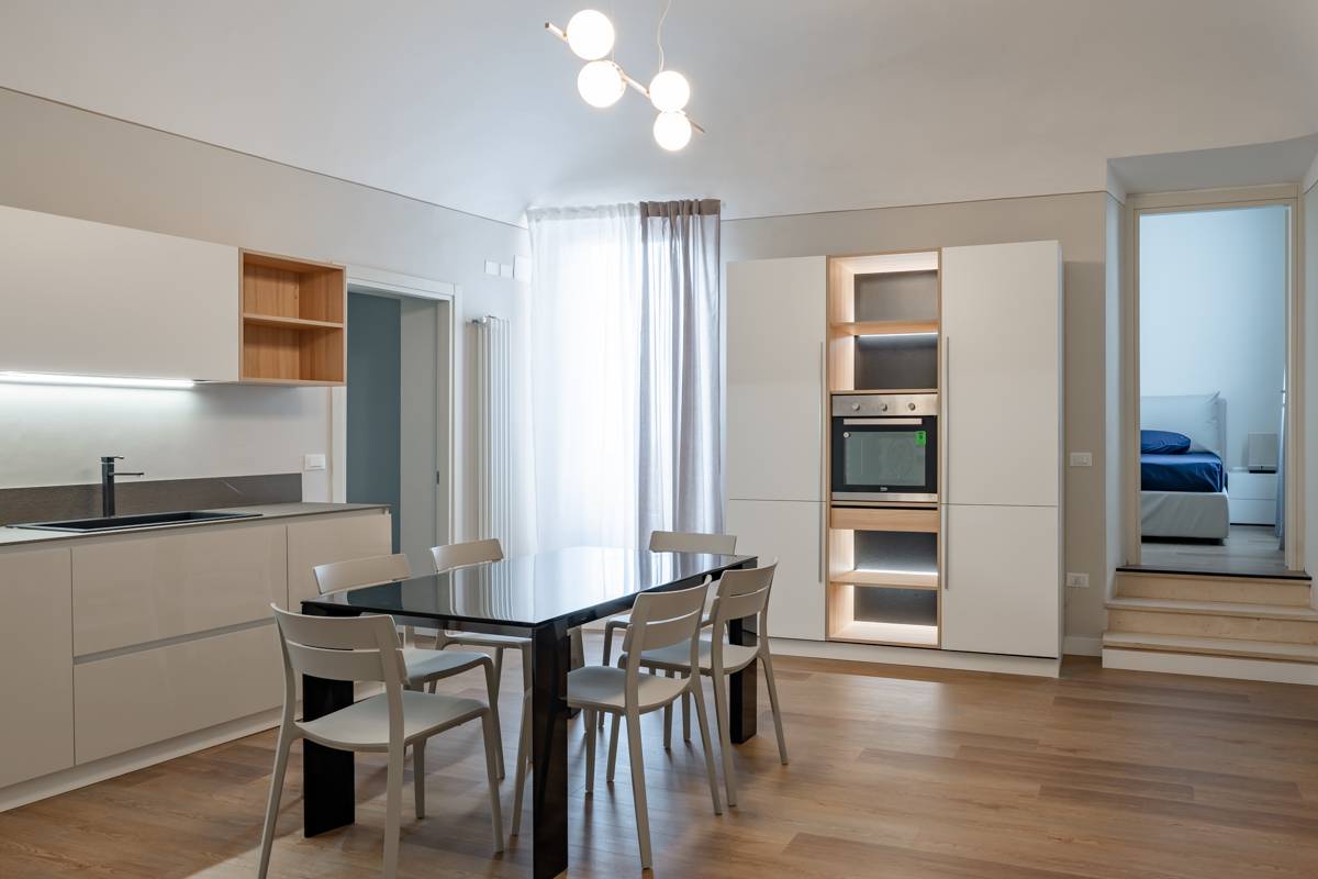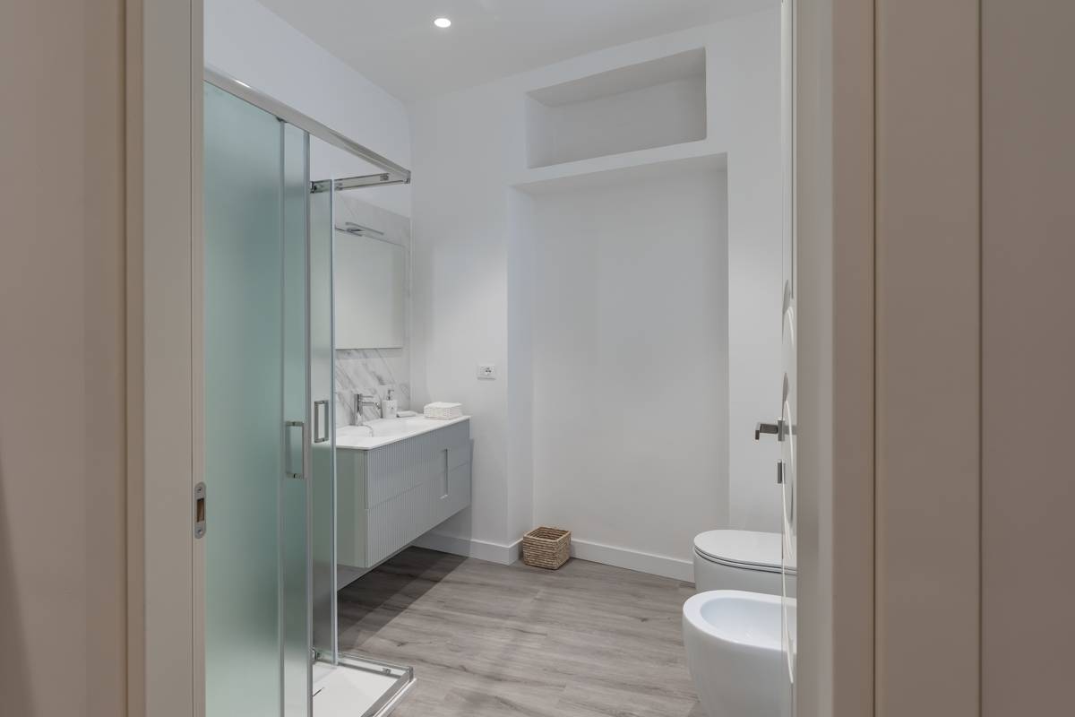 Chieti, centro storico, in piccolo stabile di sole tre unit abitative, non servito da ascensore, appartamento completamente ristrutturato ed arredato con mobilia di pregio composto da ingresso, sala con camino, cucina abitabile, 2 camere da letto, doppi servizi, balconcino e terrazzo.