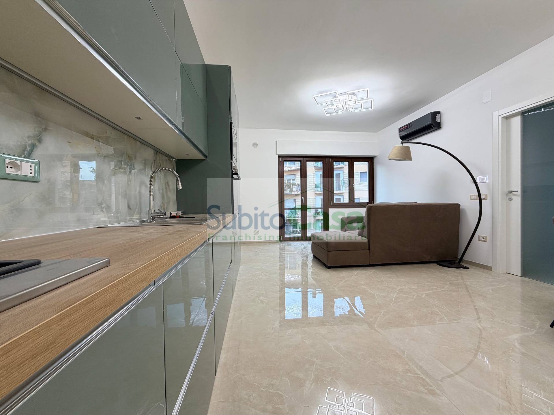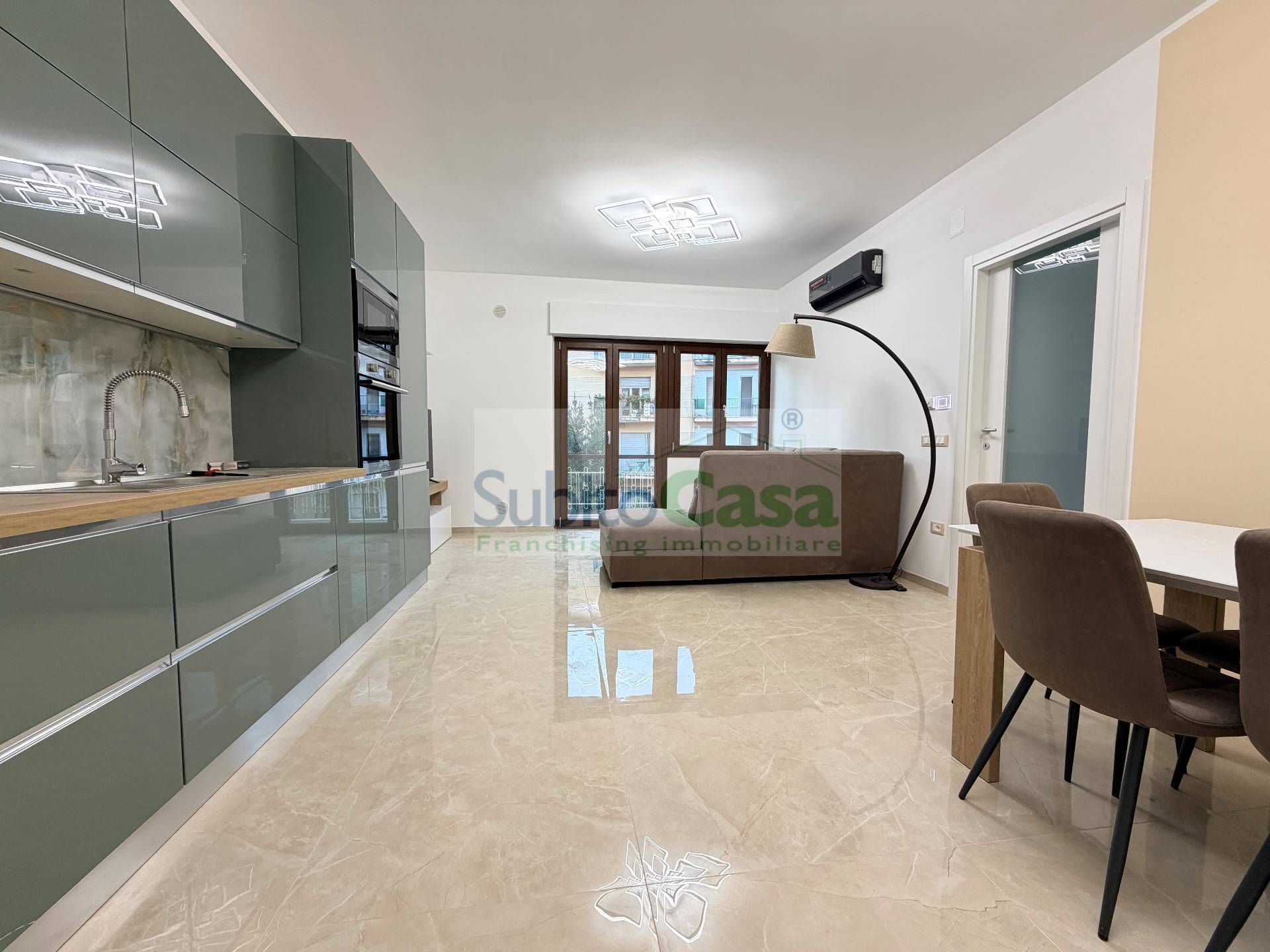Appartamento in affitto a Chieti Scalo centro, in Via Scaraviglia, situato nella zona pi richiesta al centro della citt con tutti i principali servizi sotto casa; L'appartamento situato al 3° piano di un condominio servito da ascensore, sviluppa 60mq ed composto da: ingresso, ampio soggiorno con cucina lineare, zona living con divano e parete attrezzata tv ed uscita sul balcone, disimpegno, 1 bagno con doccia walk-in, 1 camera matrimoniale grande e con l'uscita sul balcone; L'appartamento stato completamento ristrutturato con materiali e rifiniture di pregio, dotato di riscaldamento a pavimento e valvole di zona per ogni stanza, infissi in PVC a taglio termico, caldaia nuova, climatizzatori in ogni ambiente, lavastoviglie, lavatrice, autoclave e wi-fi, inoltre gode di un ottima esposizione risultando luminosissimo.