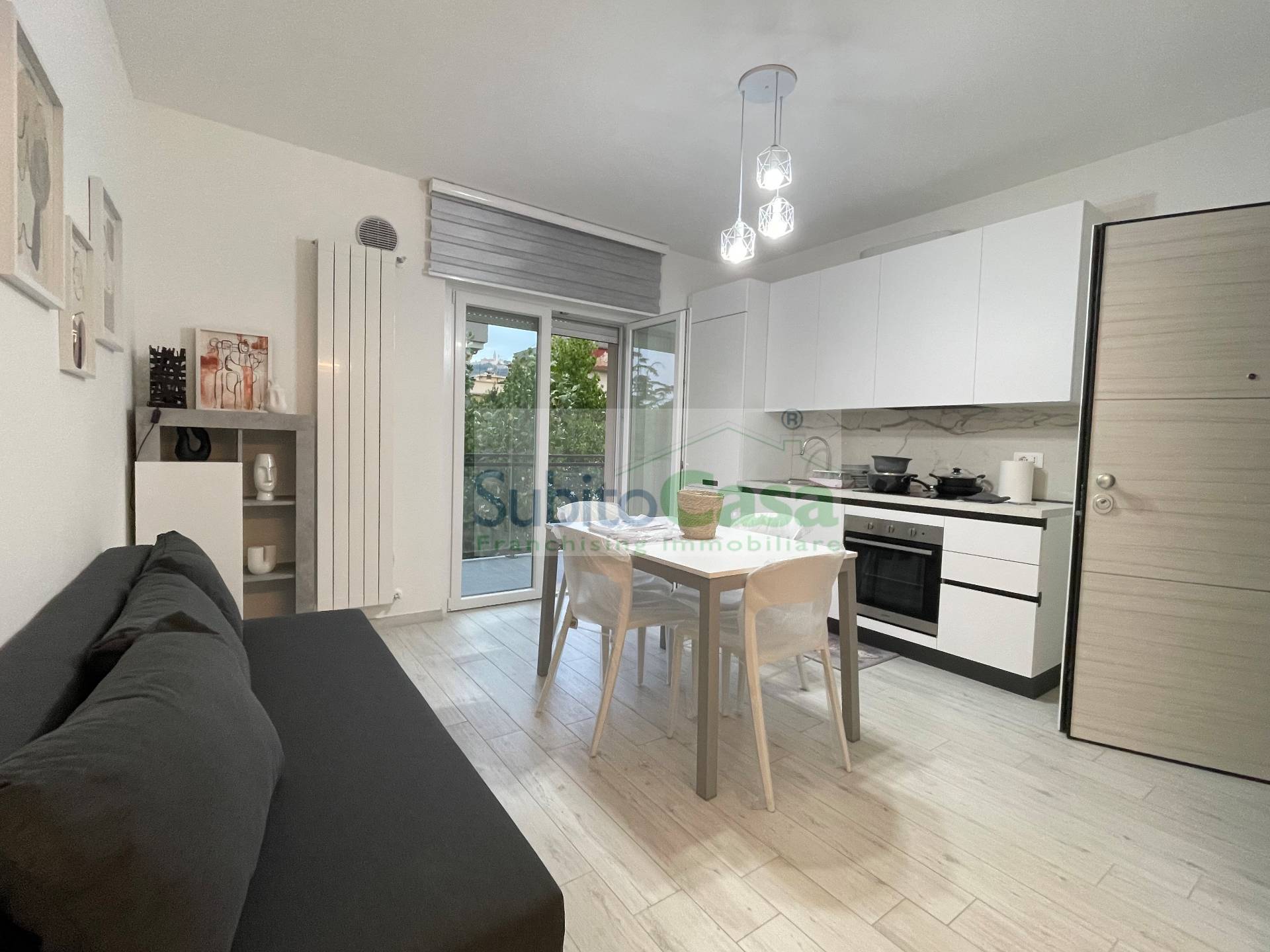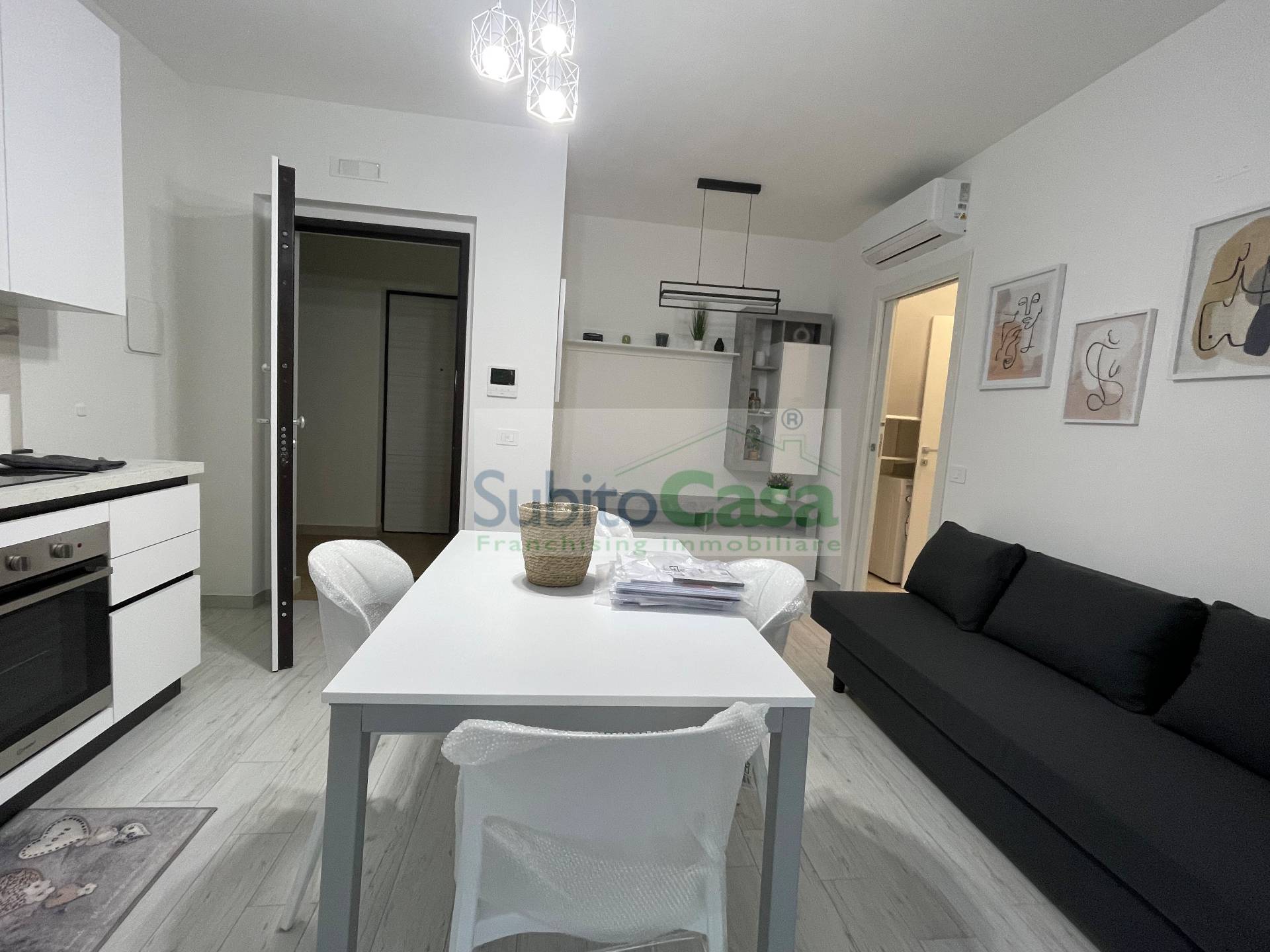 L'appartamento situato all'interno di un condominio di nuova costruzione, in classe energetica "A+", situato al 2° piano con ascensore, sviluppa 50 mq e si compone da ingresso con comodo angolo-cottura e zona giorno, camera matrimoniale, bagno con doccia oltre a balconi; L'appartamento dotato di materiali e rifiniture di pregio, mobilia nuova, lavastoviglie, lavatrice e riscaldamento autonomo.