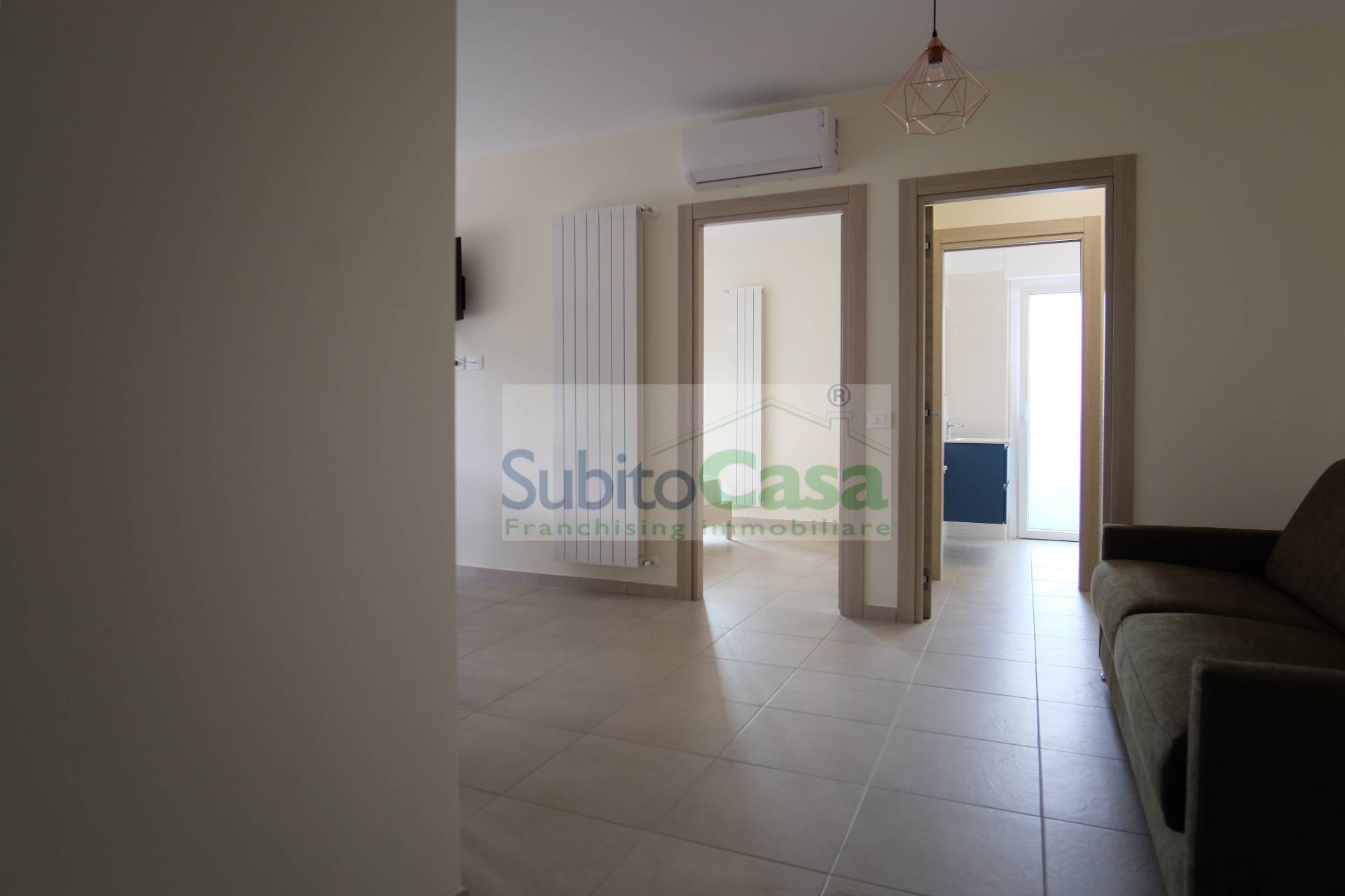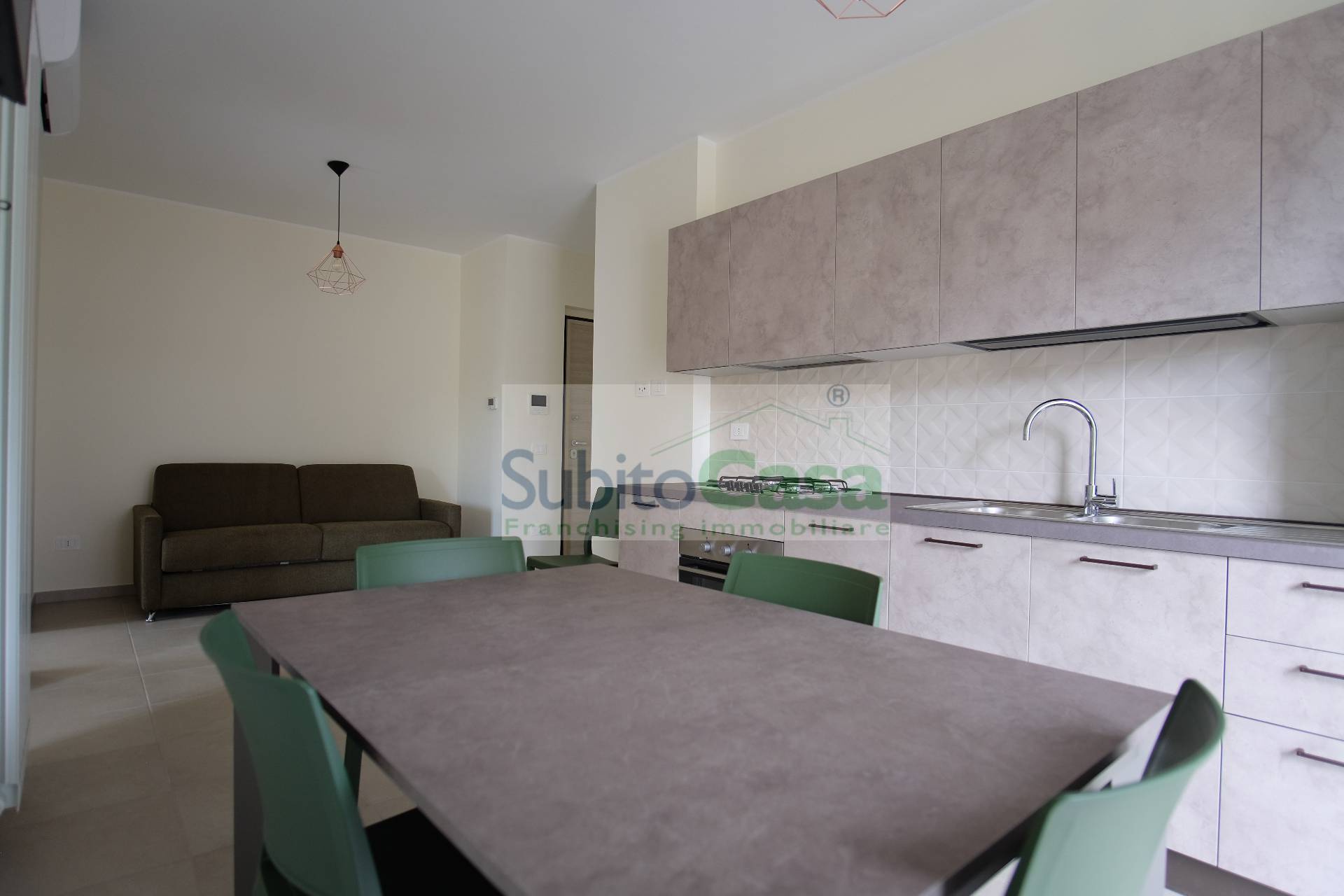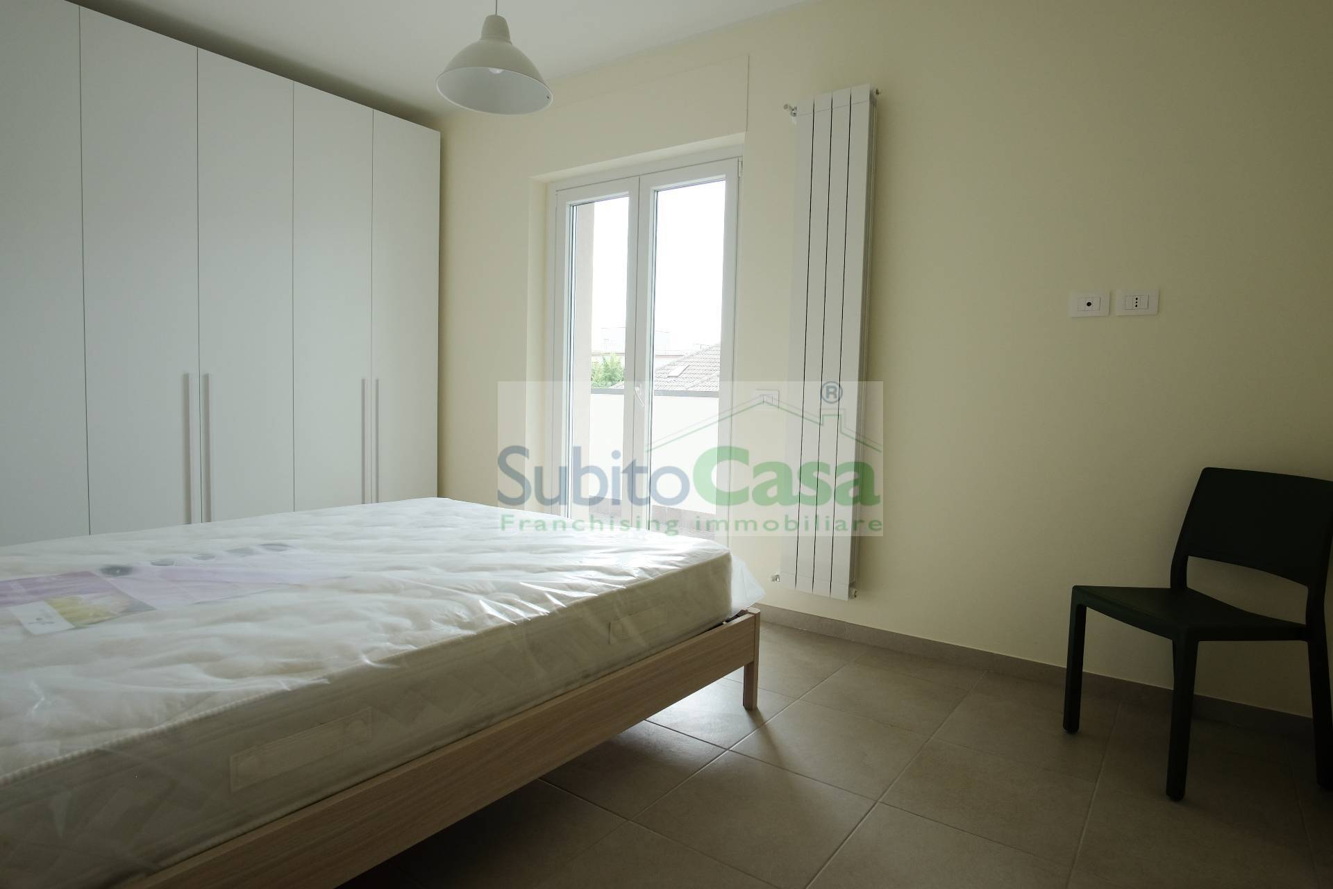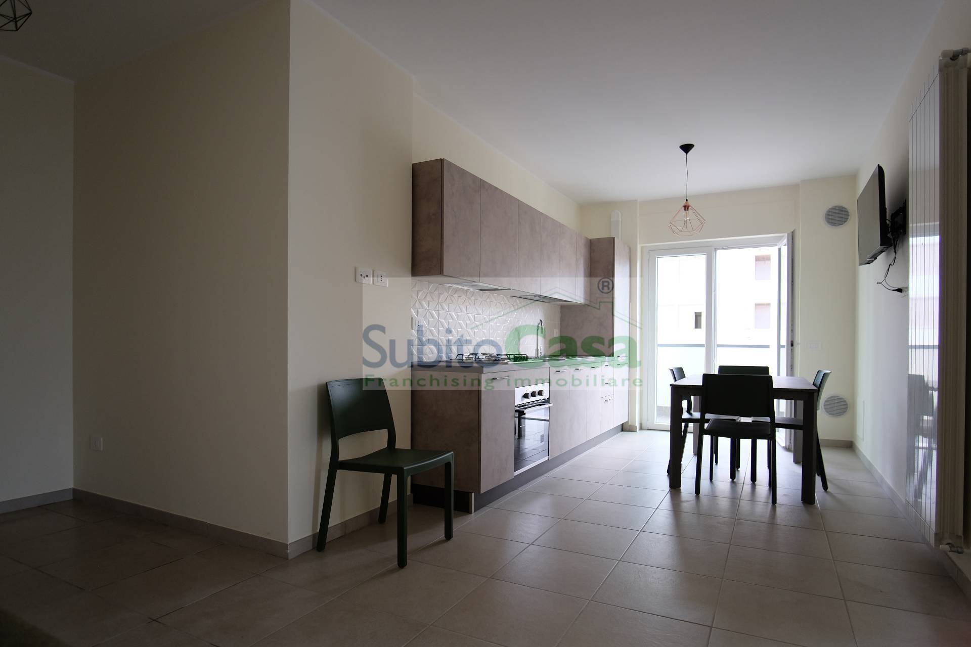 Appartamento di nuova costruzione in affitto a Chieti Scalo centro, in via Meneghini una traversa di Via Colonnetta, nella zona pi centrale della citt con tutti i principali servizi sotto casa; Disponibile da Febbraio 2026 L'appartamento situato all'interno di un condominio di nuova costruzione, in classe energetica "A++", situato al 1° piano con ascensore, sviluppa 50 mq circa e si compone da ingresso con comodo angolo-cottura e zona giorno, camera matrimoniale con bagno in camera oltre ad un ampio balcone; L'appartamento dotato di materiali e rifiniture di pregio, climatizzatore, mobilia nuova, lavatrice e riscaldamento autonomo.