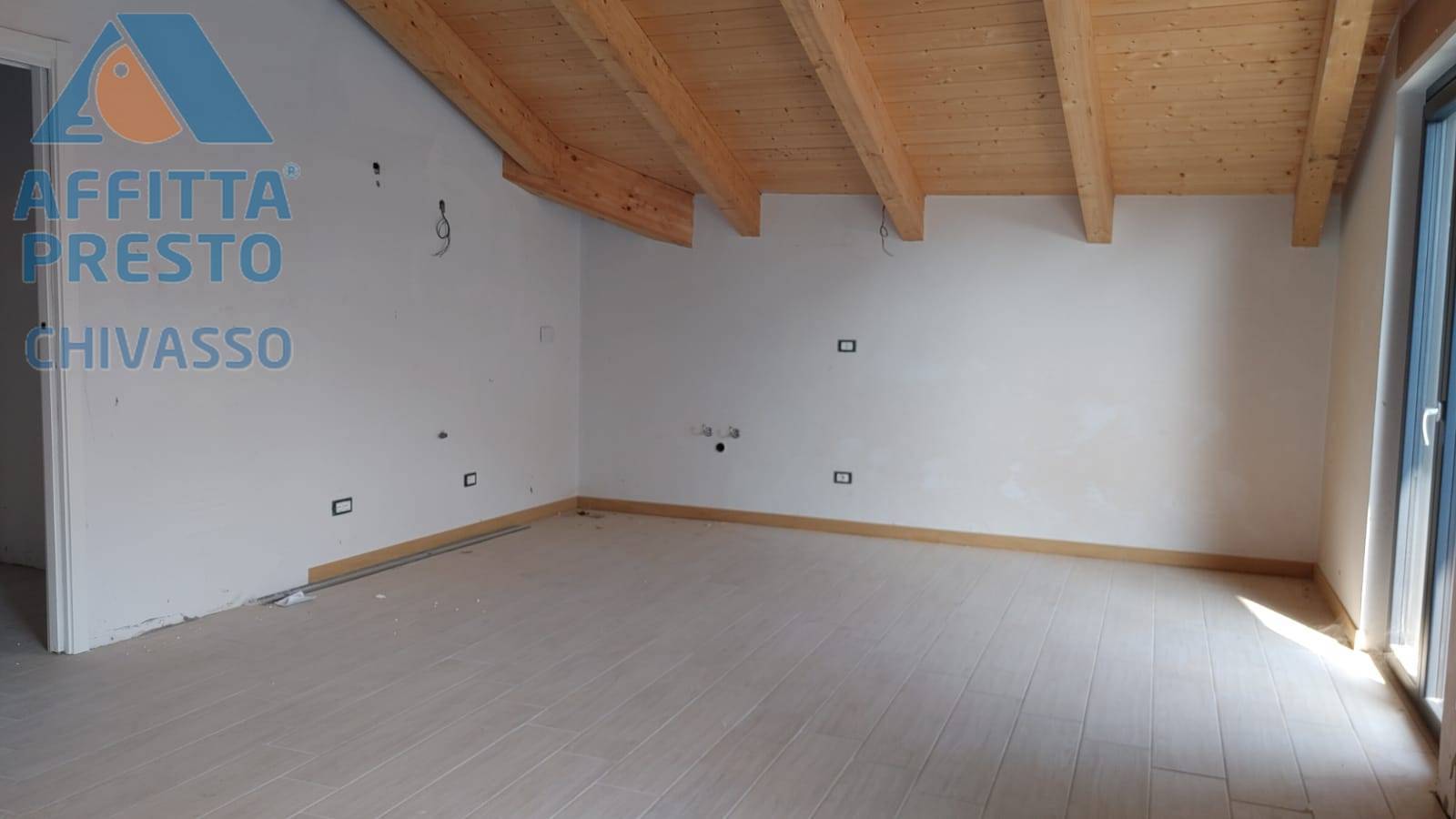 RIF. 640 AFFITTA VENDE PRESTO CHIVASSO Cell 379 1266313 In una bella nuova costruzione appena terminata nella zona di Castelrosso,proponiamo in affitto al 1 piano di una piccola palazzina di soli due alloggi uno splendido appartamento con travi a vista e riscaldamento autonomo a pavimento.