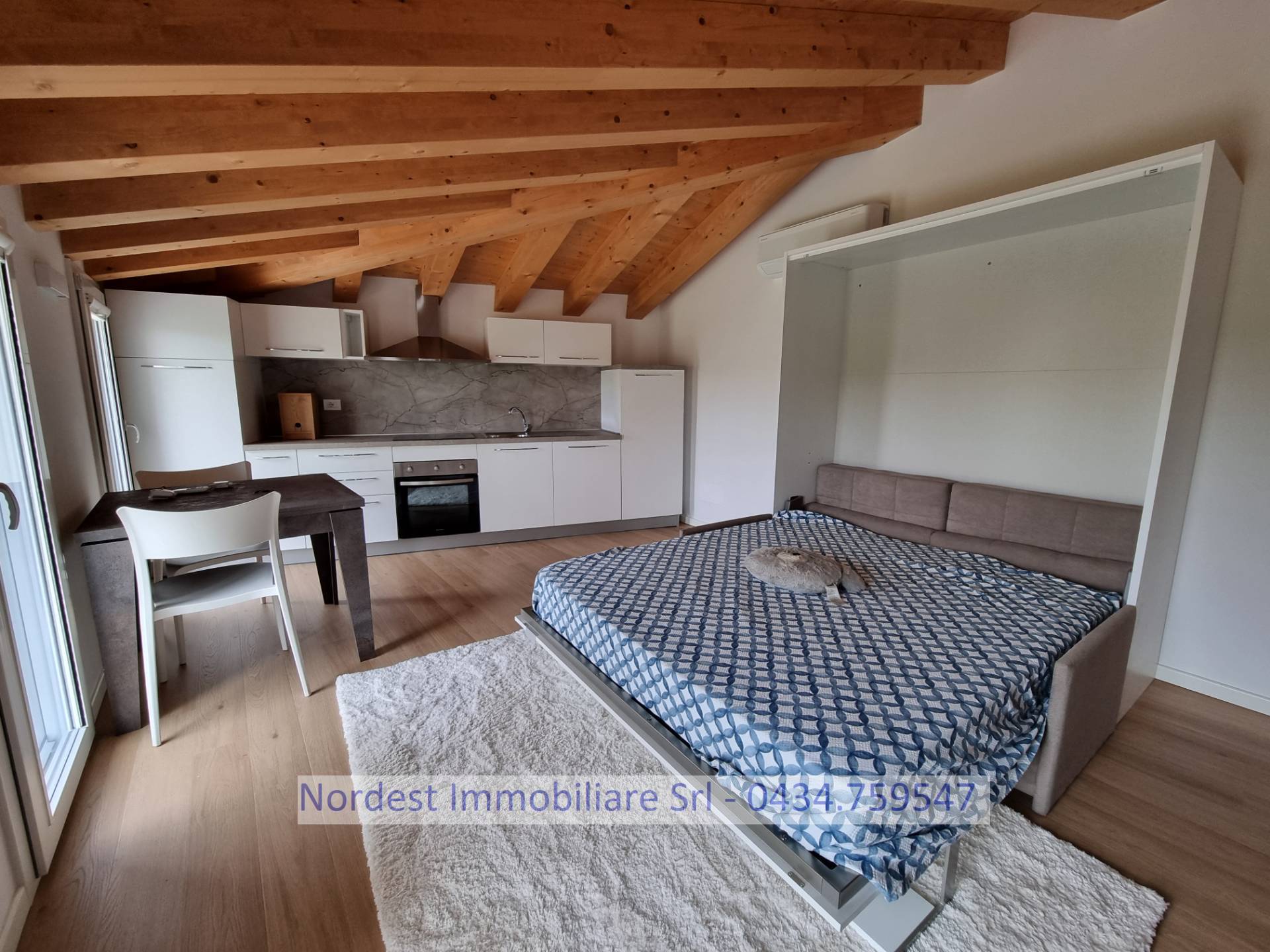 Affittasi nuovo monolocale al piano primo di una palazzina di sole sei unit. L' appartamento composto di soggiorno/cucina/camera, bagno, ripostiglio, posto auto. L' abitazione viene consegnata completamente arredata.