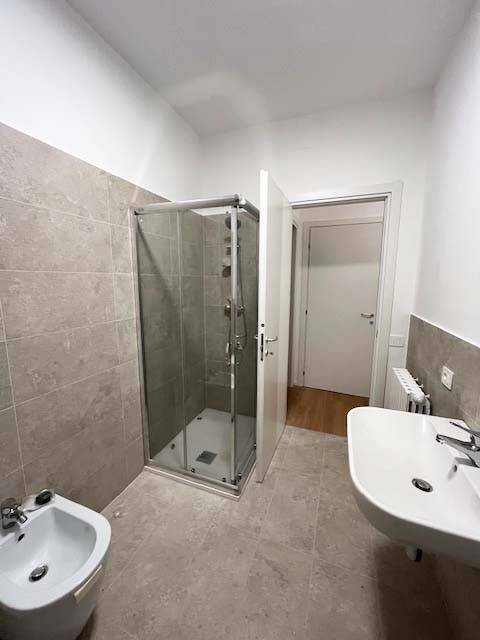 L'immobile situato in zona molto ben servita composto da ingresso su disimpegno, ampio salone e cucina, tre camere, due bagni finestrato con box doccia.