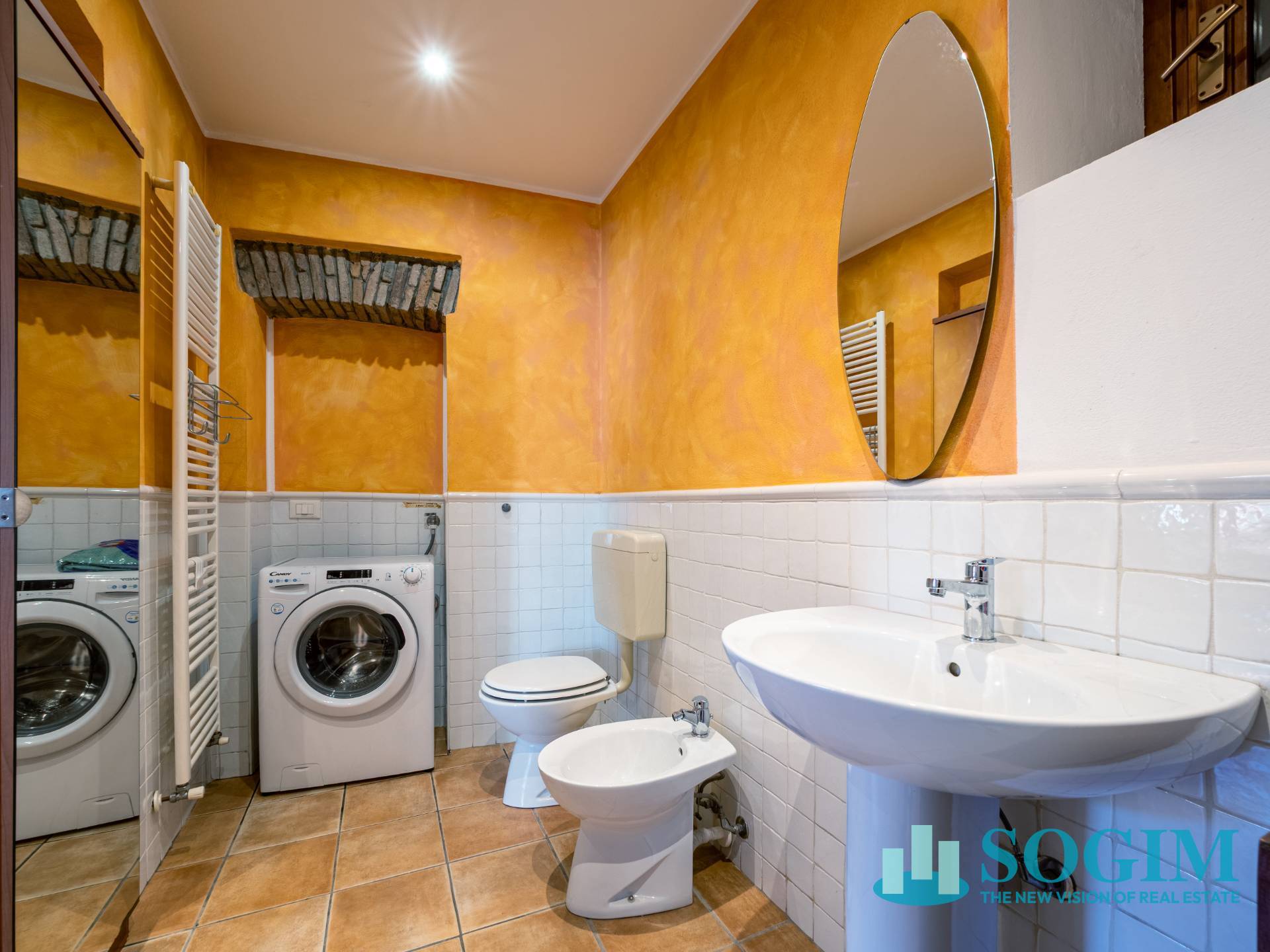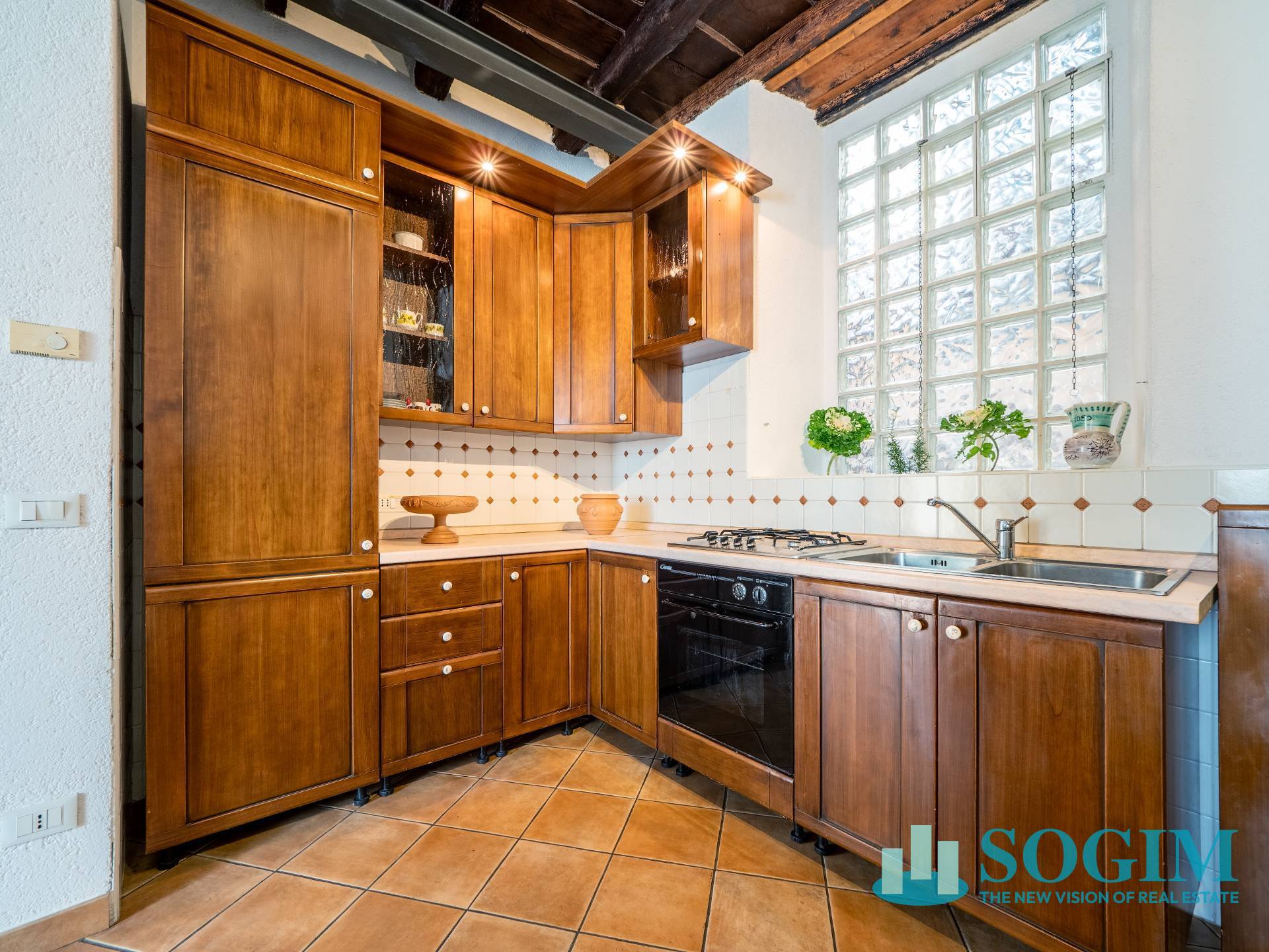 Il bilocale, caratterizzato da suggestive pareti con pietre a vista e splendide travi in legno, che conferiscono unatmosfera calda ed accogliente, situato in un contesto cortilizio munito di portone automatizzato e privo di servizio di portineria.