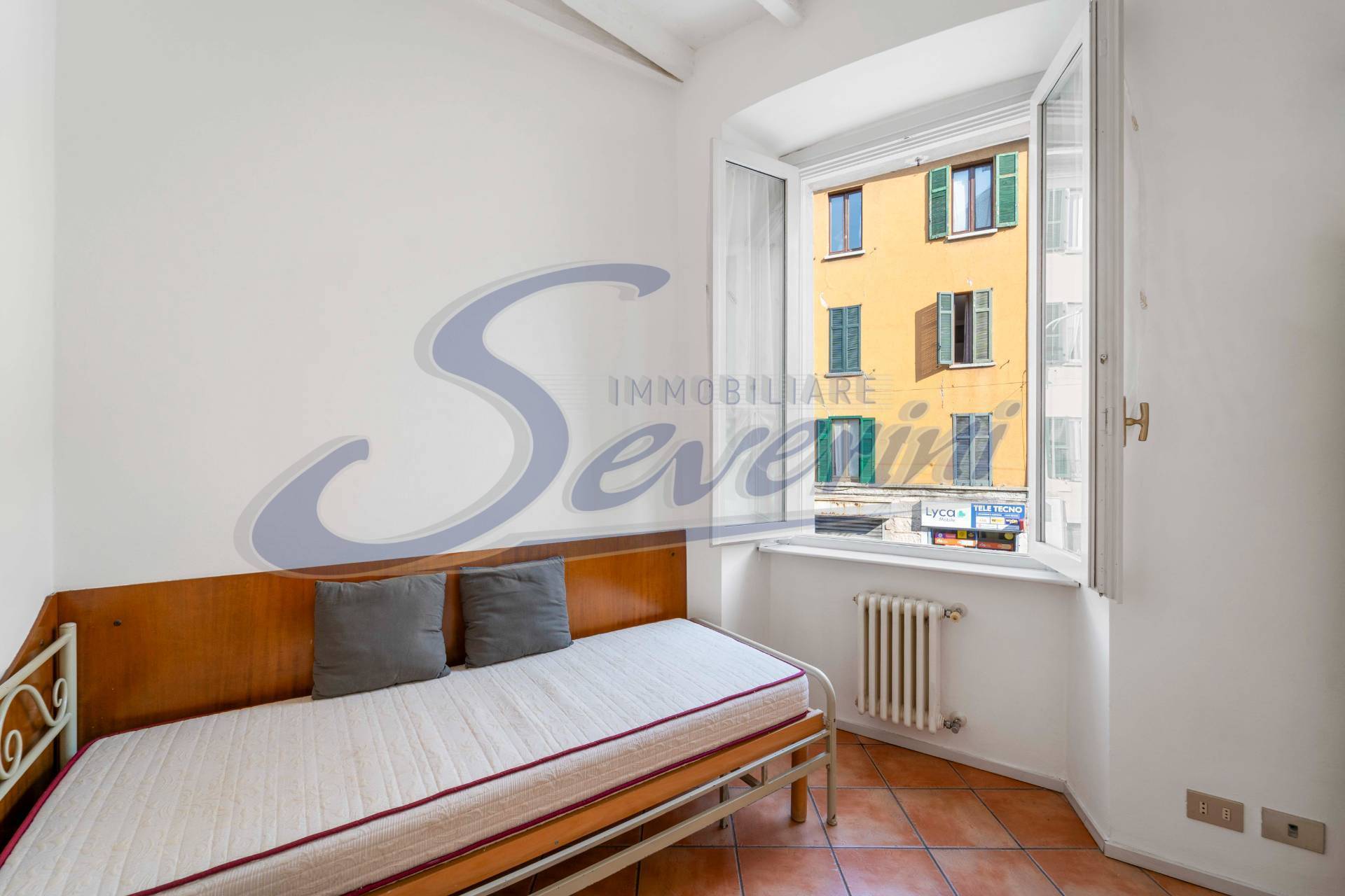 L'appartamento, posto al 1° piano (senza ascensore), composto da un luminoso soggiorno con cucina a vista, disimpegno, un moderno bagno con box doccia, camera matrimoniale con accesso al pratico terrazzino e cameretta.