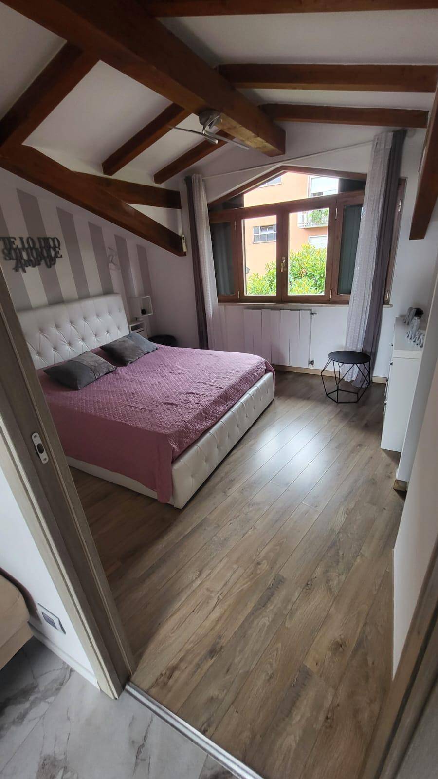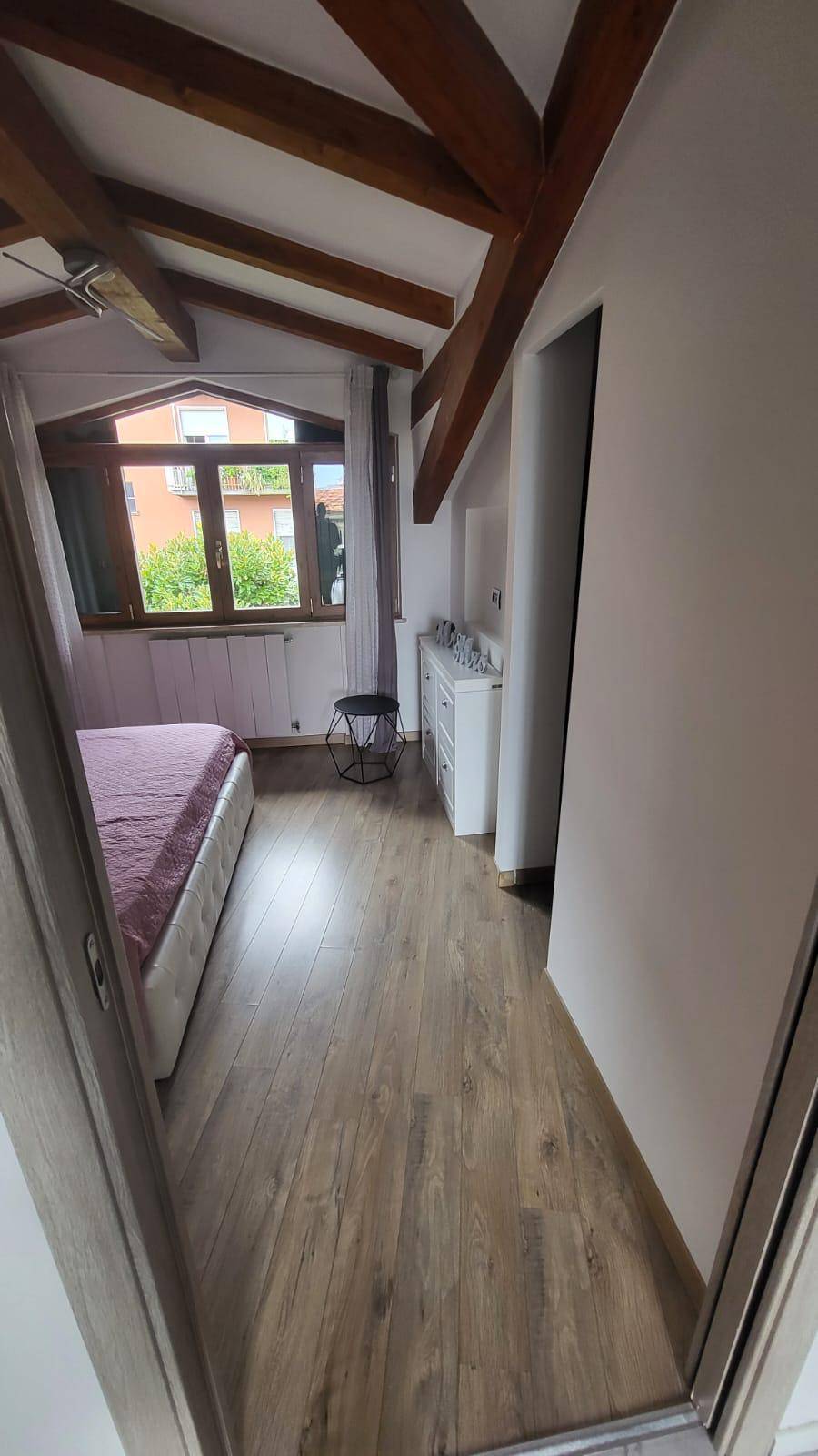 **BILOCALE CON BALCONE IN AFFITTO** In un elegante complesso residenziale proponiamo un ampio bilocale mansardato, dalle altezze generose, completamente ristrutturato e pronto per essere abitato.