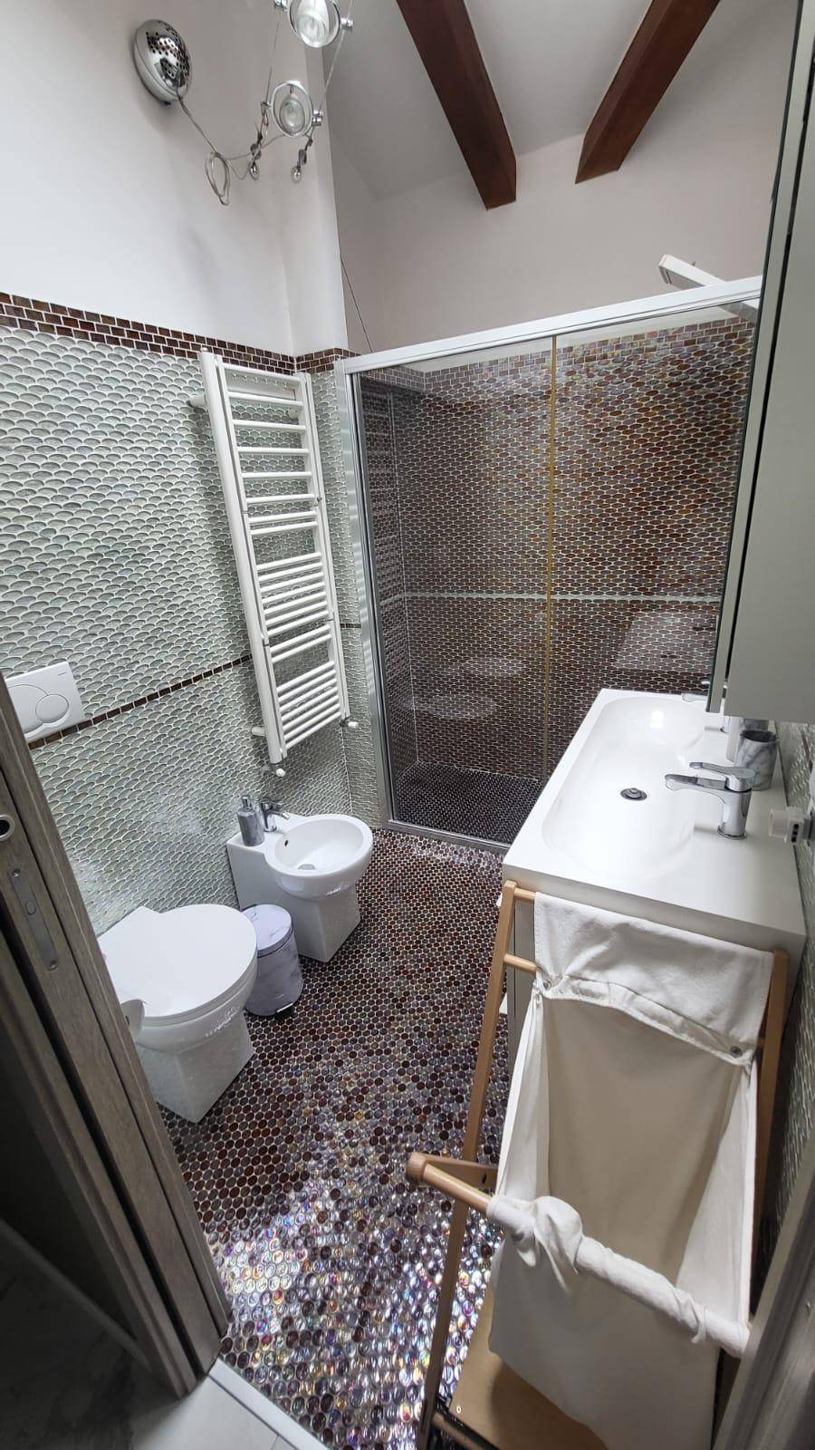 Dal comodo disimpegno si accede al bagno, ampio e moderno, completo di doccia idromassaggio e di tutti i comfort.
