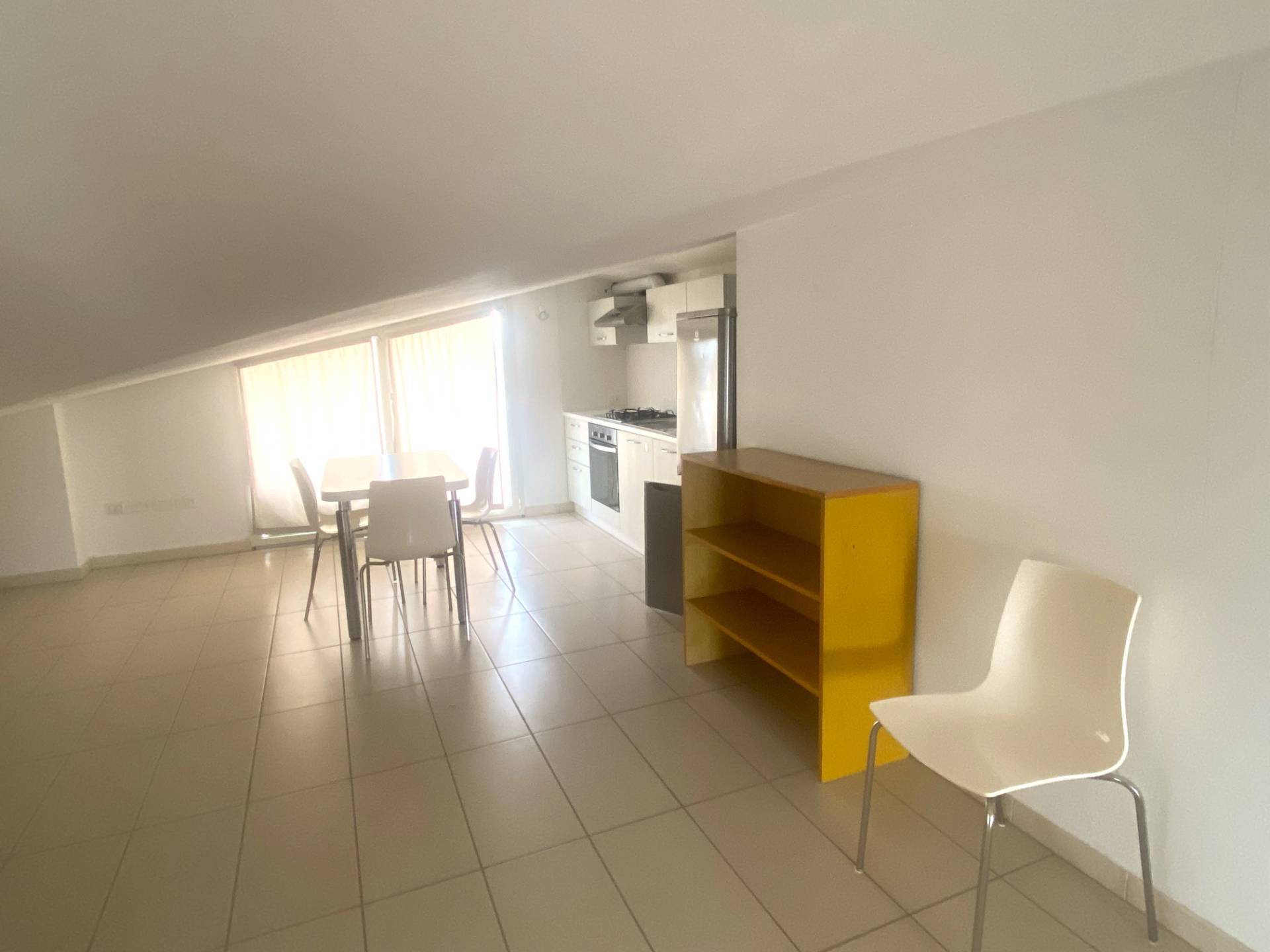 All'ingresso di Elmas nella nuova zona residenziale Vi proponiamo in affitto un grazioso monovano mansardato al 2° piano con ascensore di recente realizzazone, composto da un ambiente unico totalmente aperto di mq. 100 con zona cottura, soggiorno, camera da letto e bagno.