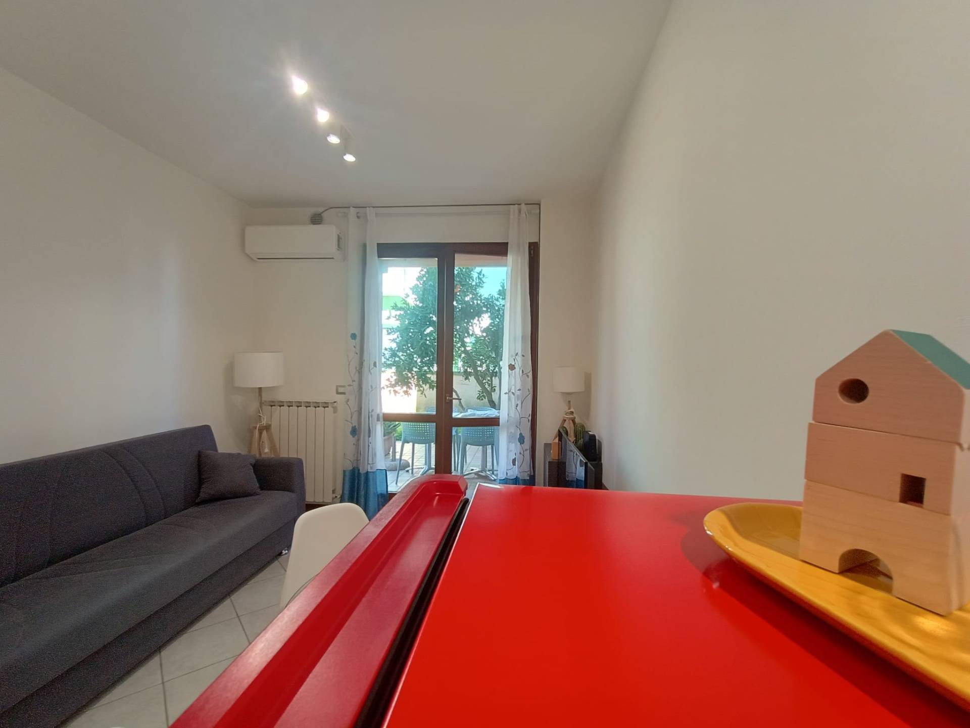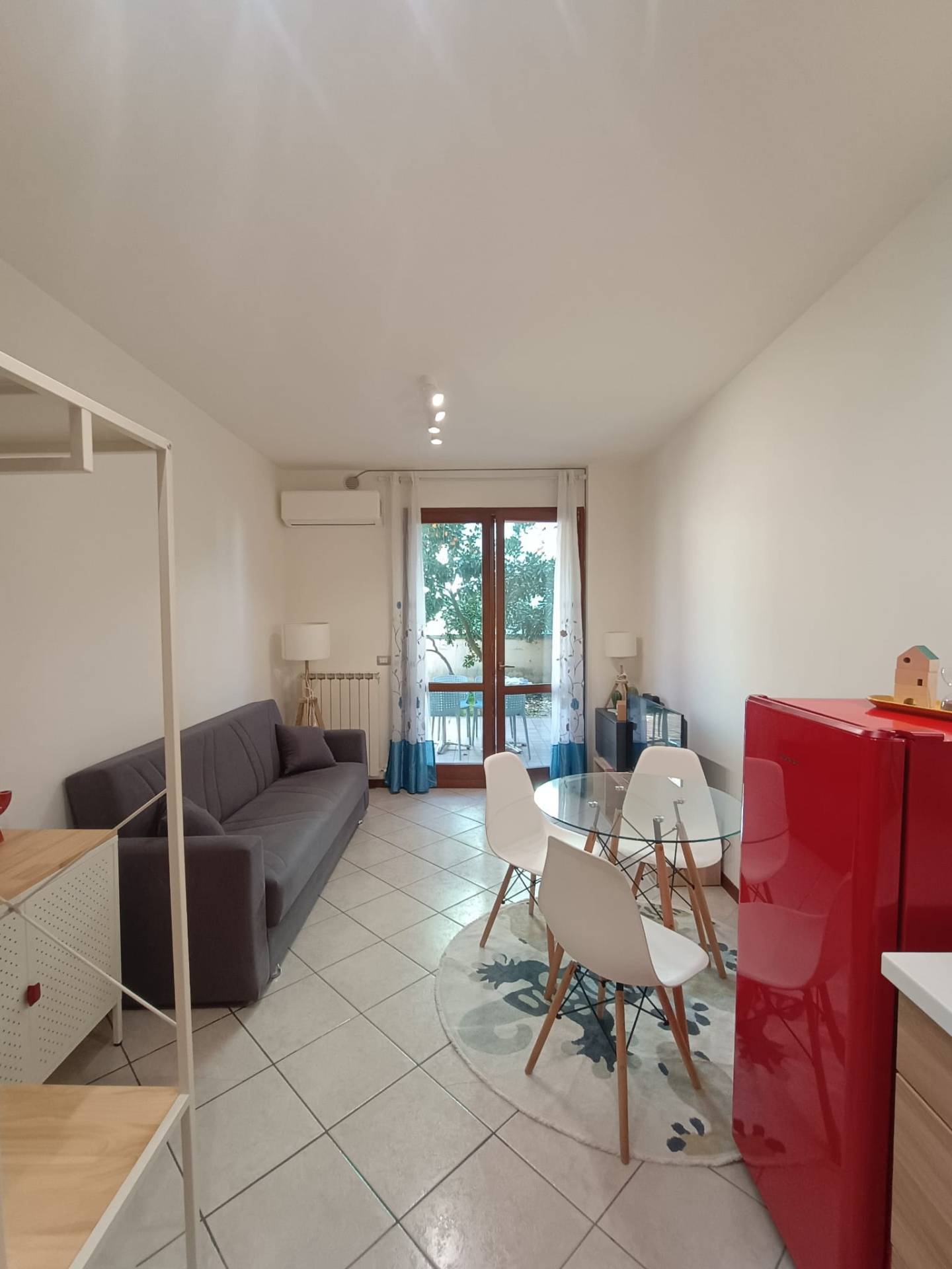 Si propone grazioso e luminoso bilocale a 100 MT dalla spiaggia Lido e centro citt, completamente arredato stile moderno, con splendido porticato arredato e dotato di barbecue, giardino esclusivo.