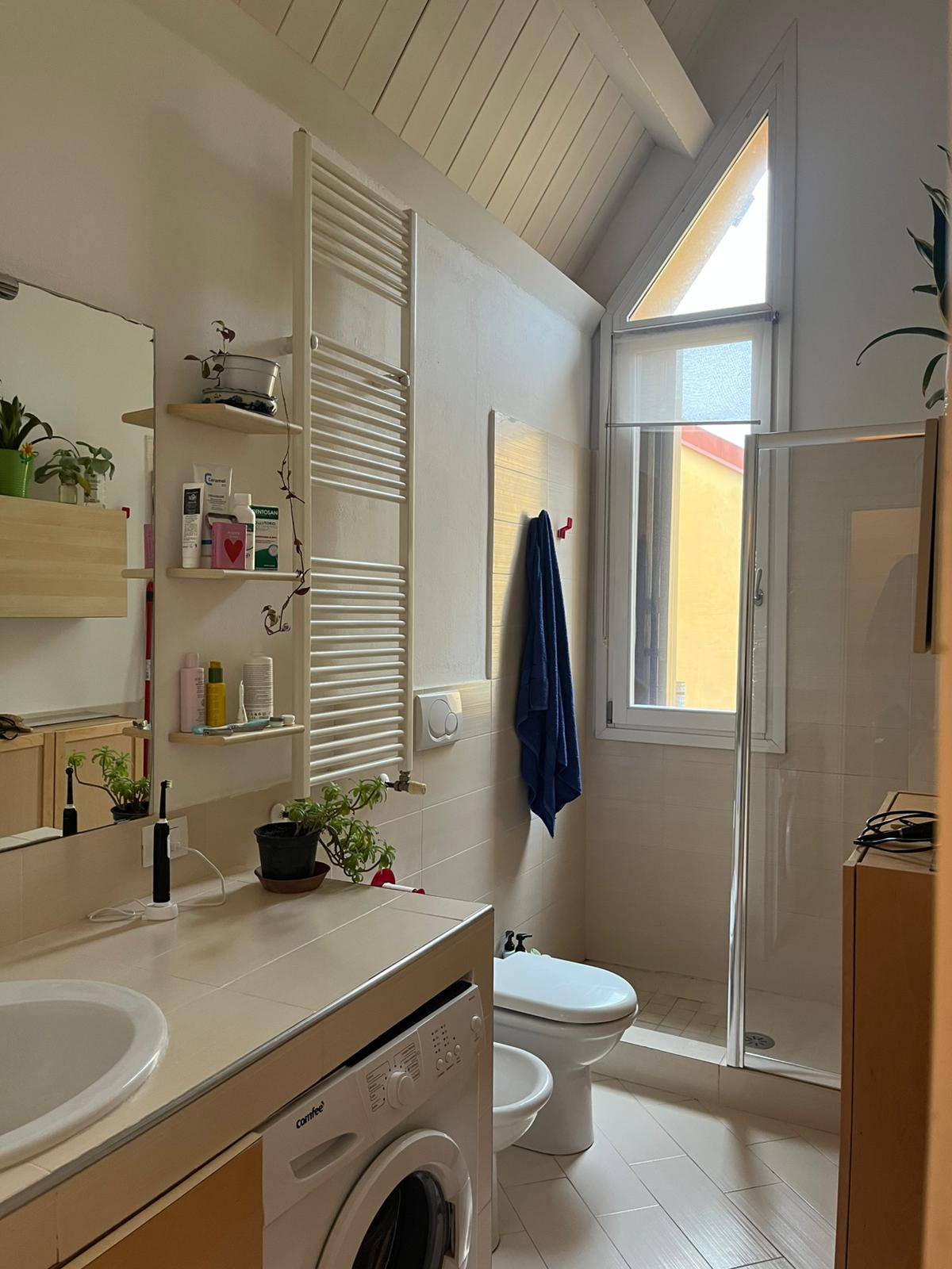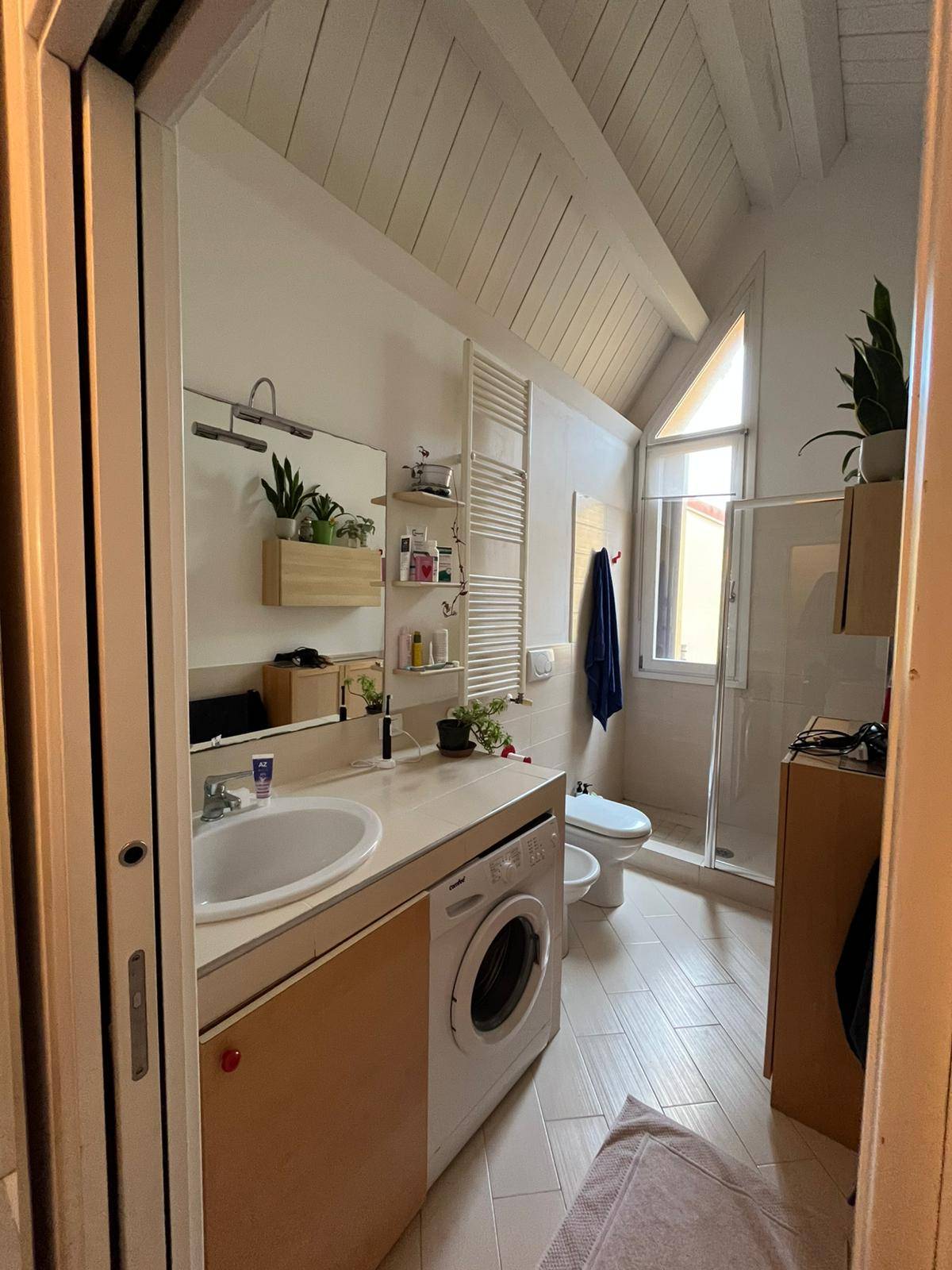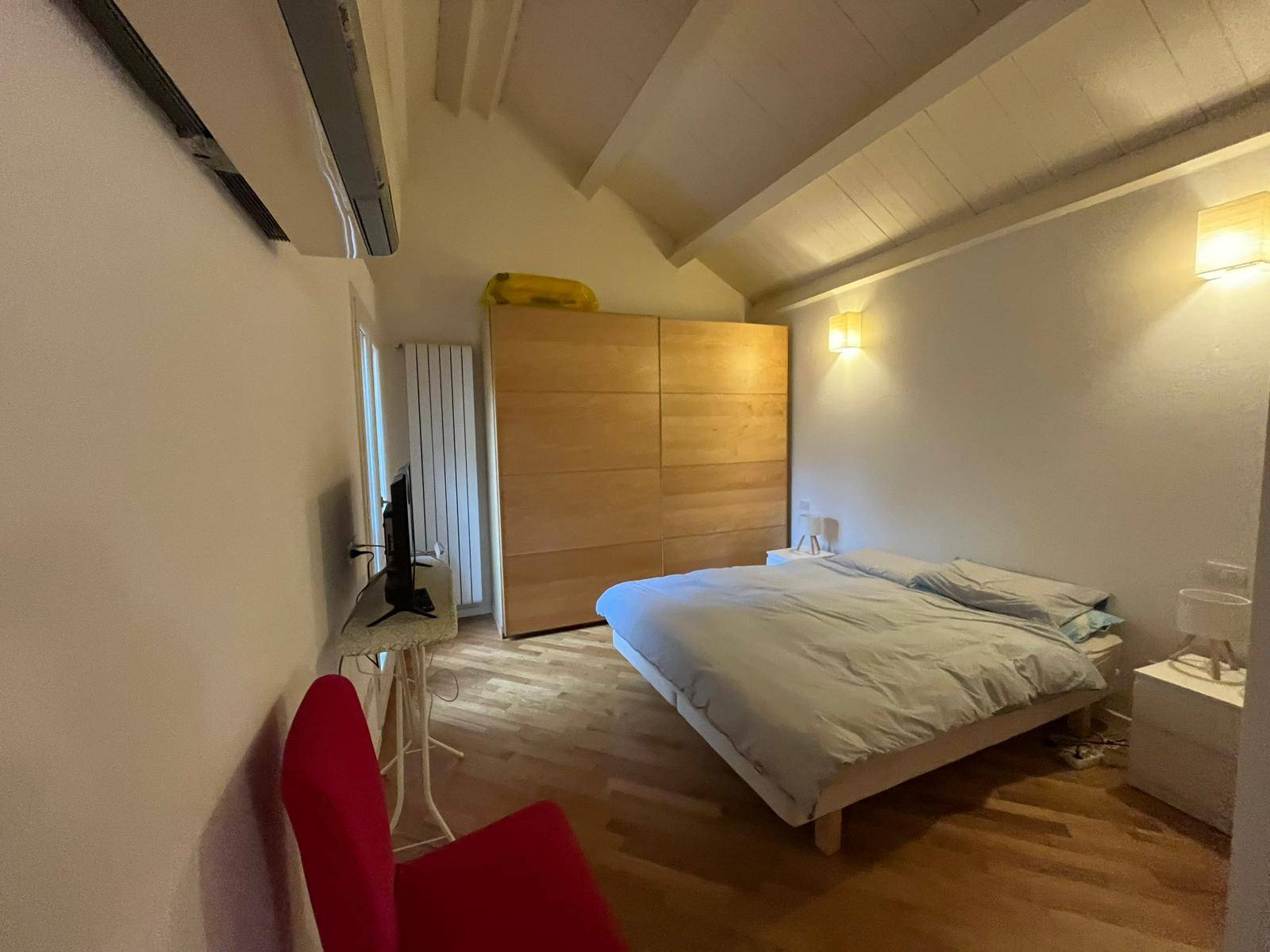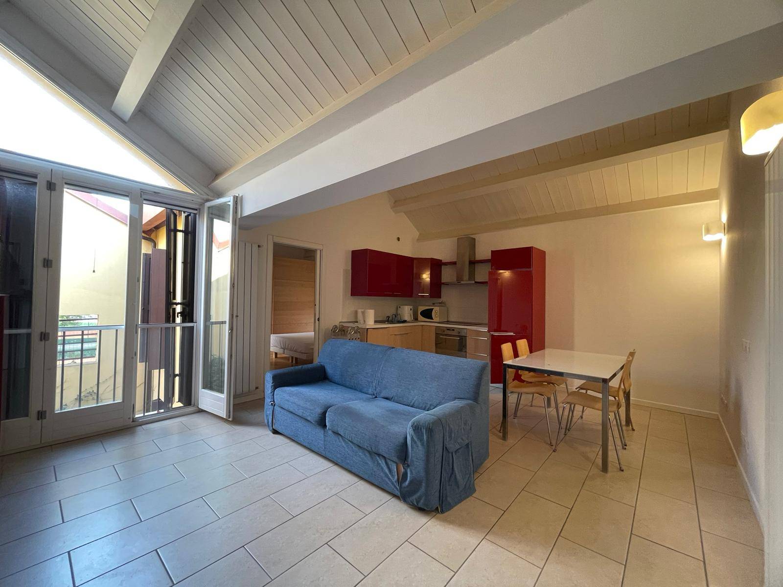 L'appartamento composto da zona giorno con angolo cottura, camera da letto matrimoniale e bagno finestrato con doccia.