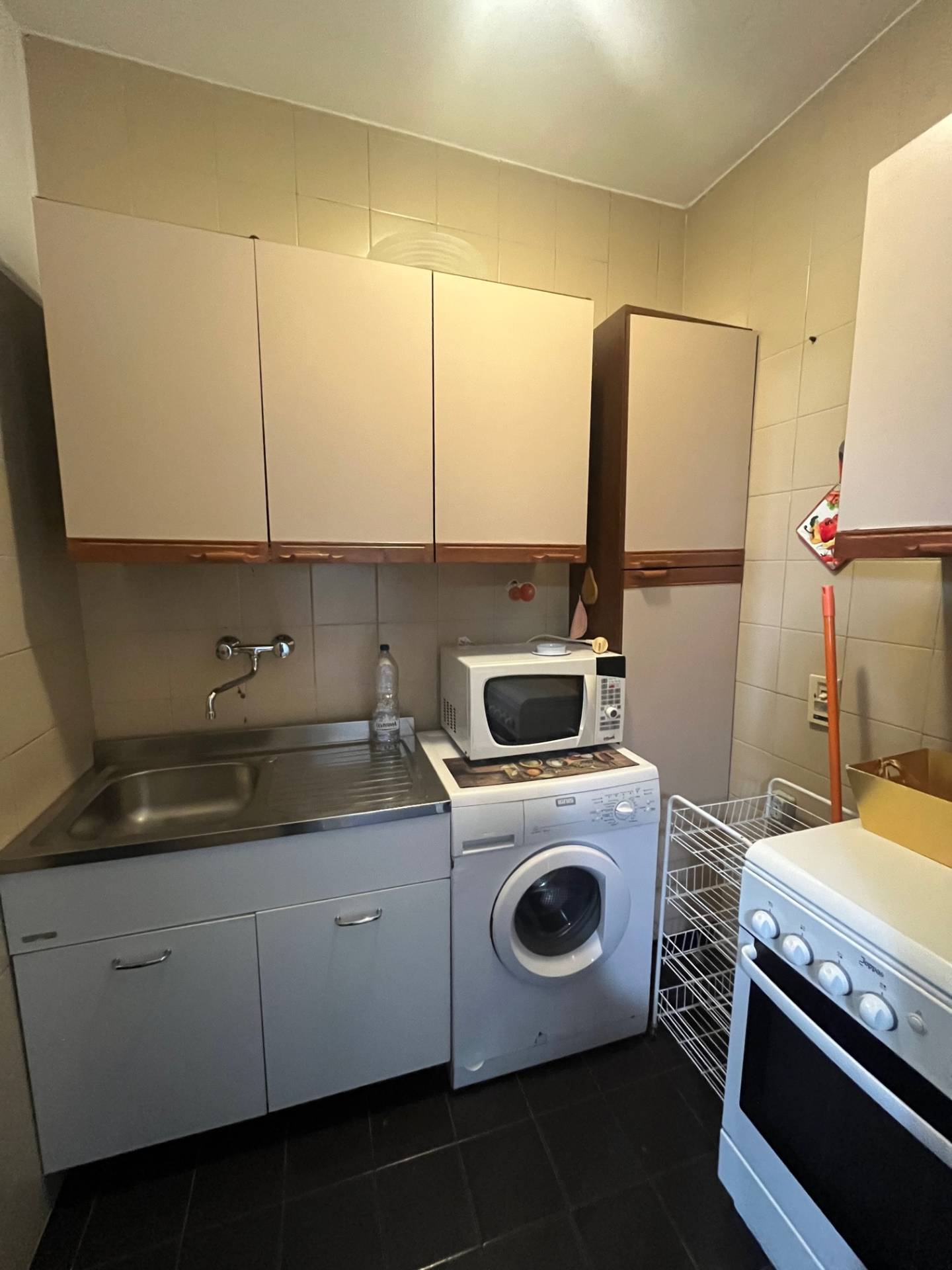 Al piano terra e disponibile da luglio, bilocale arredato, composto da ingresso, soggiorno con angolo cottura separato, camera doppia con due letti singoli, bagno finestrato.
