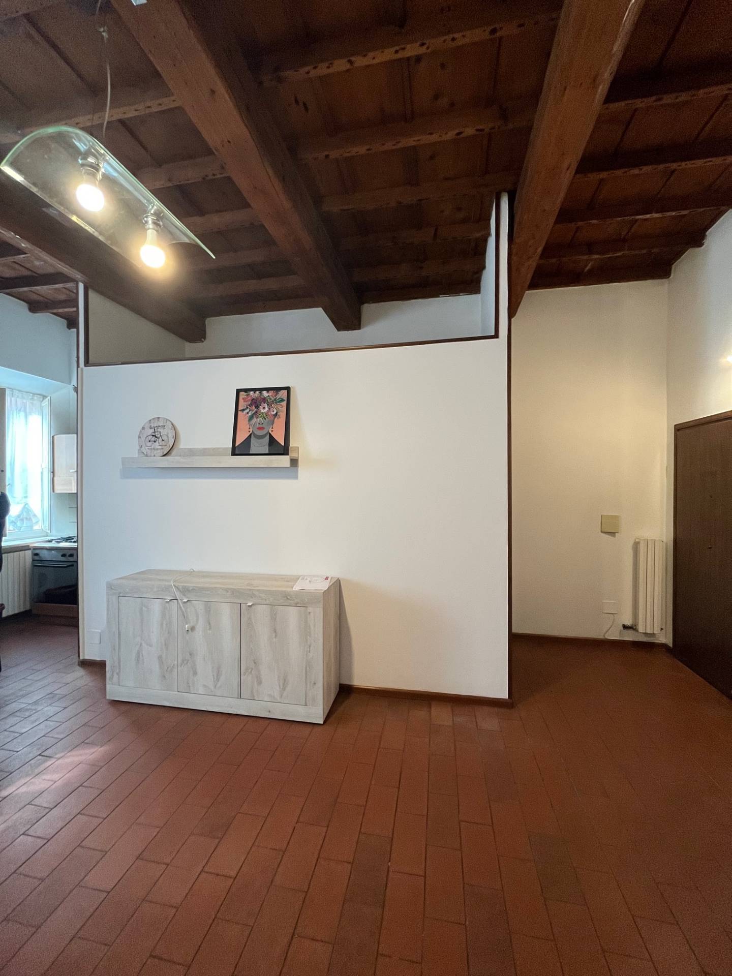 Monolocale con angolo cottura e zona notte, bagno.