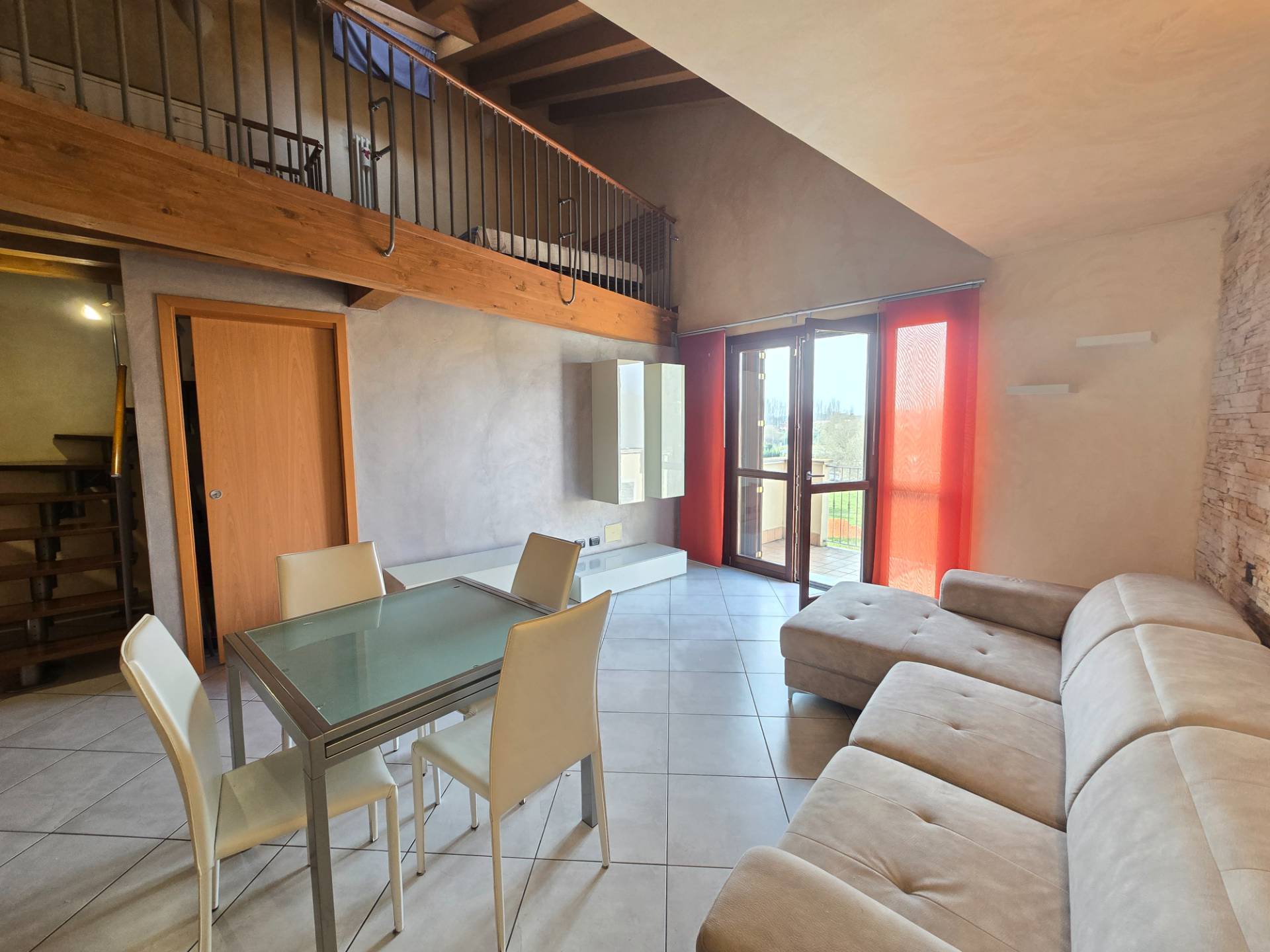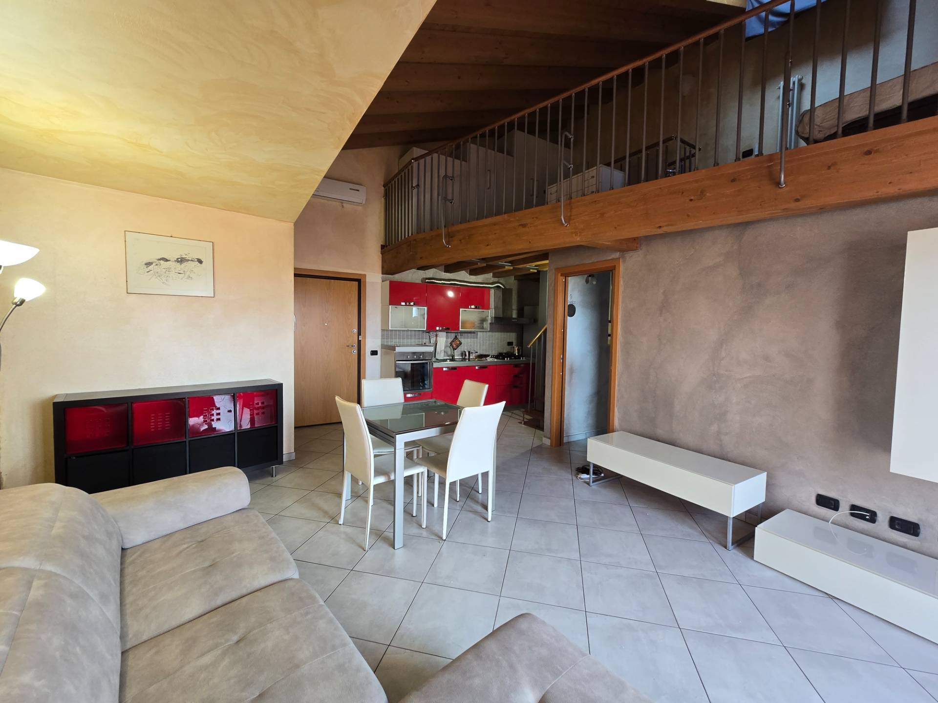 Limmobile composto da: ingresso su luminoso soggiorno con terrazzo panoramico angolo cottura camera da letto soppalcata bagno finestrato con box doccia Completano la propriet: garage privato posto auto condominiale ampio deposito biciclette condominiale Utenze autonome, teleriscaldamento.