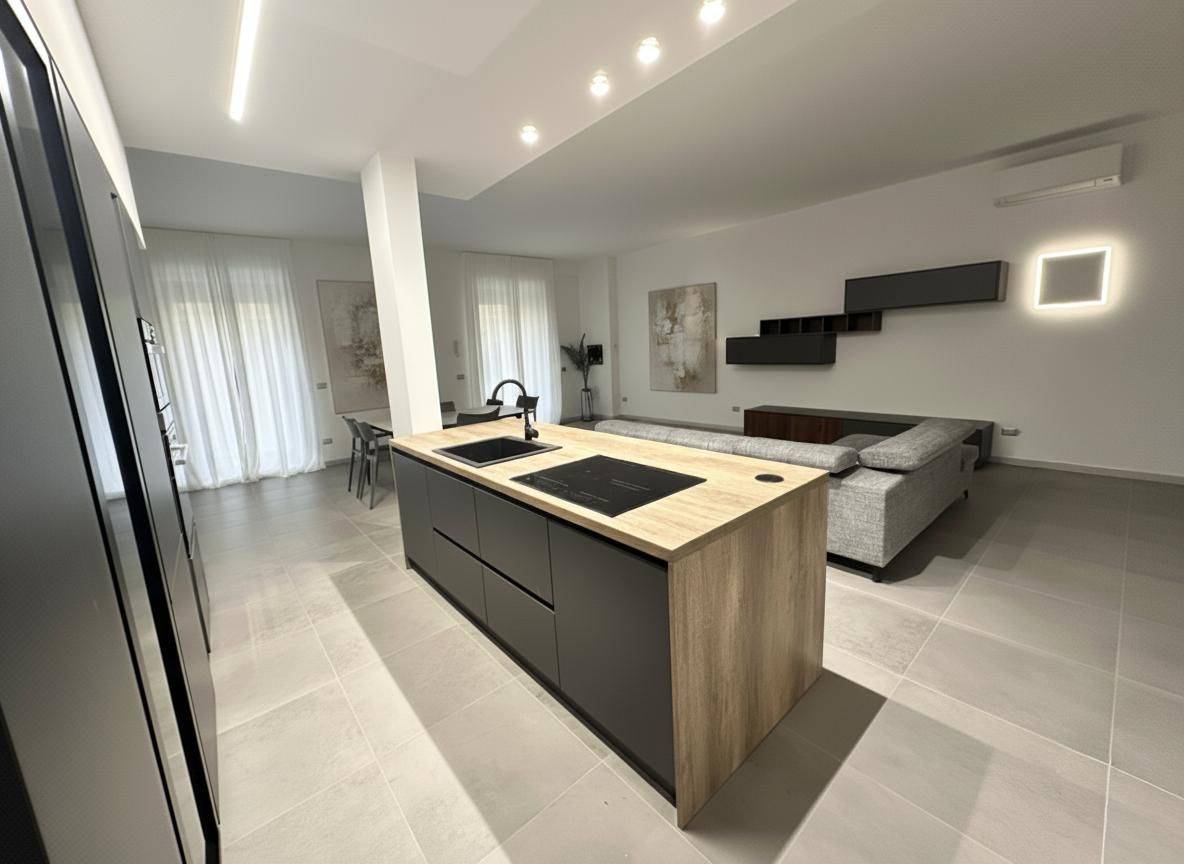 L'appartamento composto da ampio soggiorno con angolo cottura, luminoso e arredato con gusto e attenzione ai dettagli per garantire un'atmosfera accogliente e confortevole.