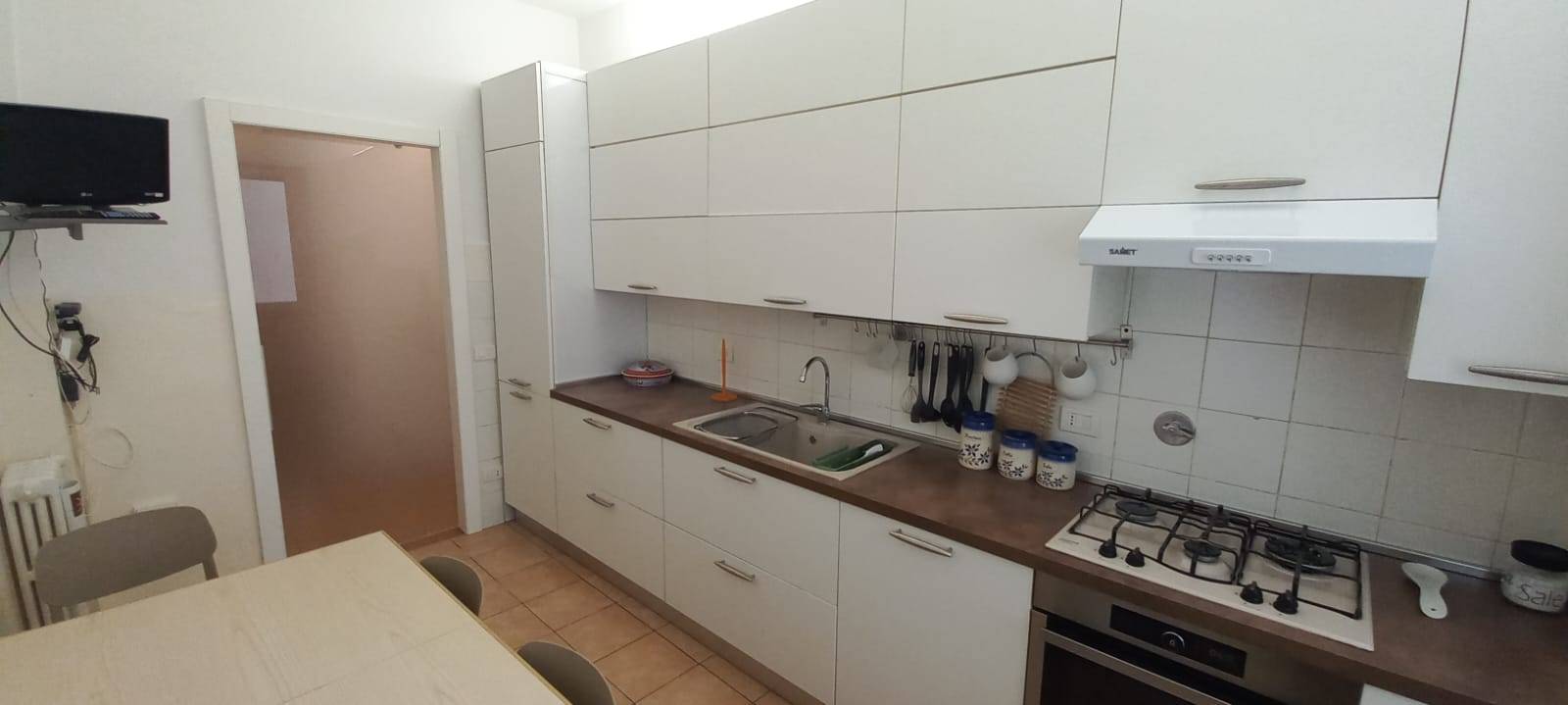L'appartamento viene consegnato completamente arredato non solo di mobili ma anche di elettrodomestici, come lavatrice e lavastoviglie.