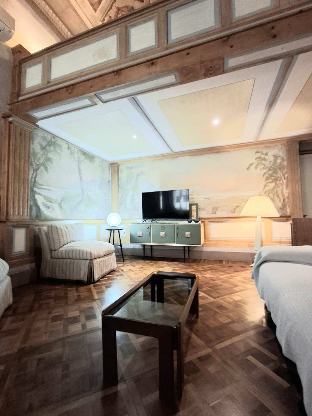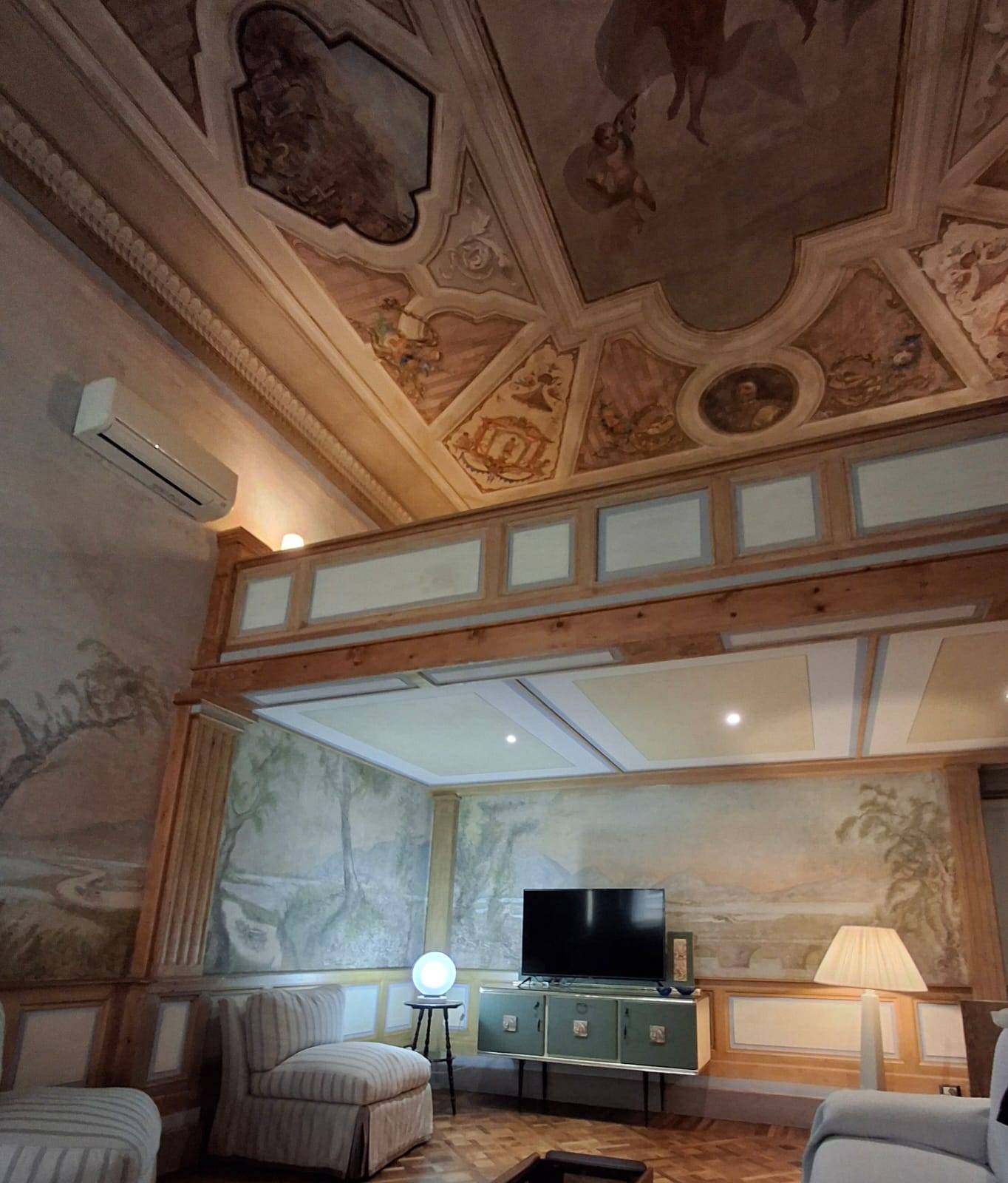 Disponiamo di lussuoso immobile situato al 2 piano di palazzo notificato, interamente affrescato, 120 mq suddiviso in ampia zona giorno, grande cucina con doppia finestra ad angolo su centralissima via della citt. Ampio soppalco con suite, cabina armadio e toilette completa di doccia e lavatrice.