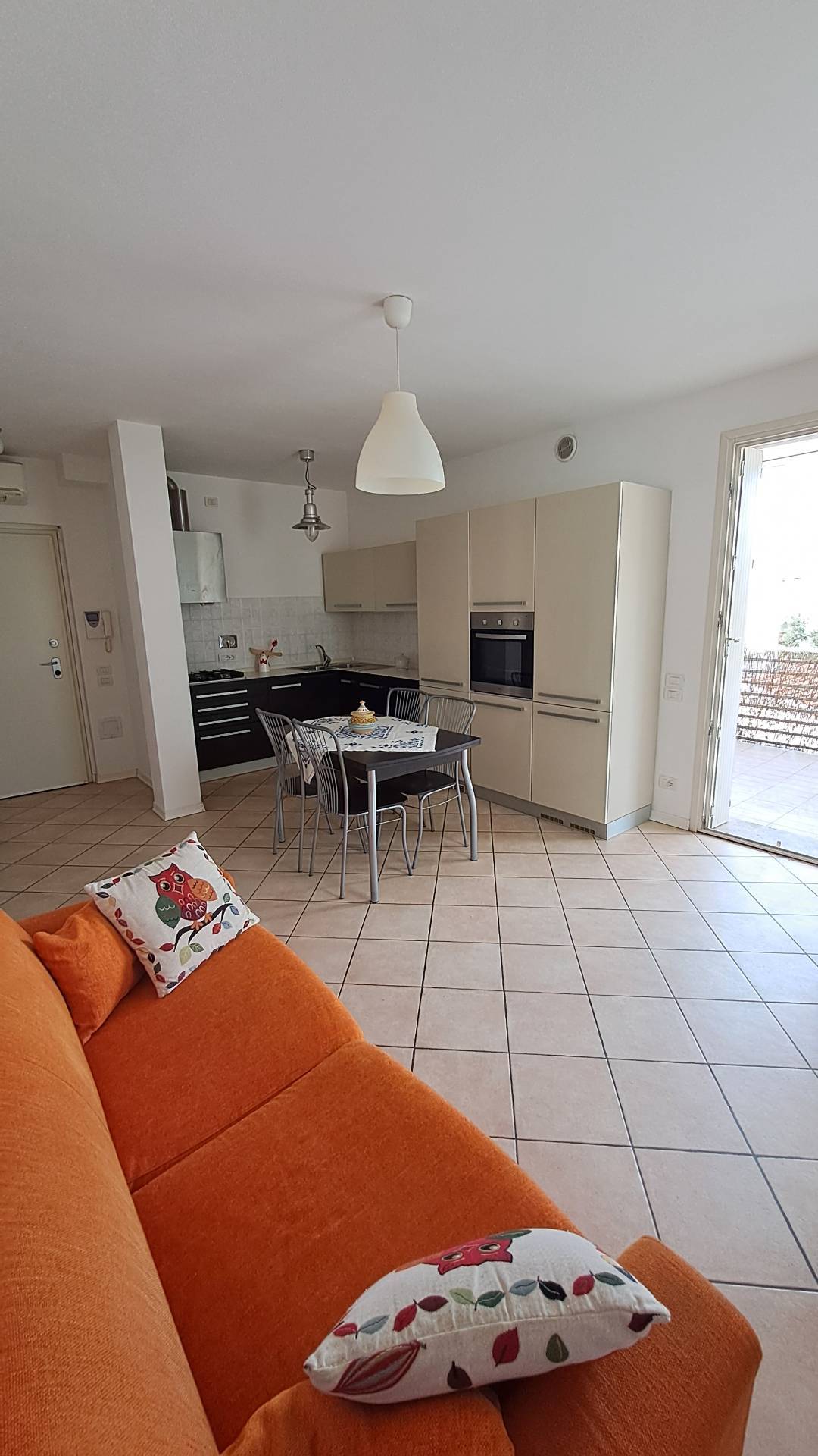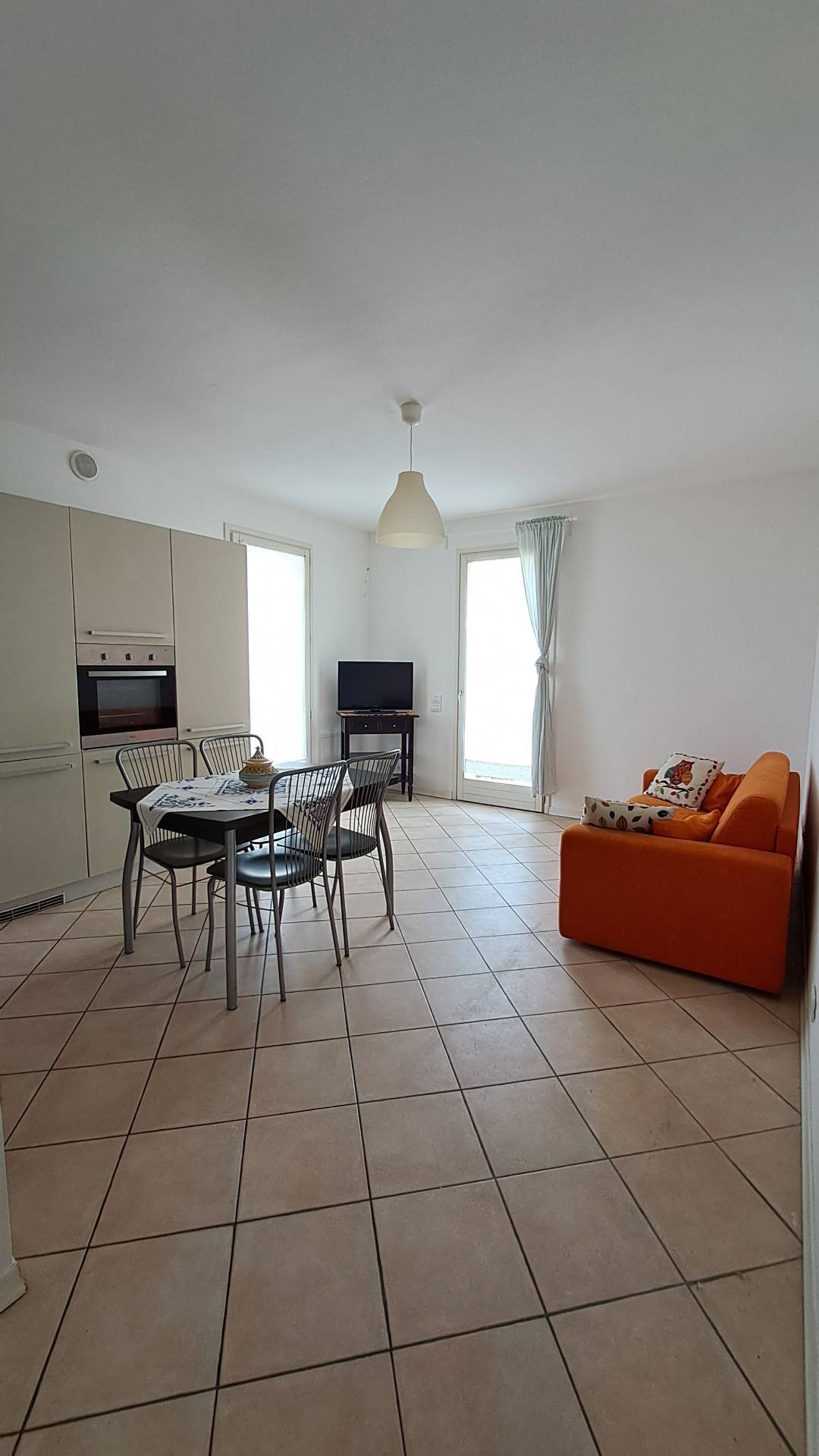 A persona seria e referenziata si propone in affitto bilocale ammobiliato composto da: una camera da letto matrimoniale con ampio armadio, disimpegno con un secondo armadio, bagno, soggiorno e cucina con forno e lavastoviglie, balcone che si affaccia su due lati dell'appartamento con lavatrice, e ampio terrazzo sul tetto dell'edificio.