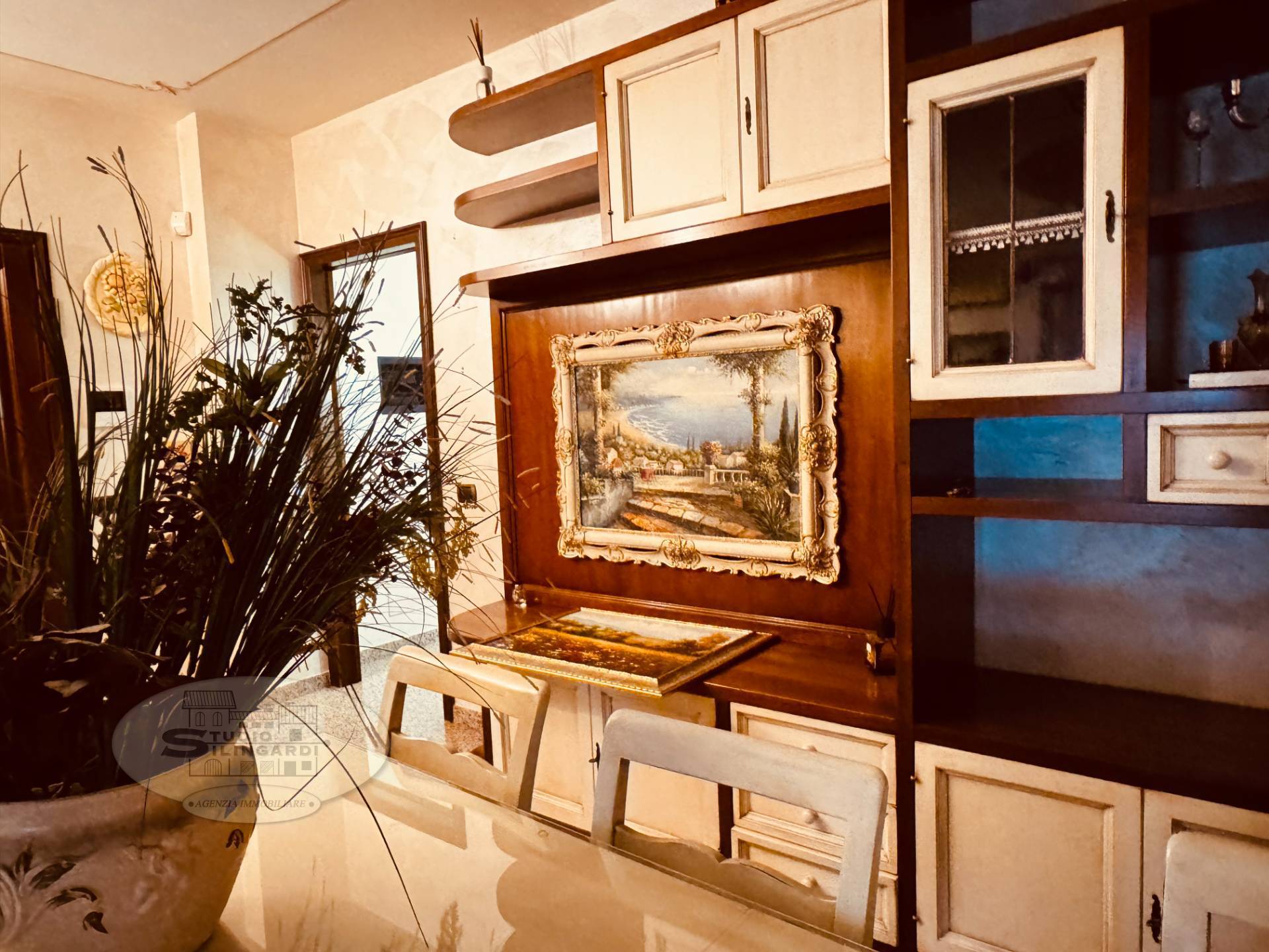 Appartamento al piano primo S/A , composto da: ingresso in pranzo soggiorno con angolo cucina , ampio terrazzo coperto , disimpegno notte , tre camere , due bagni , cabina armadi; al piano terra una cantina/lavanderia.