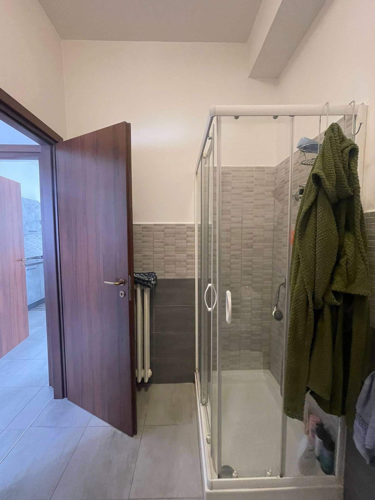 Lappartamento, situato in una zona tranquilla ma servitissima, si apre su un ingresso ospitale che conduce alla zona living con cucina a vista, un ambiente funzionale e ben organizzato.