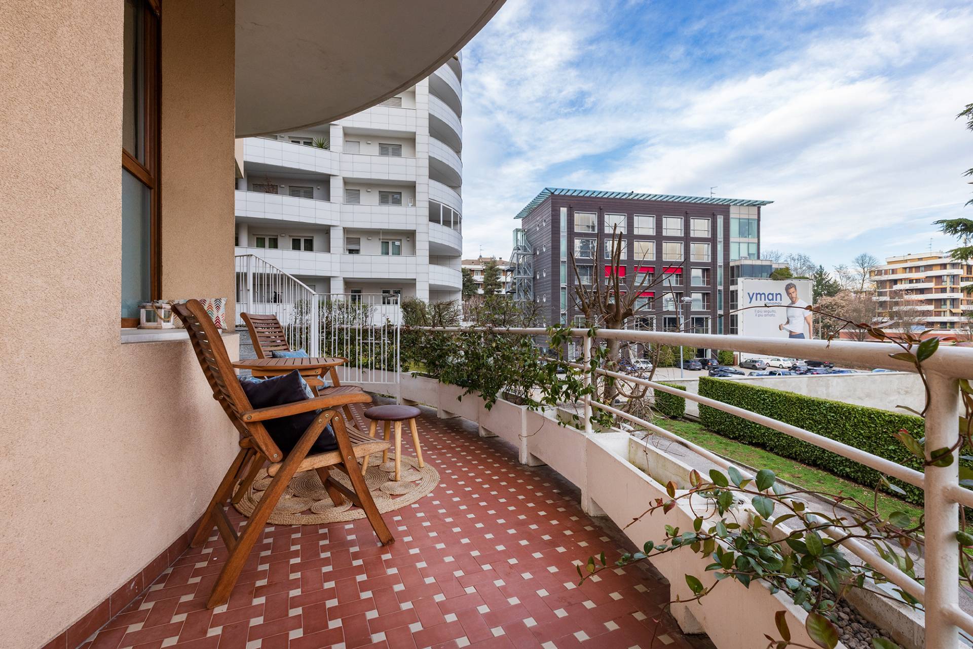 Lappartamento si compone di: Ingresso riservato Luminoso soggiorno con cucina a vista Disimpegno funzionale Cameretta/studio (con divano letto) Camera matrimoniale con cabina armadio Bagno moderno con doppi lavandini e ampia doccia Terrazzo ampio e vivibile, perfetto per momenti di relax o cene allaperto - Finiture e dotazioni Arredo di pregio, incluso di elettrodomestici.