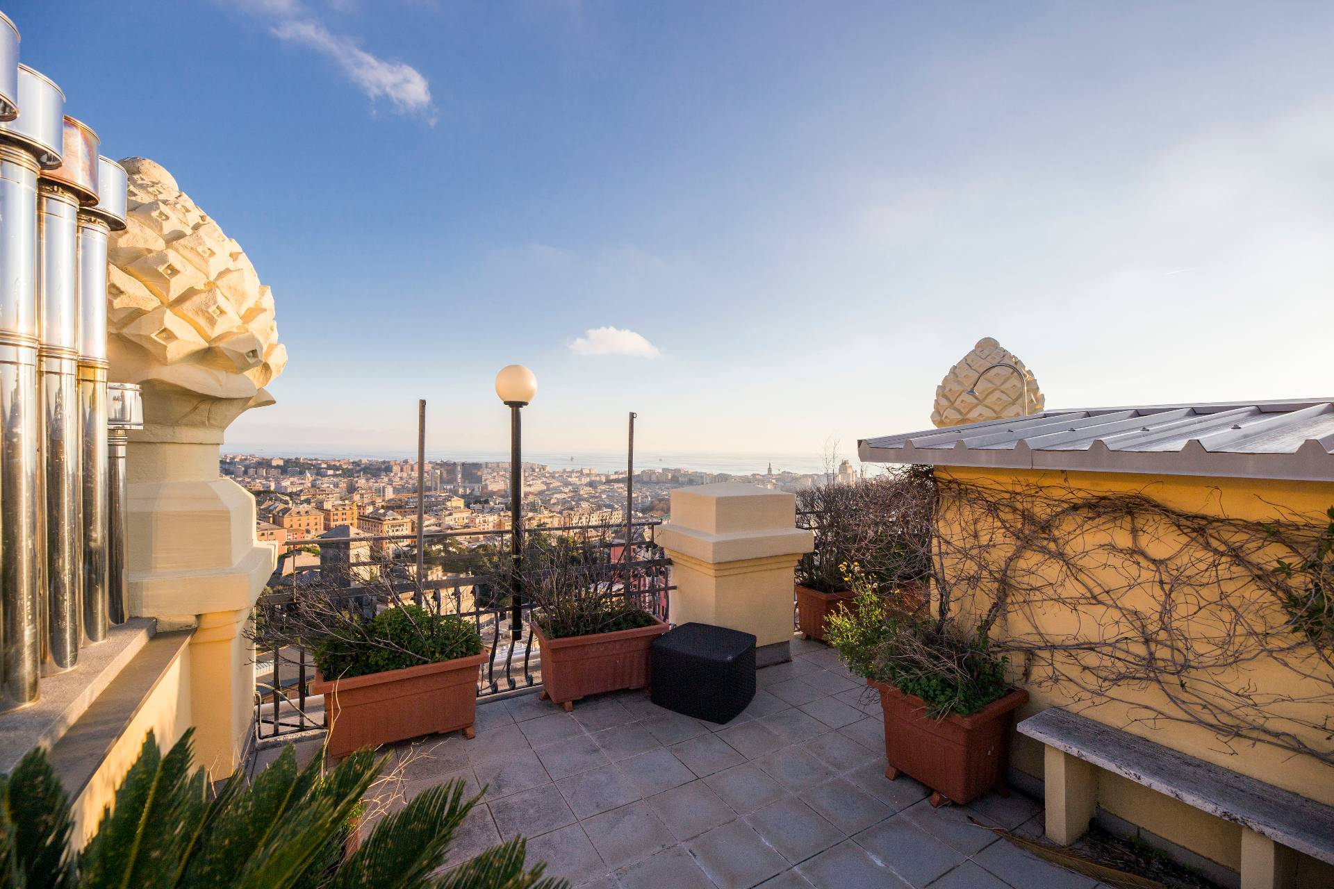 VIA CROCCO GENOVA CASTELLETTO SIGNORILE APPARTAMENTO ULTRAPANORAMICO ULTIMO PIANO IN AFFITTO CON CINQUE BALCONI, BOX AUTO E TERRAZZO SOVRASTANTE.