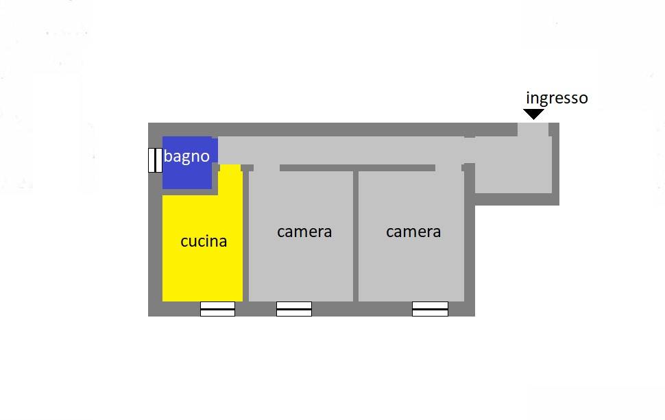Edificio antico con parti comuni ristrutturate, interni ordinati composti da ingresso, cucina, due camere e bagno.