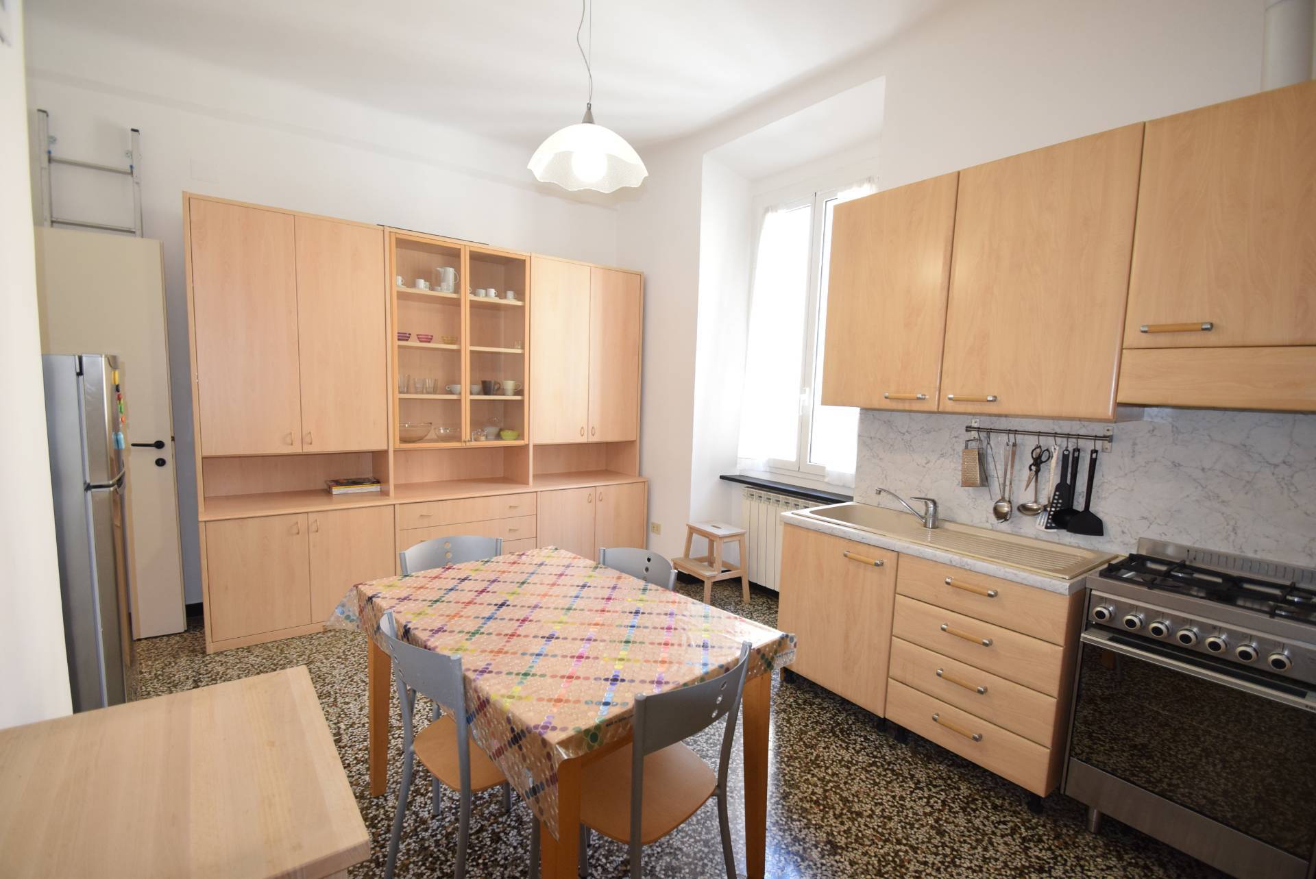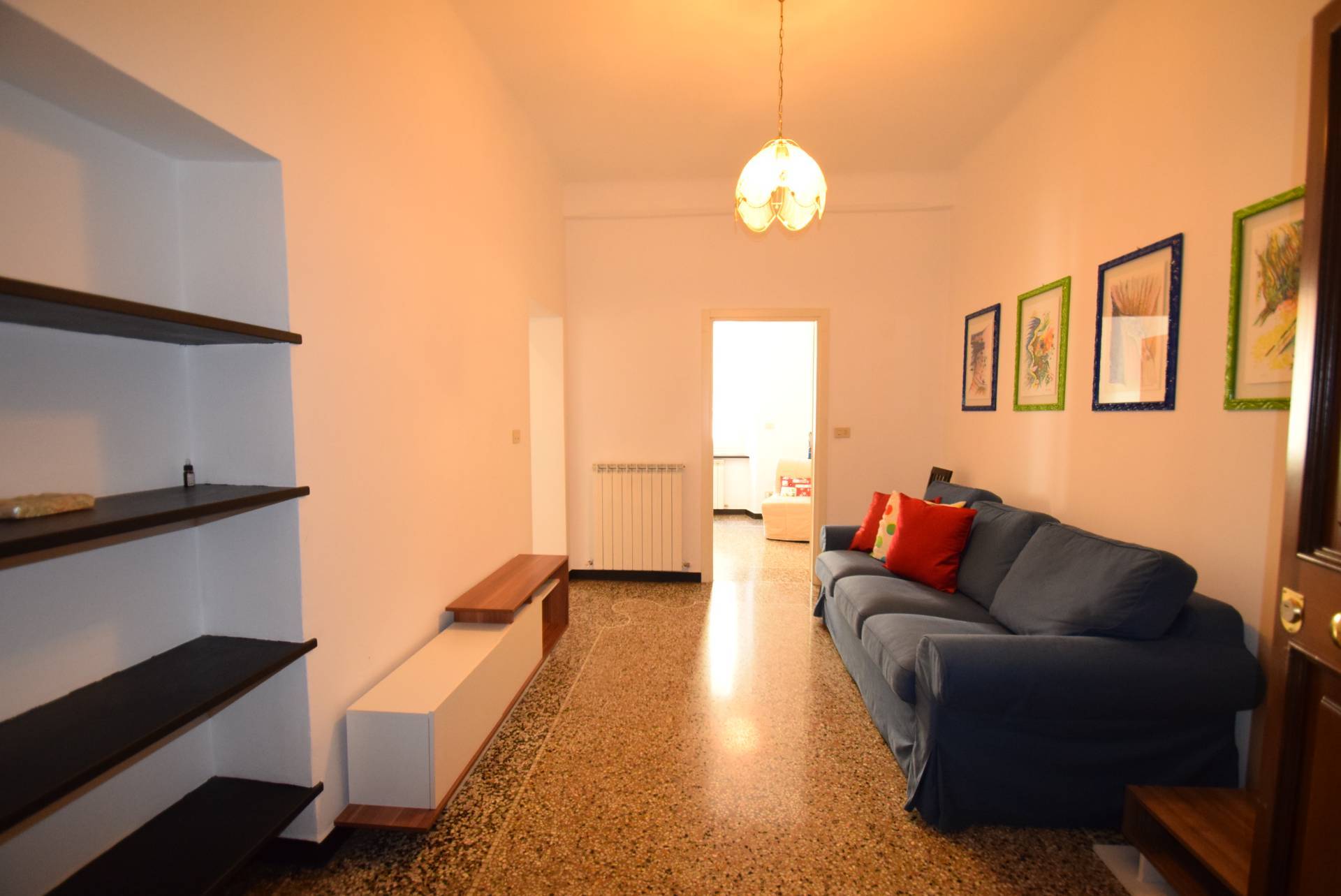 SANFRUTTUOSO VIA DONGHI N.43 LIBERO DAL 01 LUGLIO Nella centrale e comoda San Fruttuoso, e precisamente a meta' di Via Donghi, proponiamo in locazione con contratto abitativo 3+2 in cedolare secca ,NO TRANSITORIO un bell'appartamento ristrutturato posto al secondo piano con ascensore l'appartamento e' un ampio 5 vani e si compone da un ampio ingresso che f da soggiorno, cucina abitabile, due camere, bagno.