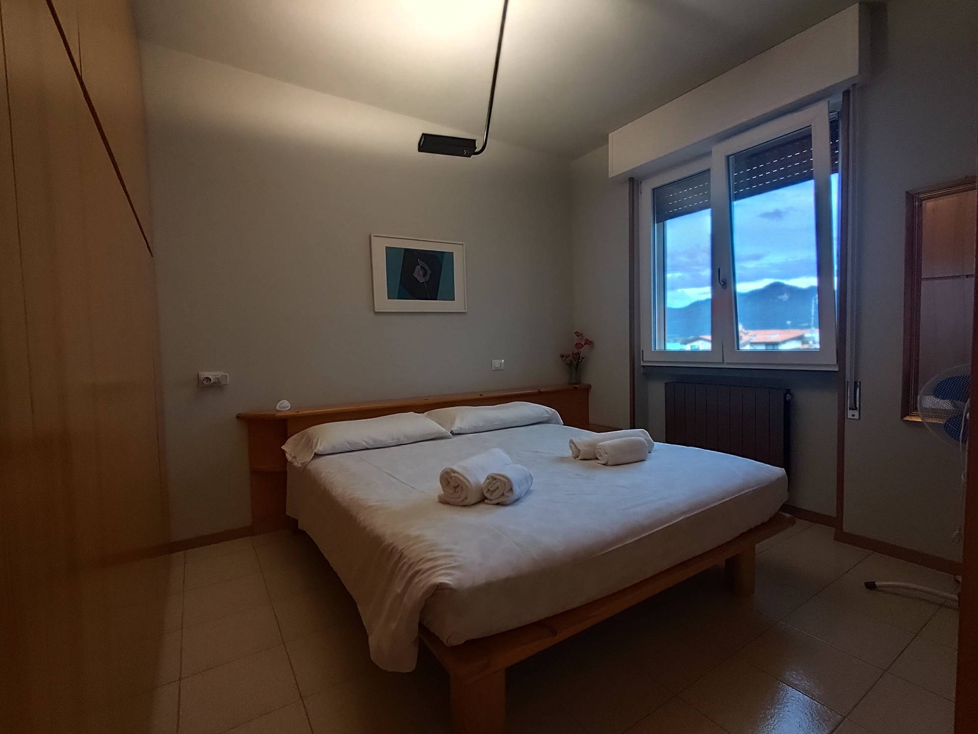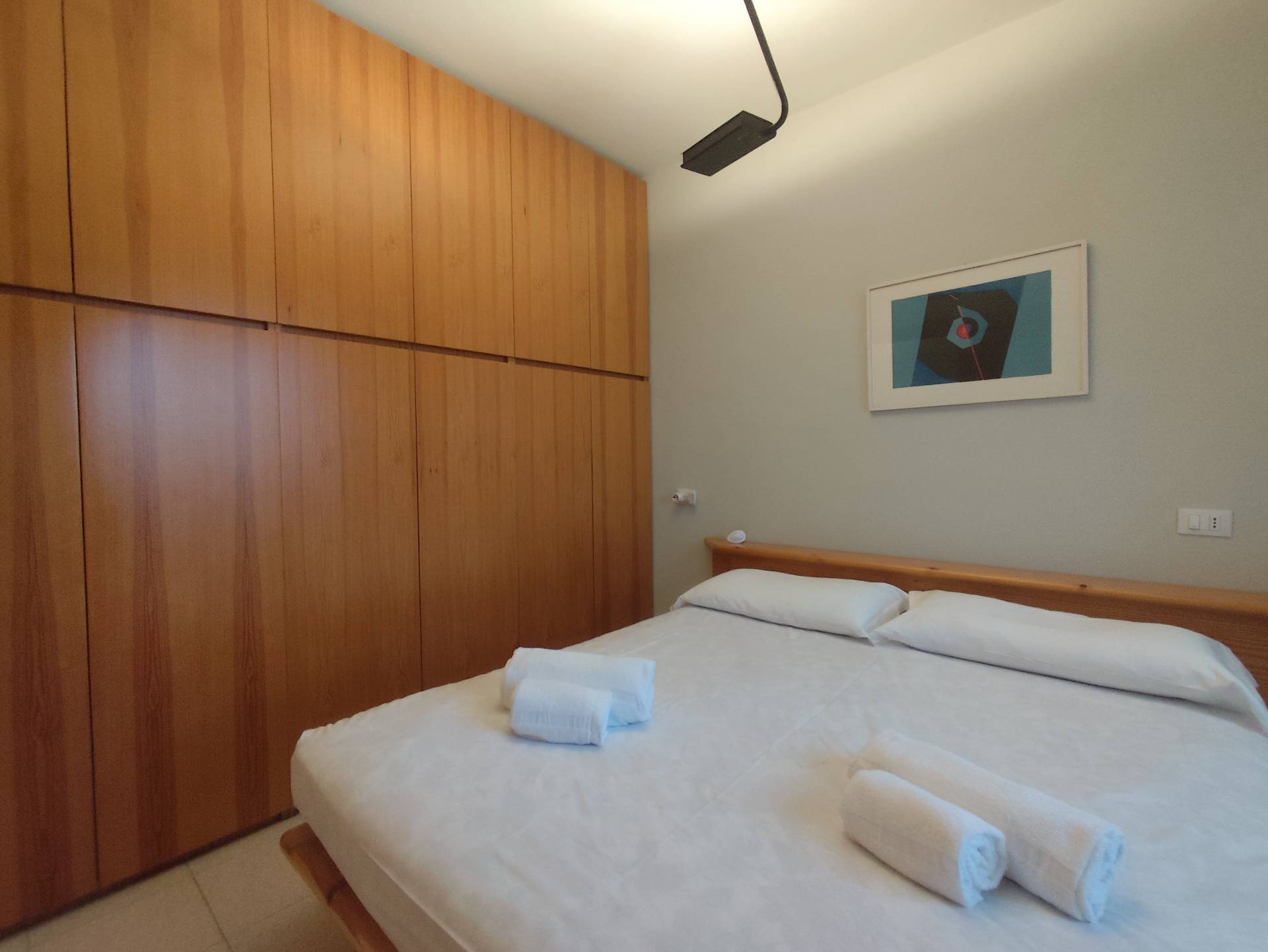 La zona notte comprende una camera matrimoniale con zanzariere e vista lago, e un bagno finestrato con doccia.