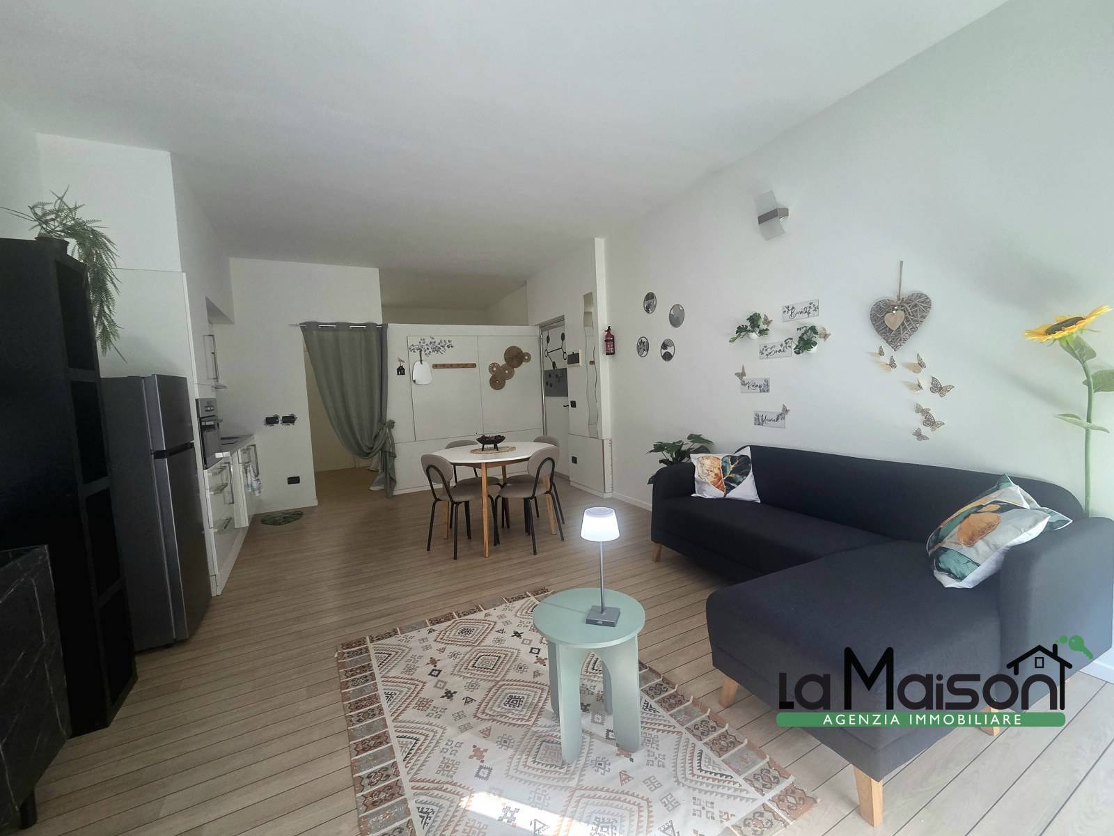 Si presenta composto da ingresso su soggiorno con cucina a vista, camera da letto, disimpegno e bagno.