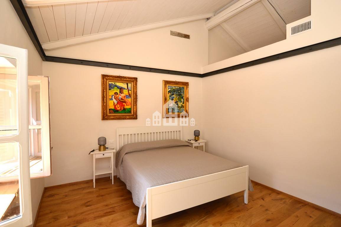 Lalloggio si distingue fin da subito per il suo carattere: pavimenti in legno, travi a vista bianche e porte originali restaurate creano un ambiente caldo, accogliente e ricco di personalit.