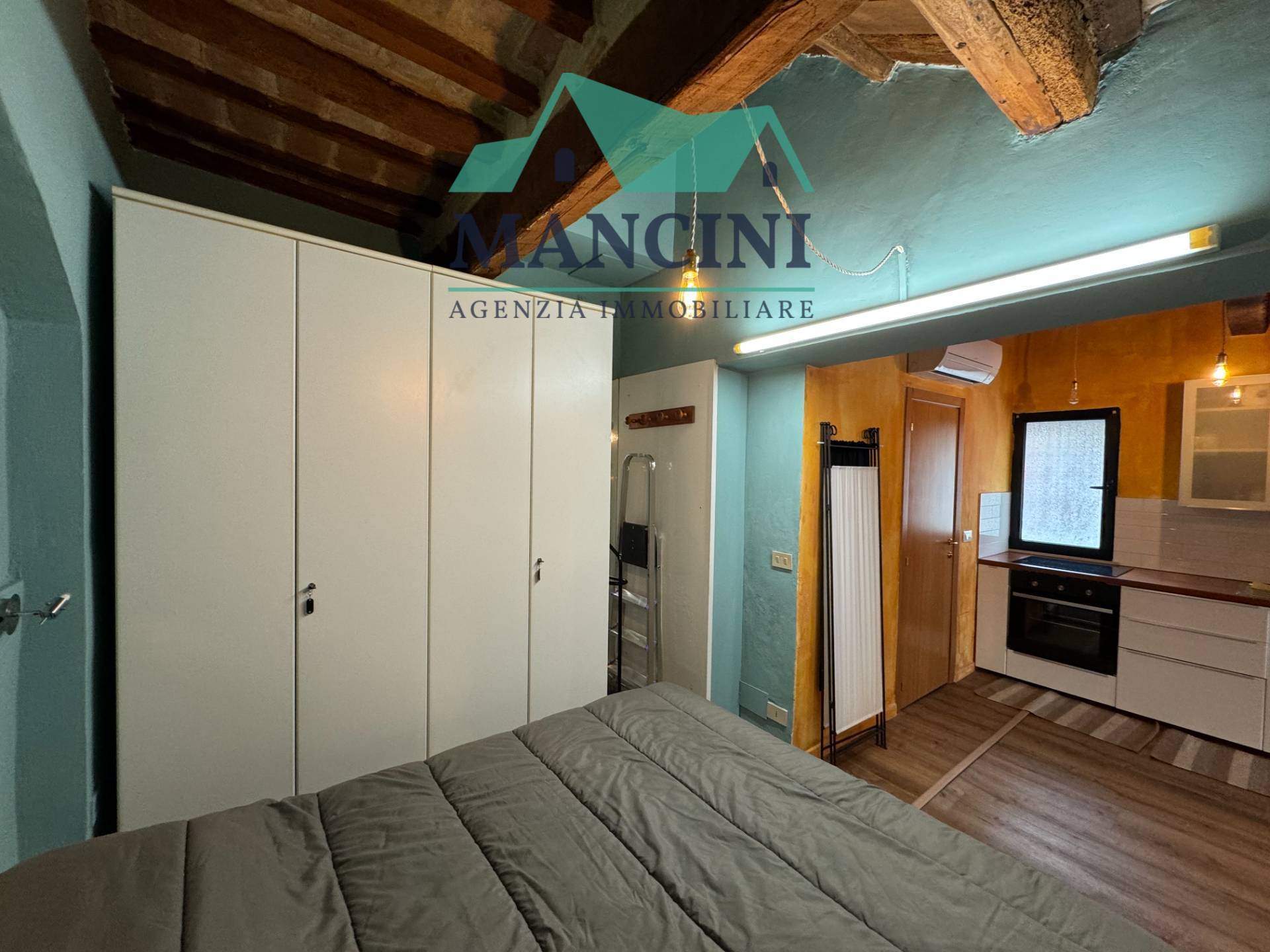 Appartamento in affitto Jesi unico ambiente loft piano terra completamente ristrutturato e ammobiliato con aria condizionata, fornelli ad induzine, composto da un angolo cottura, un letto matrimoniale un bagno con doccia, finiture di pregio piano primo, ideale per single, no spese condominiali, utenze attive di sola acqua ed energia elettrica.
