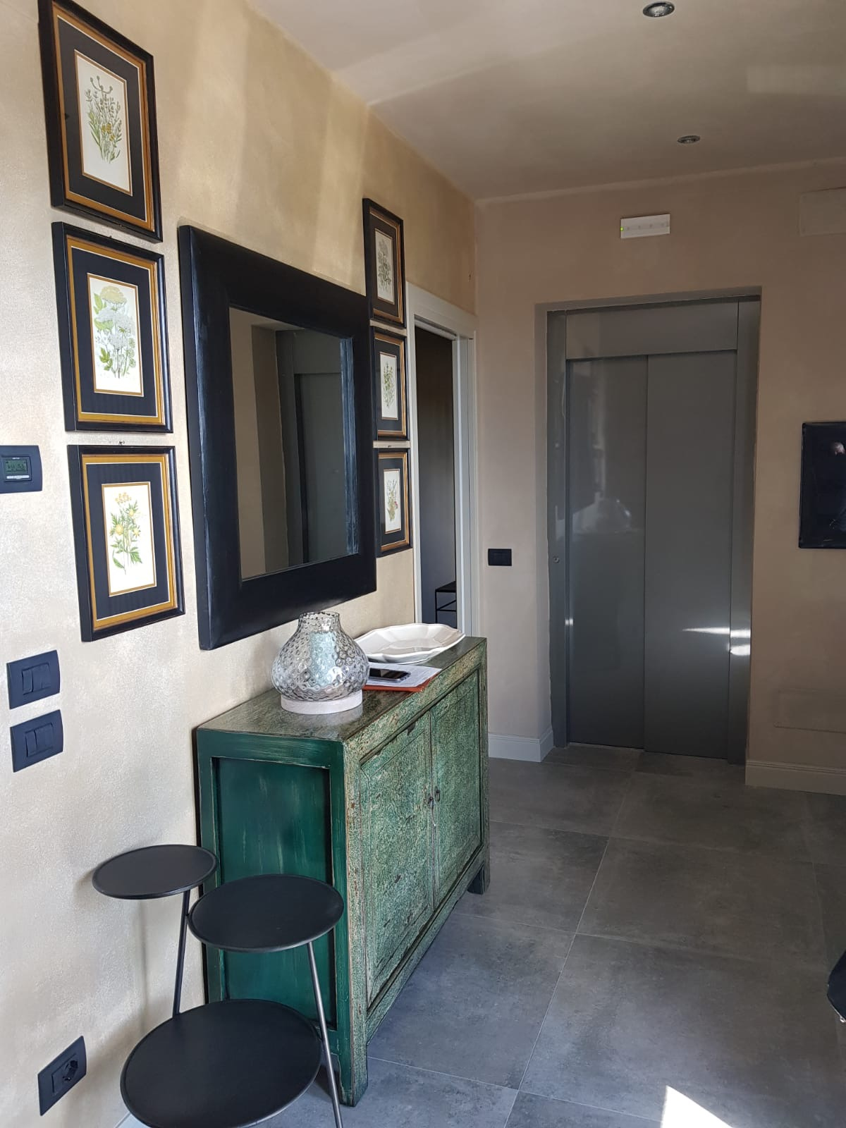 l'appartamento e' raggiungibile con ascensore dedicato con accesso diretto ed e' composto da zona giorno con cucina- zona pranzo, con terrazza abitabile e pranzabile, soggiorno con balcone panoramico sul corso principale , due camere matrimoniali con cabina armadio, bagno completo con doccia, bagno di servizio senza doccia, ripostiglio . si puo' avere anche l'accesso ad una vasca idromassaggio esterna con bordo vasca godibile nelle belle giornate.