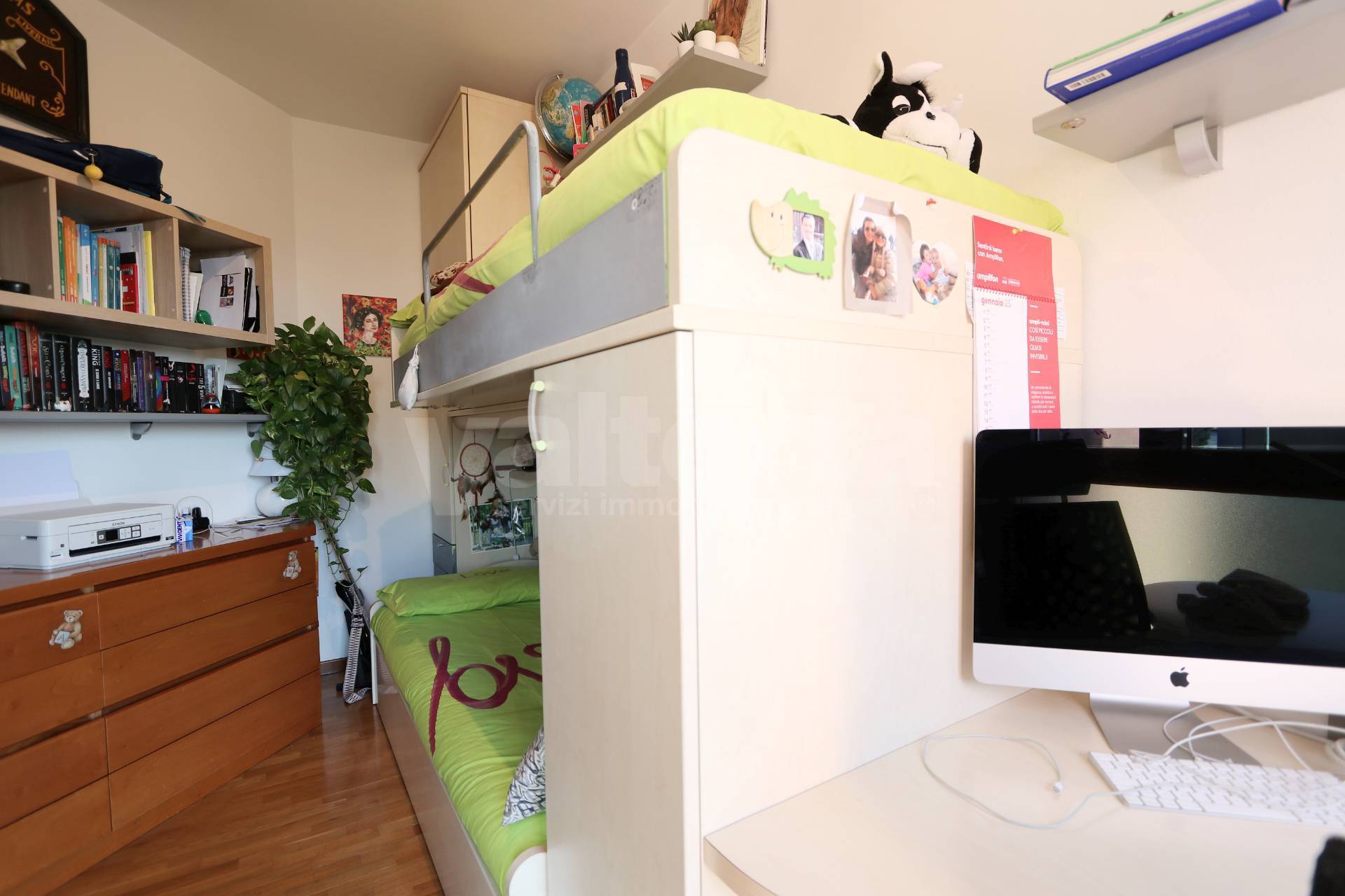 La zona notte comprende una camera matrimoniale con portafinestra sul terrazzo, una cameretta e due bagni finestrati dotati di doccia.