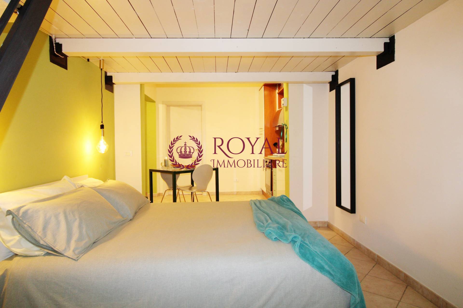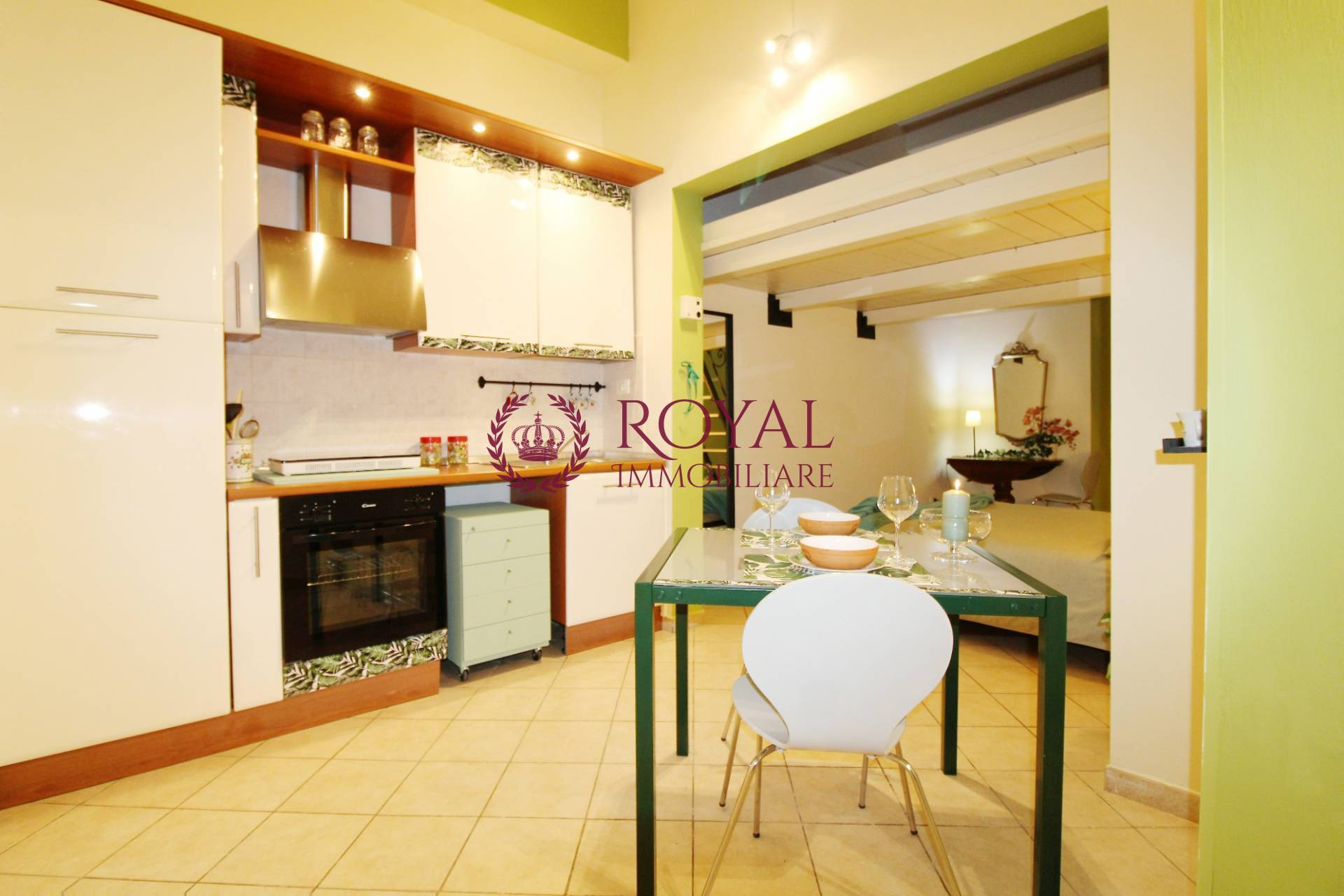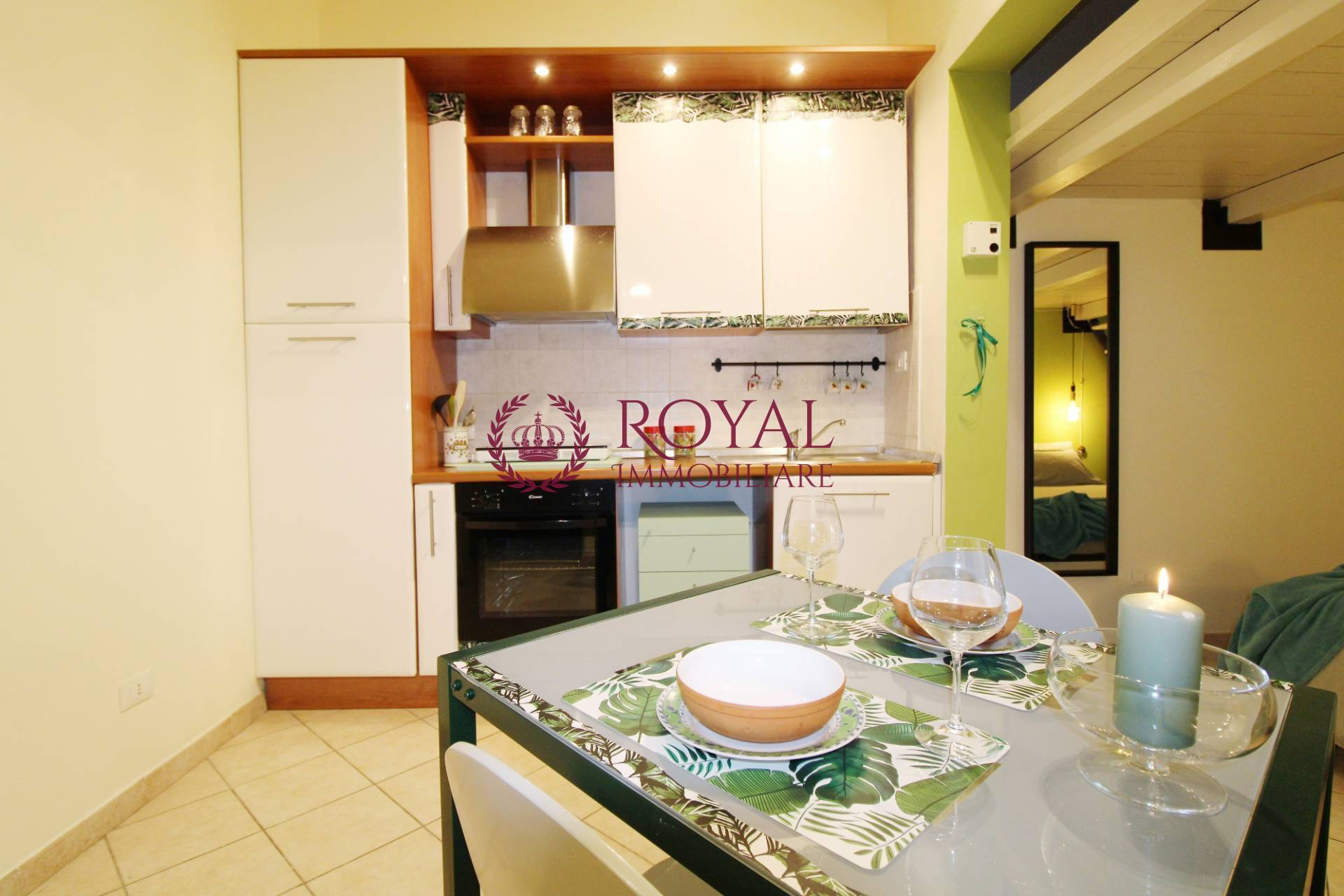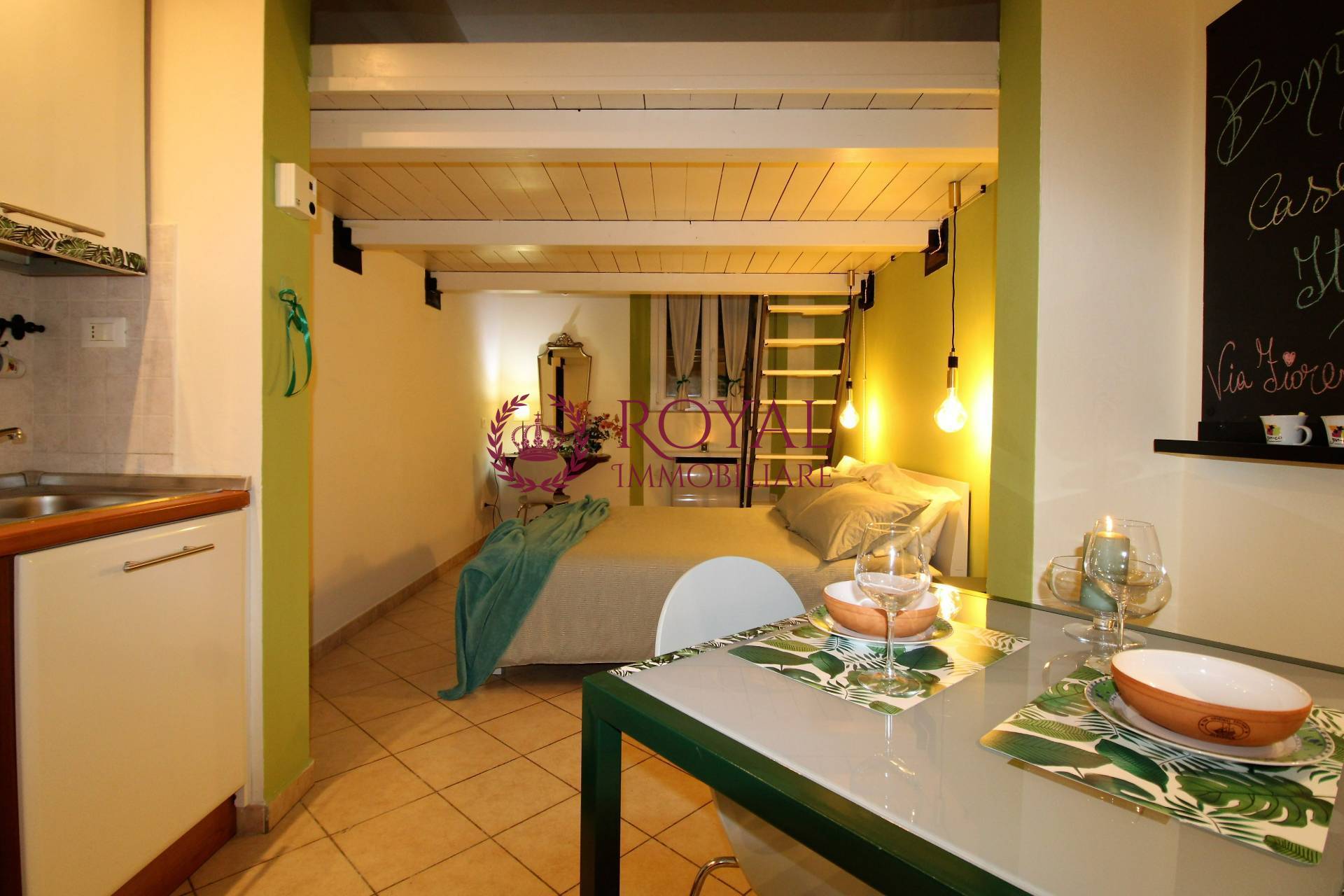 In piccolo condominio appartamento al piano terra completamente ristrutturato e arredato con gusto affittasi da settembre con contratto transitorio l'immobile un unico ambiente composto da zona cottura completa di frigorifero cucina e forno, letto matrimoniale soppalco, bagno.